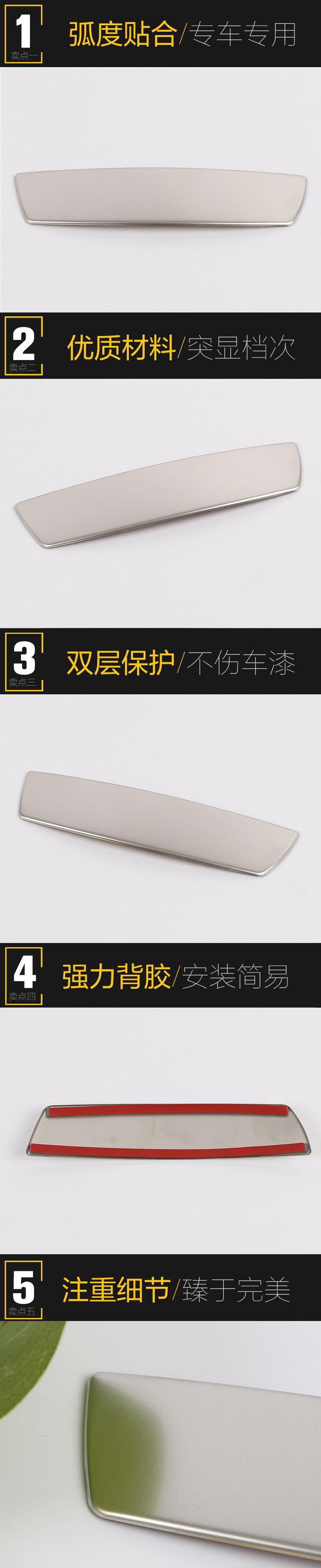 Antes de la instalación, la carrocería debe mantenerse seca y libre de polvo, aceite y cera. Cuando la temperatura sea inferior a 10 grados, la cinta adhesiva de doble cara de la carrocería y el producto deben calentarse. (3) Uso de adhesivos Utilice un hisopo de algodón o una toalla de papel (una pequeña cantidad) para limpiar el área que se va a pegar (carrocería del automóvil). (4) Instalación Primero, retire una esquina de la película protectora de cinta de doble cara en la parte posterior del producto, dejando la película afuera para que el producto se ajuste a la posición de instalación, luego retire lentamente la película y presiónela. (5)Periodo de seguridad Dentro de las 48 horas siguientes a la instalación del producto (donde se aplica el pegamento), éste no debe exponerse a agua, aceite o polvo de gran tamaño. Nota: Compare antes de instalar. Retire la película roja de la parte posterior. No se aceptan devoluciones ni cambios.