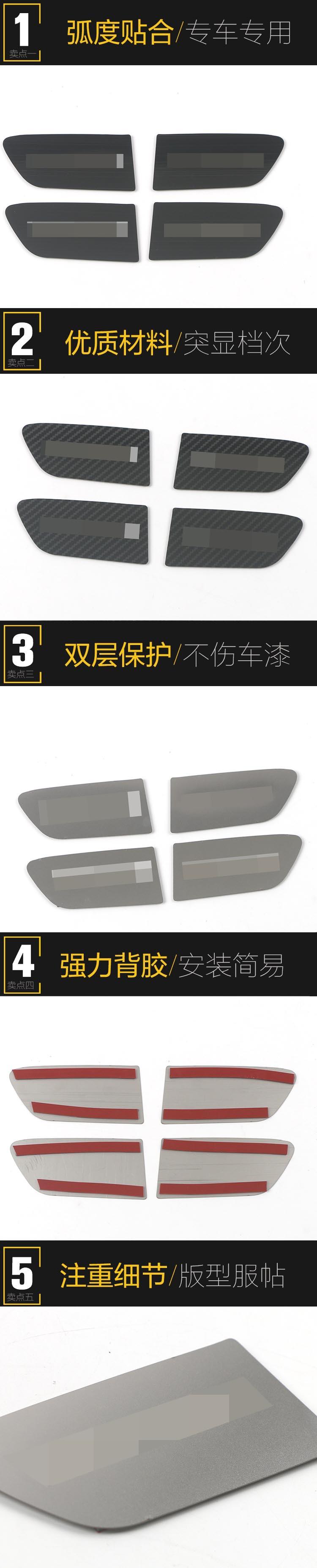 Antes de la instalación, mantenga la carrocería seca y libre de polvo, aceite y cera. Cuando la temperatura sea inferior a 10 grados, asegúrese de calentar la cinta adhesiva de doble cara de la carrocería y del producto. (3) Uso de adhesivos Utilice un hisopo de algodón o una toalla de papel (una pequeña cantidad) para limpiar el área que se va a pegar (carrocería del automóvil). (4) Instalación Primero, retire una esquina de la película protectora de cinta de doble cara en la parte posterior del producto, dejando la película afuera para que el producto se ajuste a la posición de instalación, luego retire lentamente la película y presiónela. (5) período Dentro de las 48 horas siguientes a la instalación del producto (donde se aplica el pegamento), éste no debe exponerse a agua, aceite o polvo de gran tamaño. Nota: Compare antes de instalar. Retire la película roja de la parte posterior. No se aceptan devoluciones ni cambios.