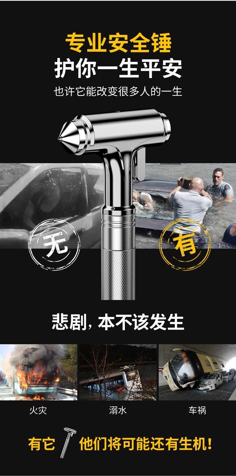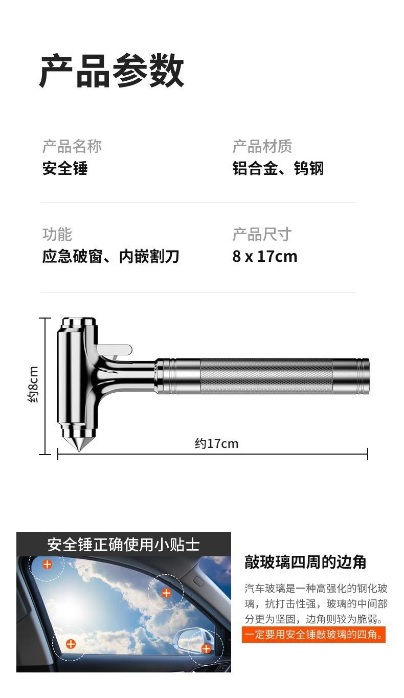 Martillo de seguridad de metal multifuncional de acero inoxidable martillo de seguridad escape de incendios coche emergencia martillo salvavidas artefacto para romper ventanas