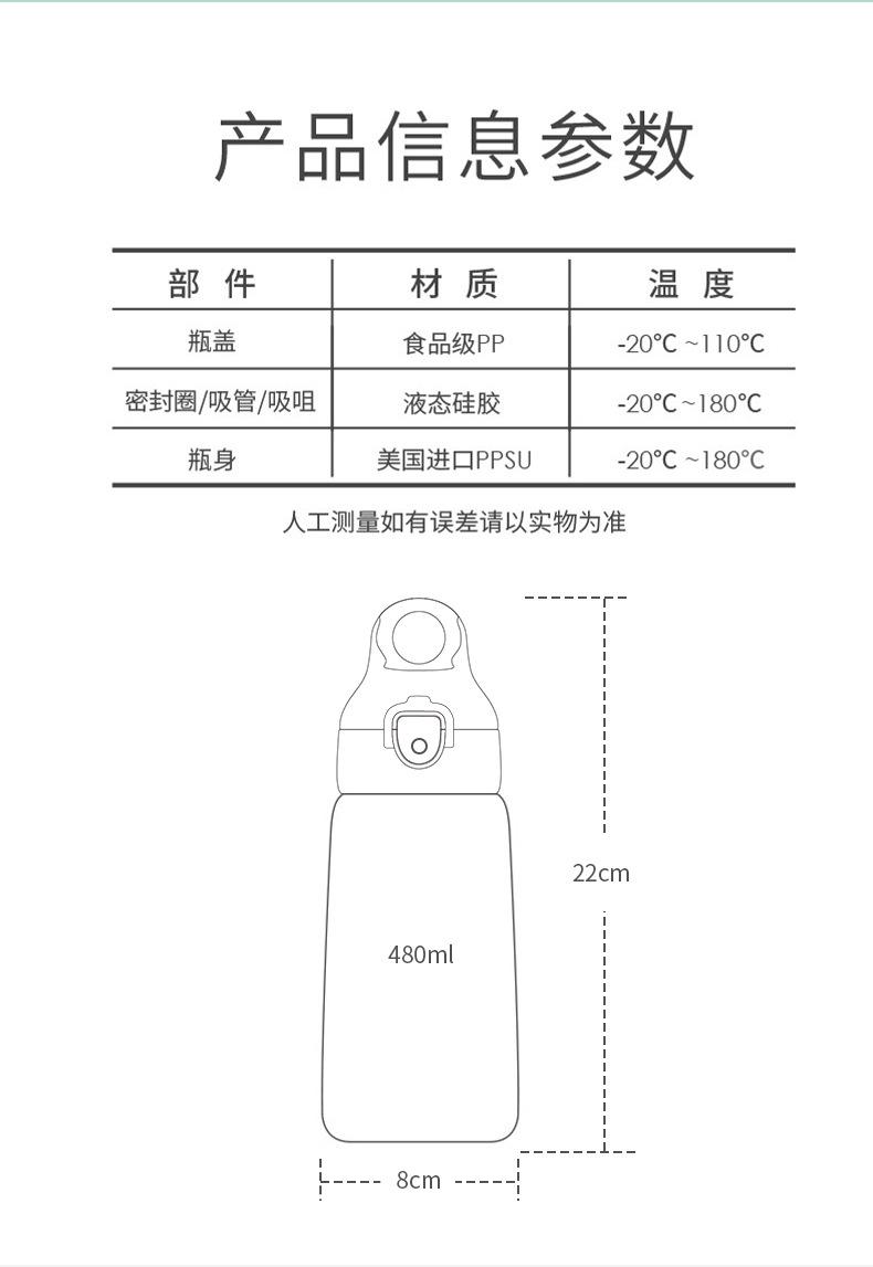 Peach powder ppsu straw Cup 480ml, Peach blossom powder ppsu direct drink cup 480ml, Peach powder ppsu straw C...