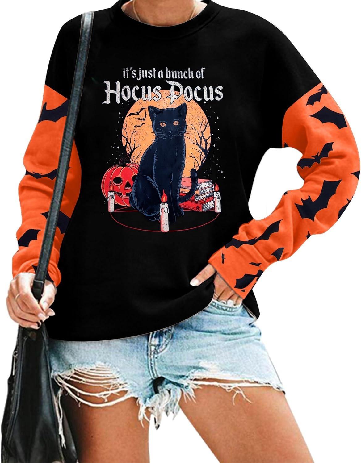 Sudadera de Manga Larga con Cuello Redondo y Estampado de Halloween para Mujer, Casual, Estilo Horror, Talla Grande