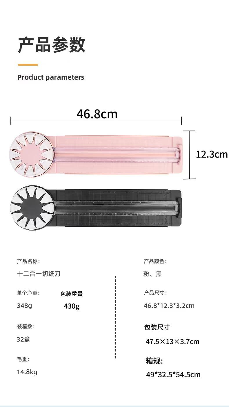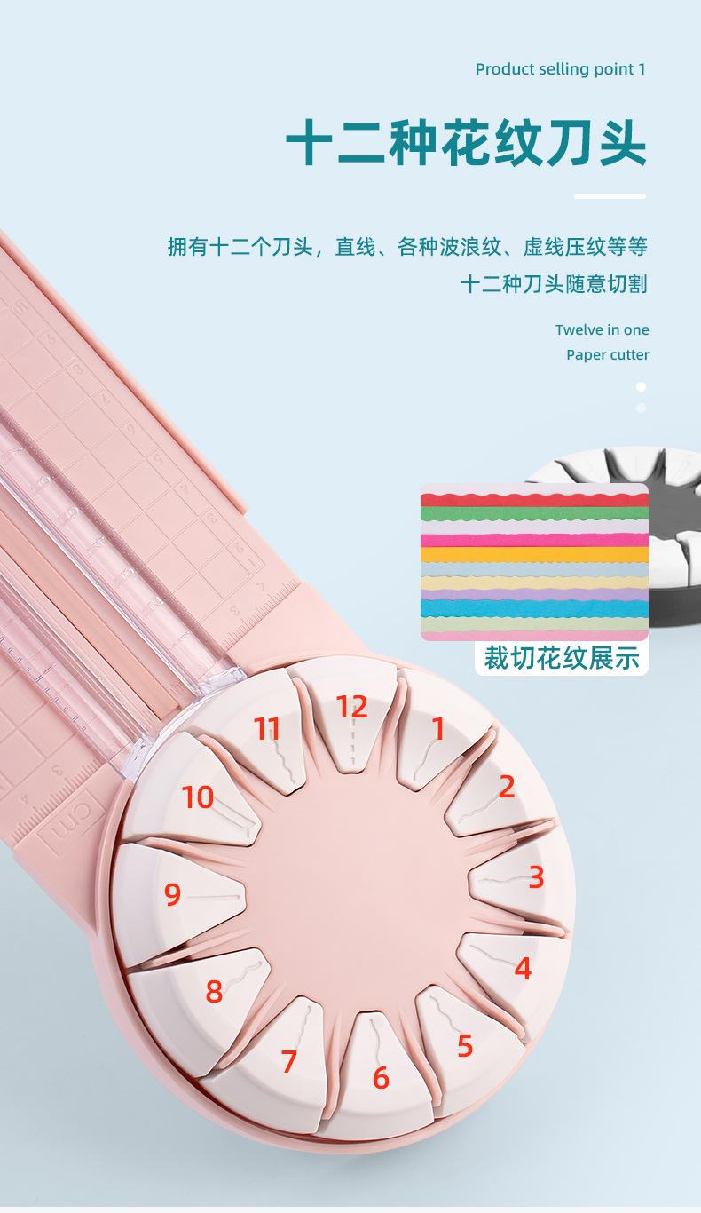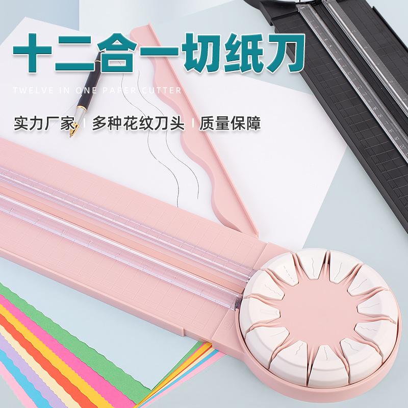 Cortador de Papel 12 en 1 A4 Cortador de Papel para Bordes Línea Recta Línea Punteada Cortador de Fotos Cortador Rotatorio Deslizante