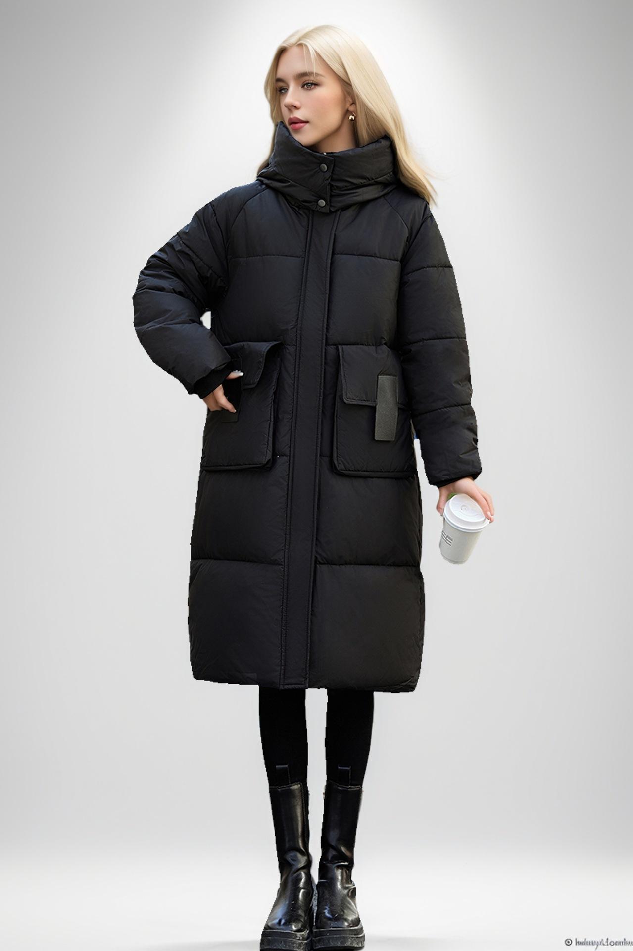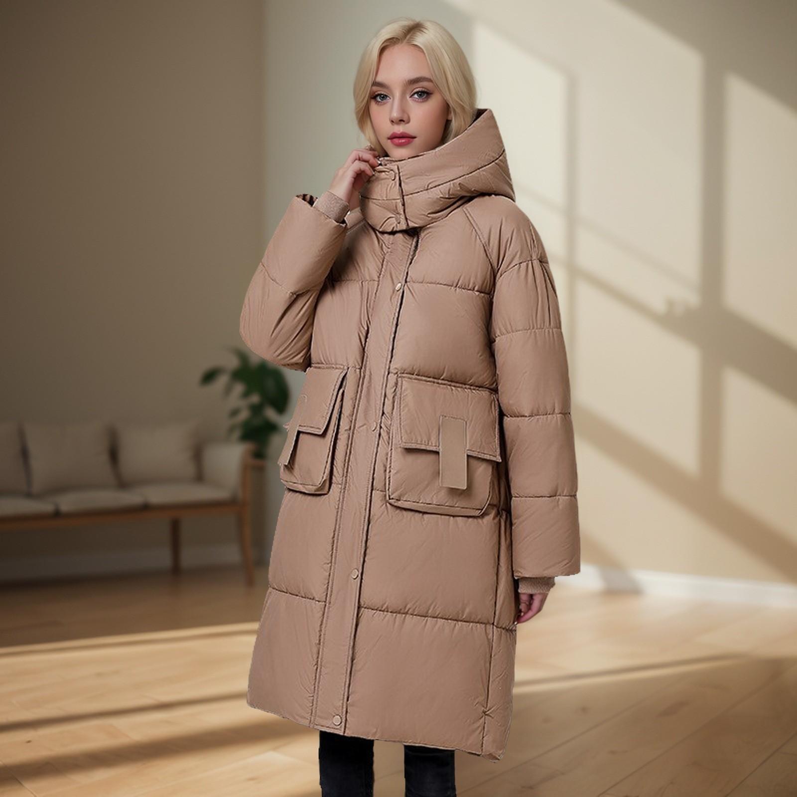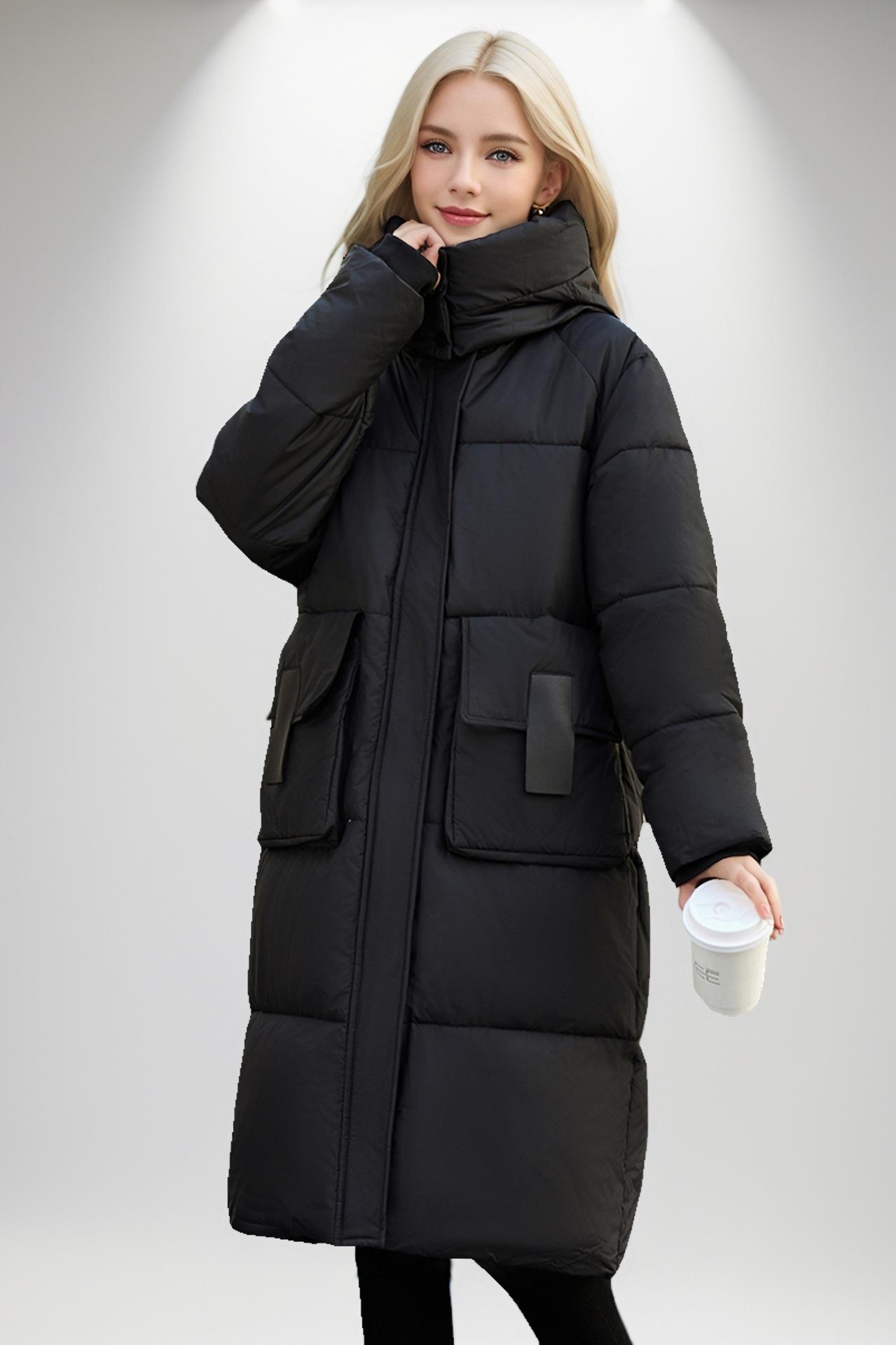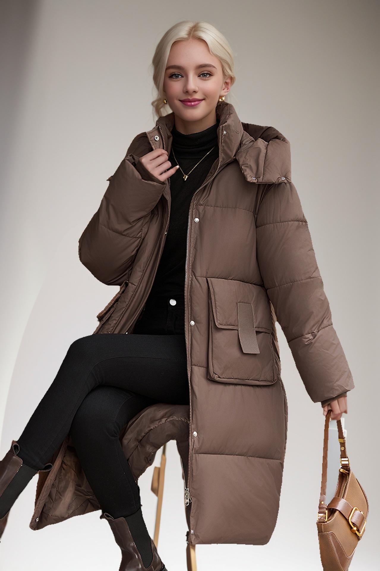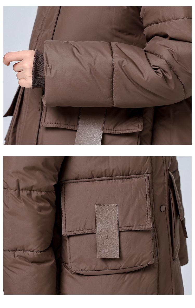 Chaqueta acolchada de algodón de longitud media para mujer, abrigo de invierno 2024 con bolsillo grande, chaqueta acolchada de algodón gruesa