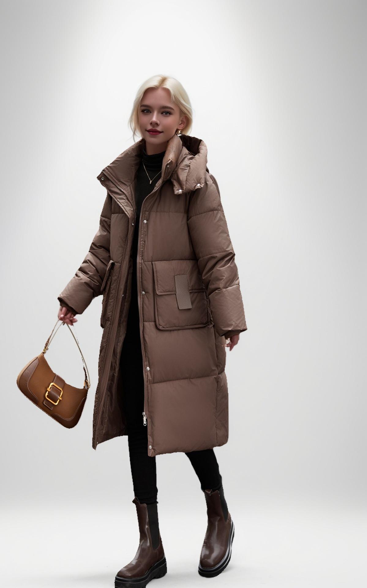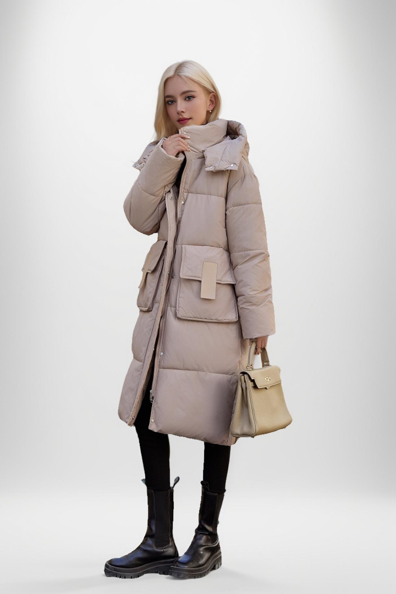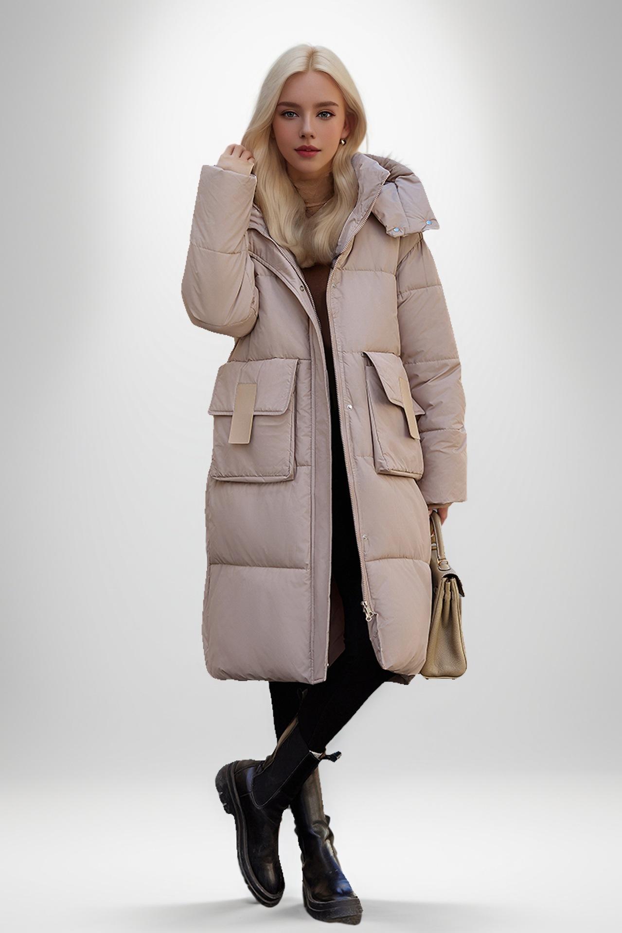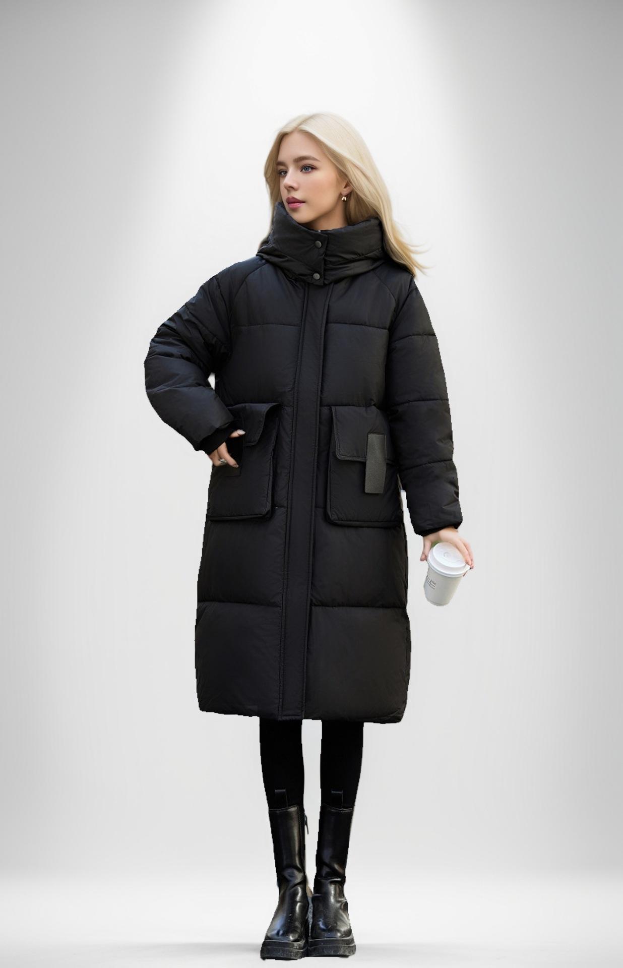 Chaqueta acolchada de algodón de longitud media para mujer, abrigo de invierno 2024 con bolsillo grande, chaqueta acolchada de algodón gruesa