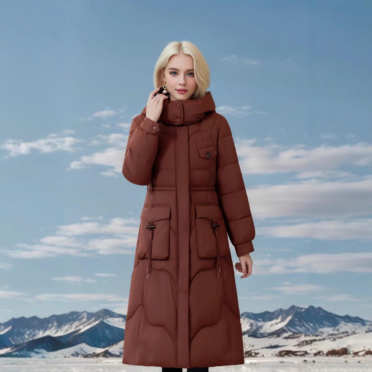 Chaqueta acolchada de algodón de plumón largo para madres de mediana edad y mayores de alta gama transfronterizas, abrigo informal acolchado de algodón de invierno de nueva moda para mujer