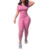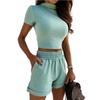 Traje Deportivo Casual de Moda para Mujer Sexy con Ombligo Descubierto, Nuevo Europeo y Americano de Primavera y Verano 2024, Color Sólido Ajustado de Amazon