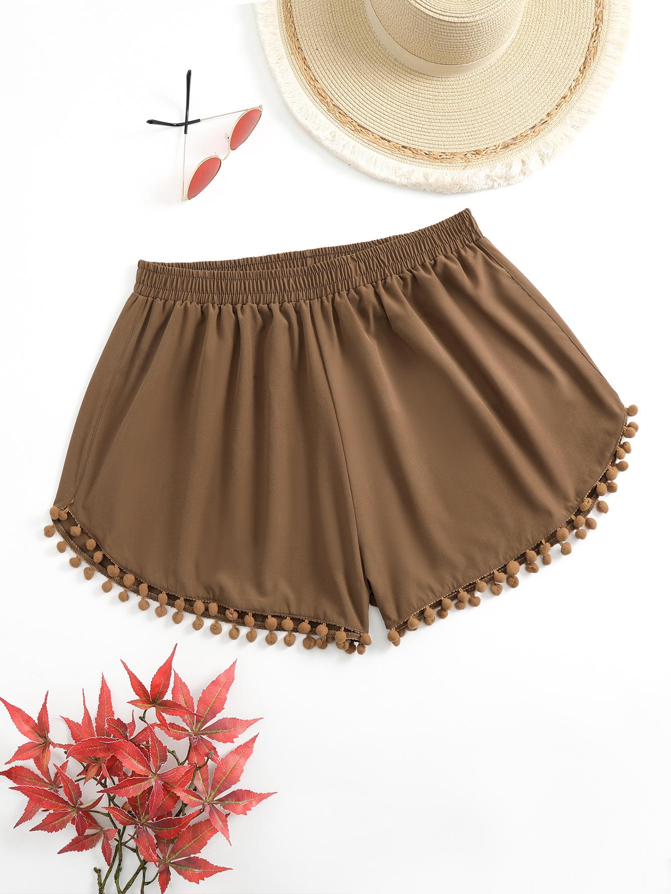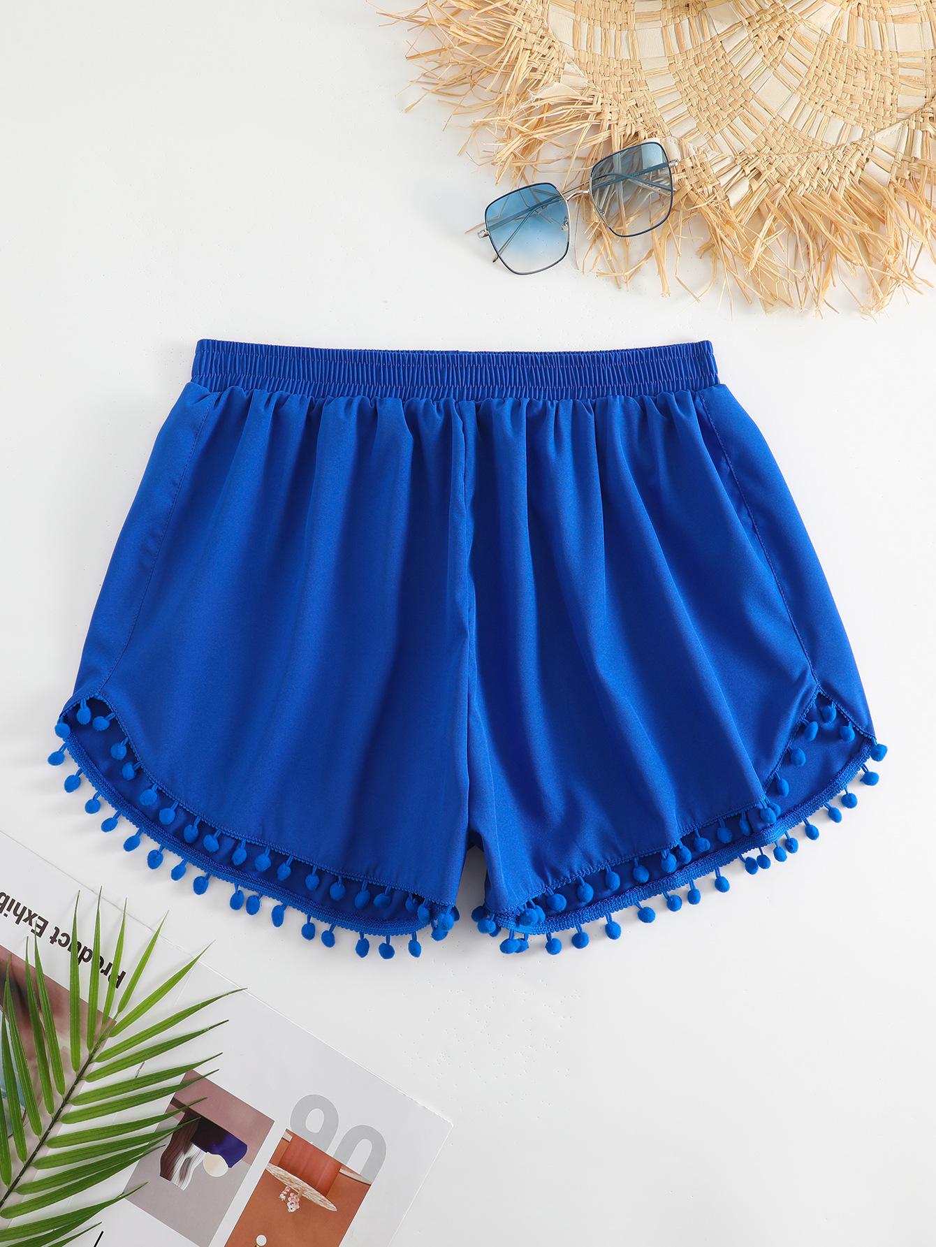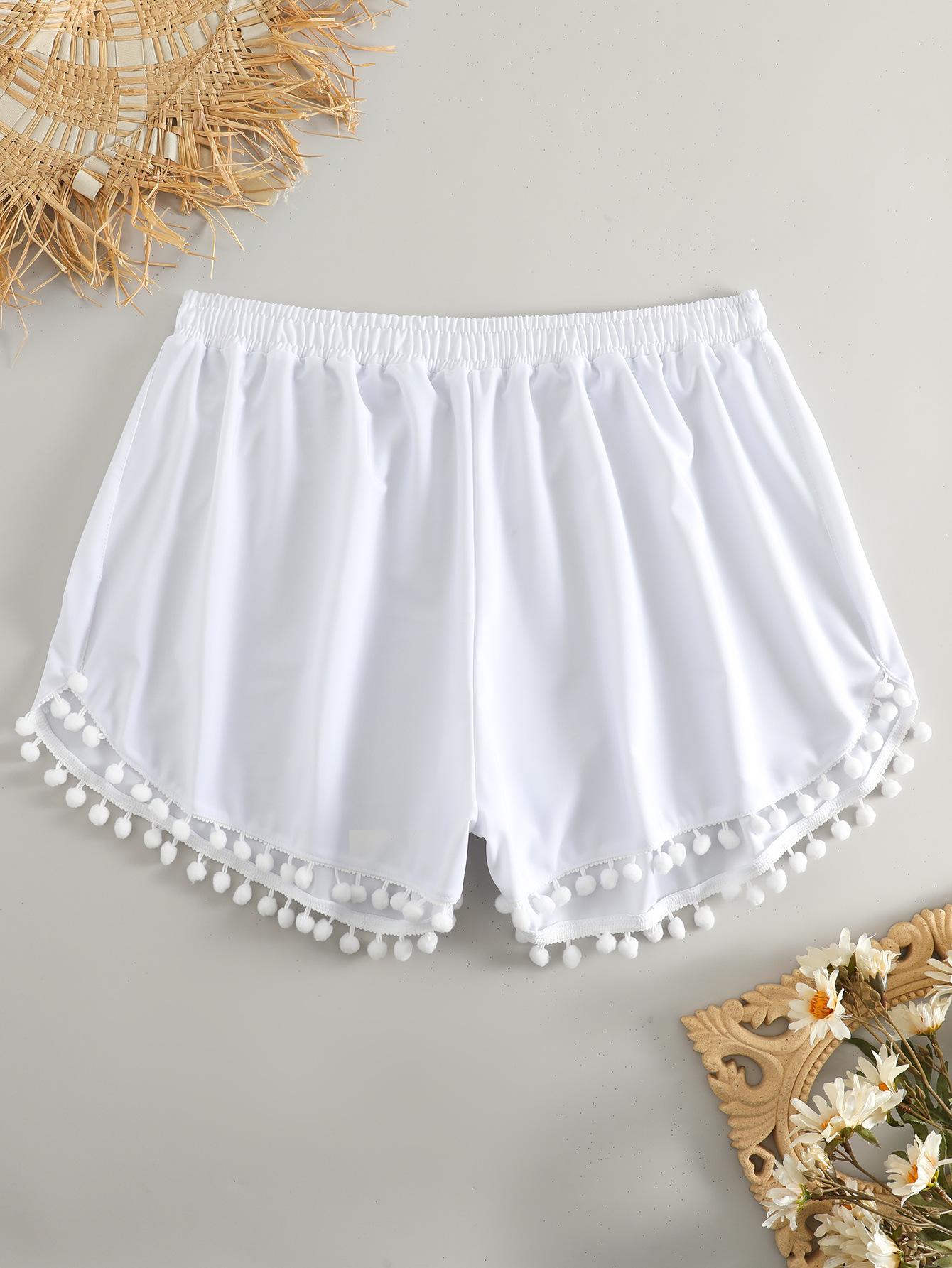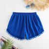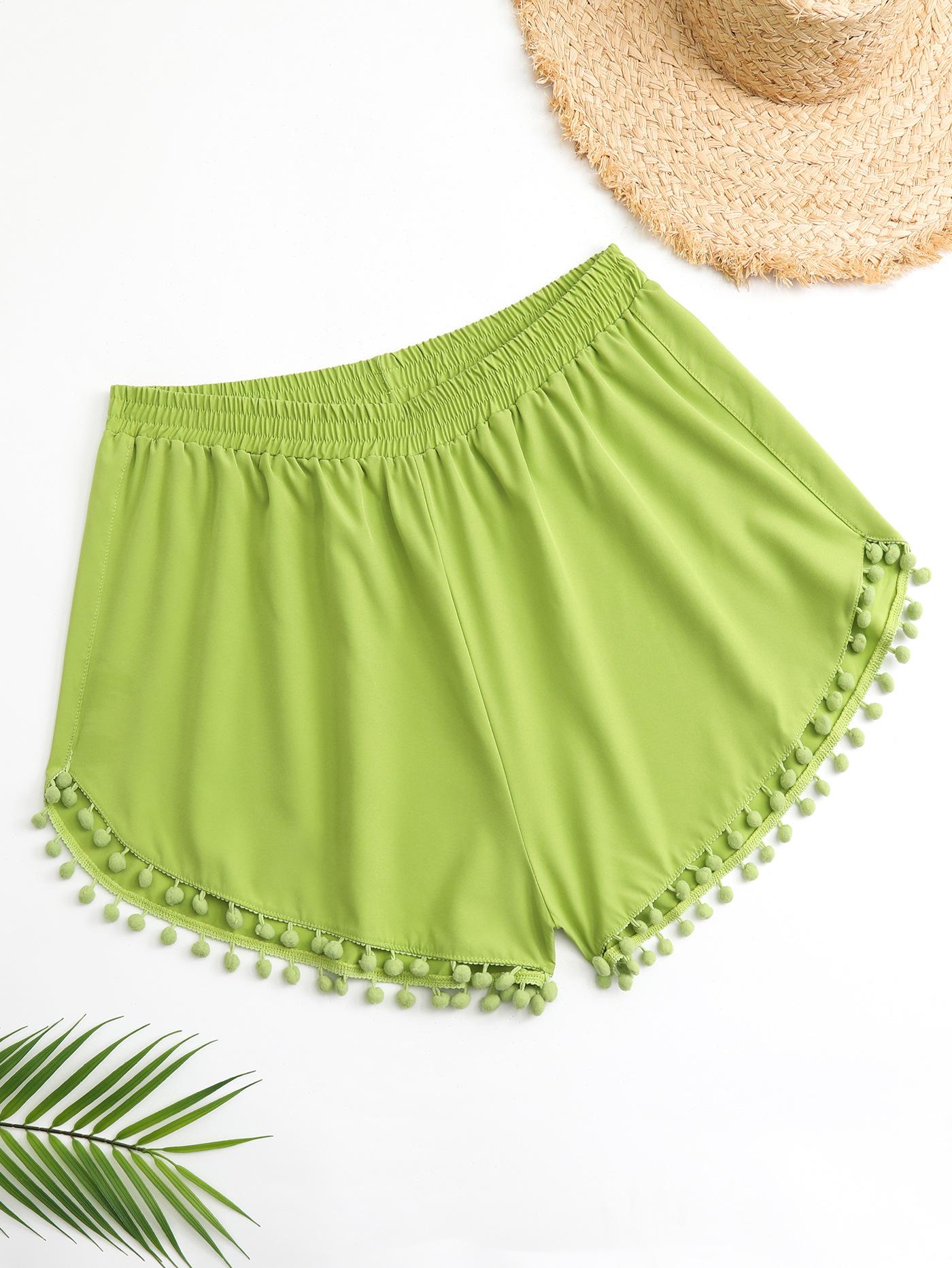 Bañador transfronterizo de color liso con cinturón alto conservador y pompón para exteriores, pantalones de playa, comercio exterior de Europa y Estados Unidos, Amazon al por mayor.