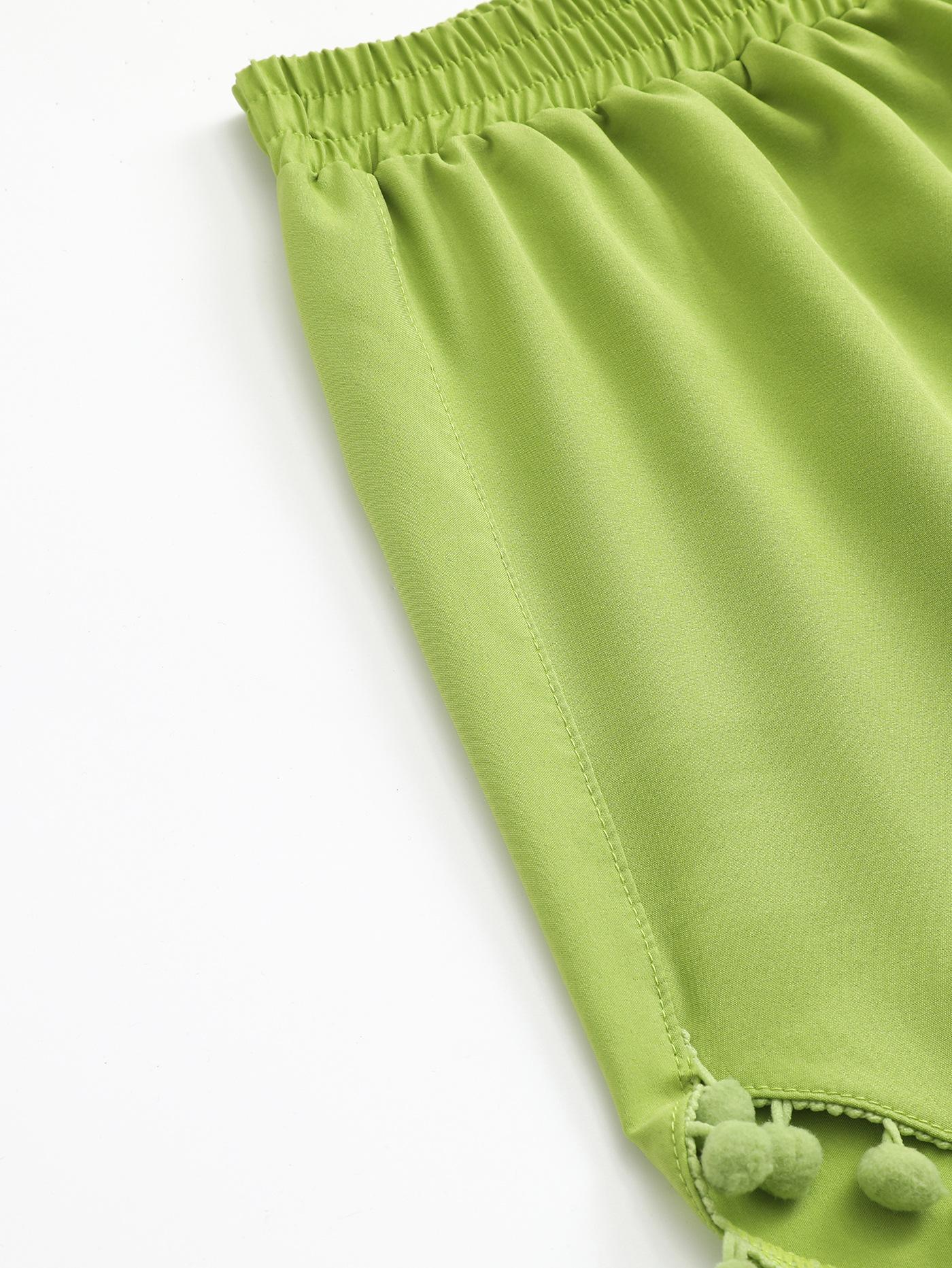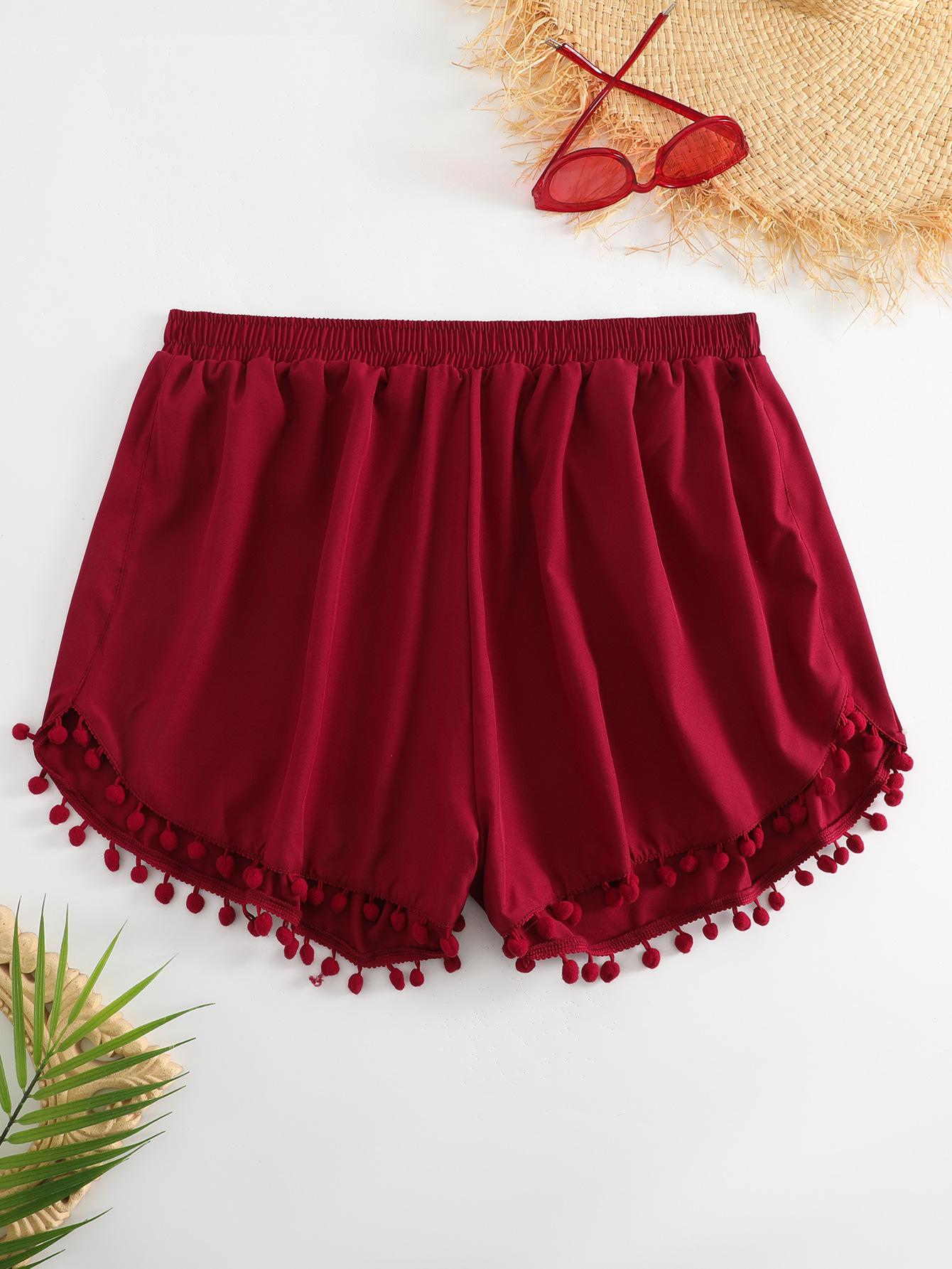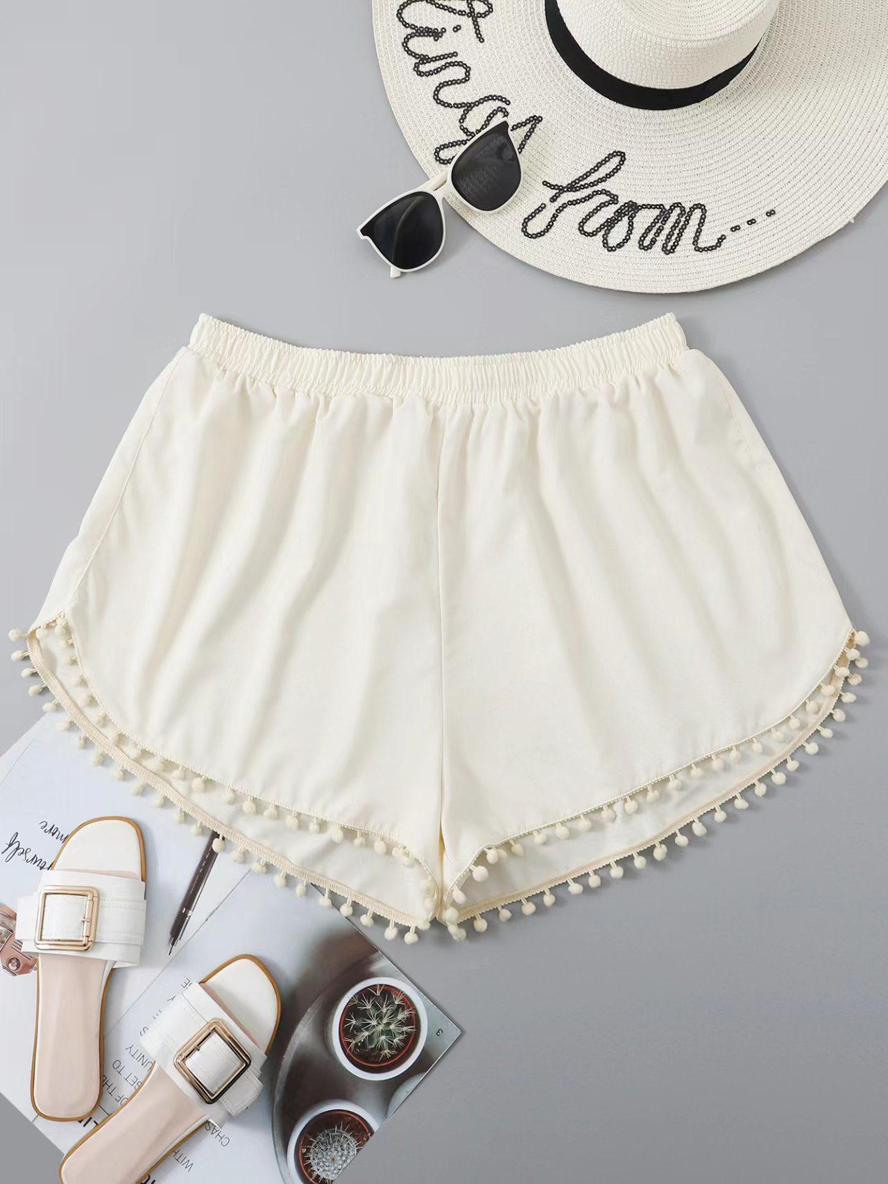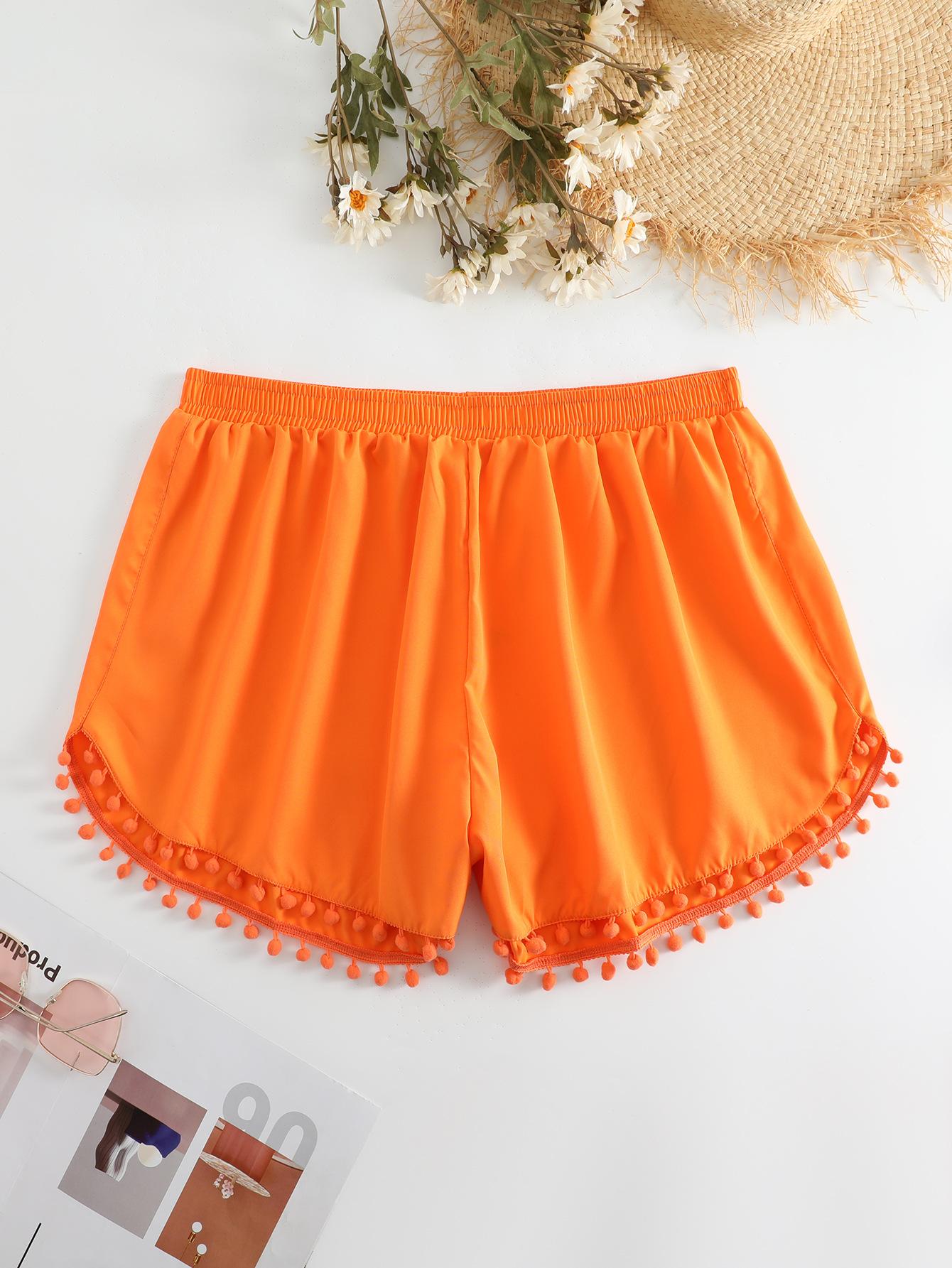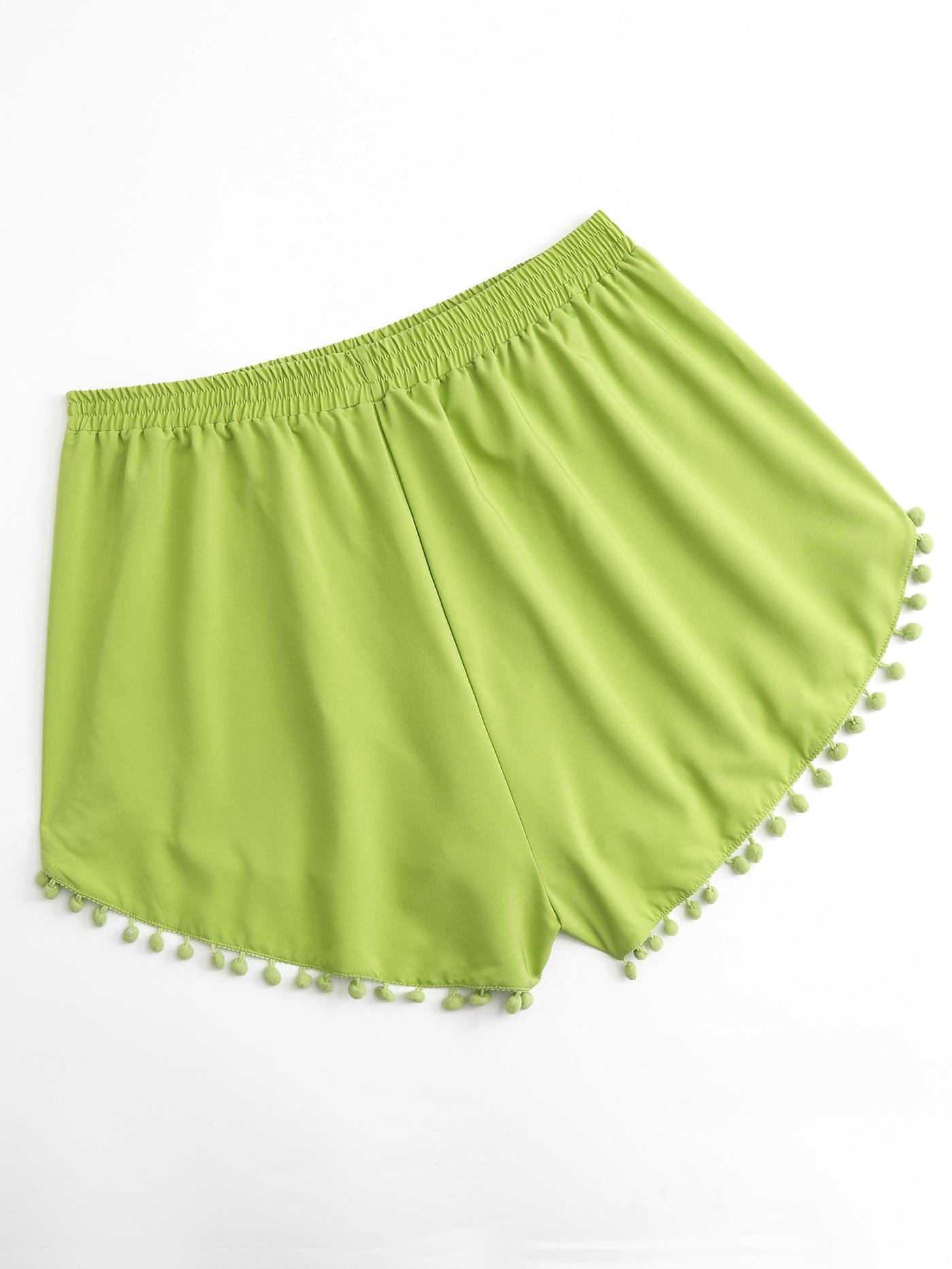 Bañador transfronterizo de color liso con cinturón alto conservador y pompón para exteriores, pantalones de playa, comercio exterior de Europa y Estados Unidos, Amazon al por mayor.