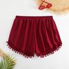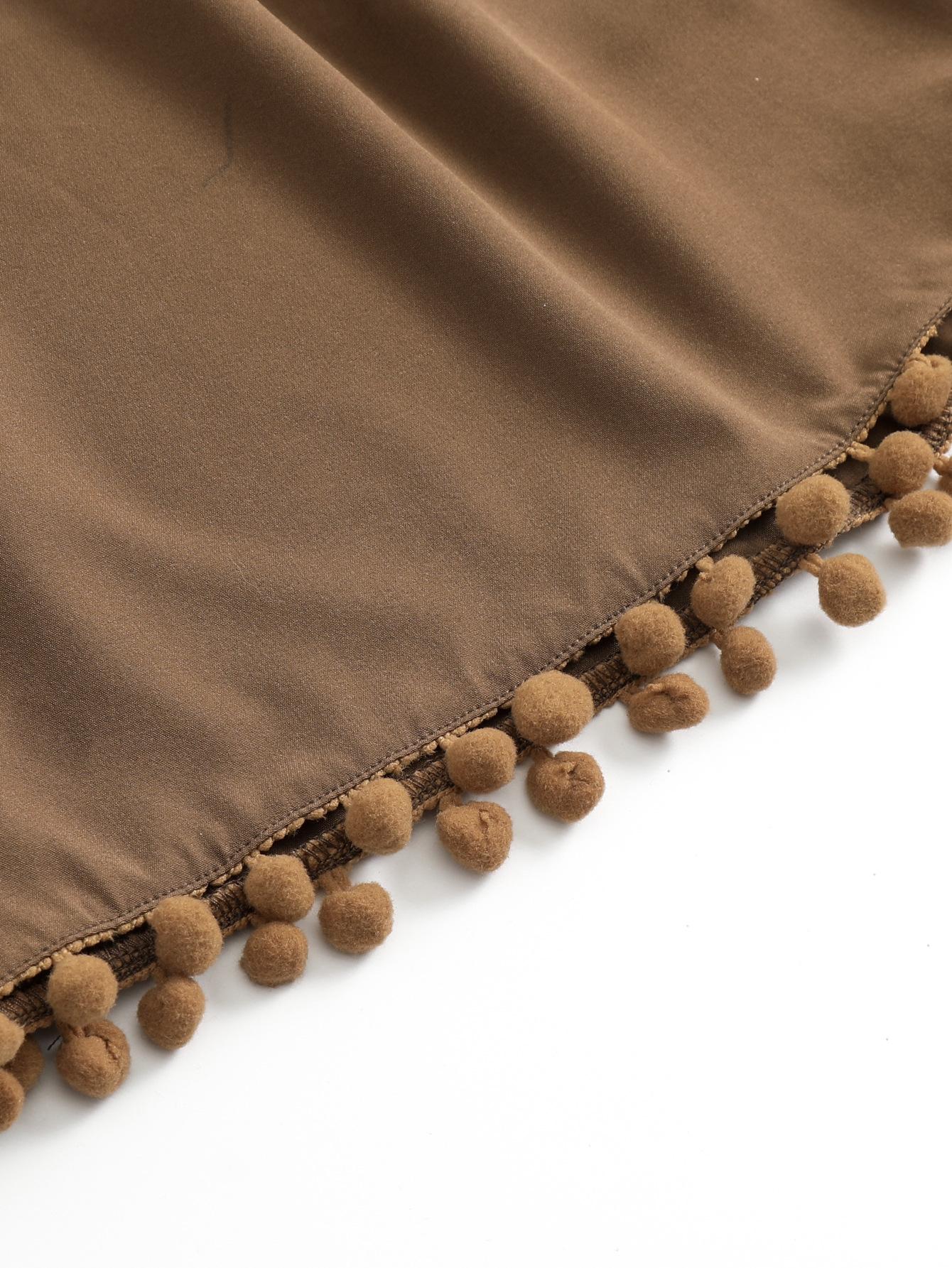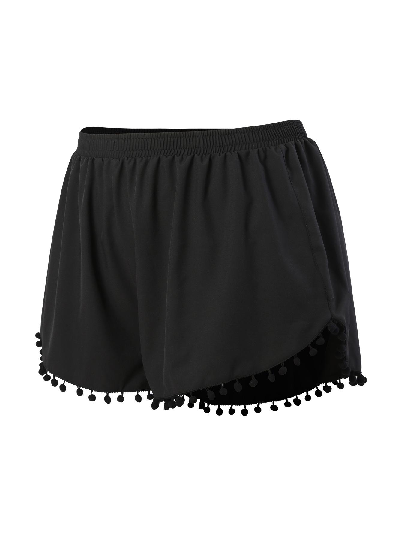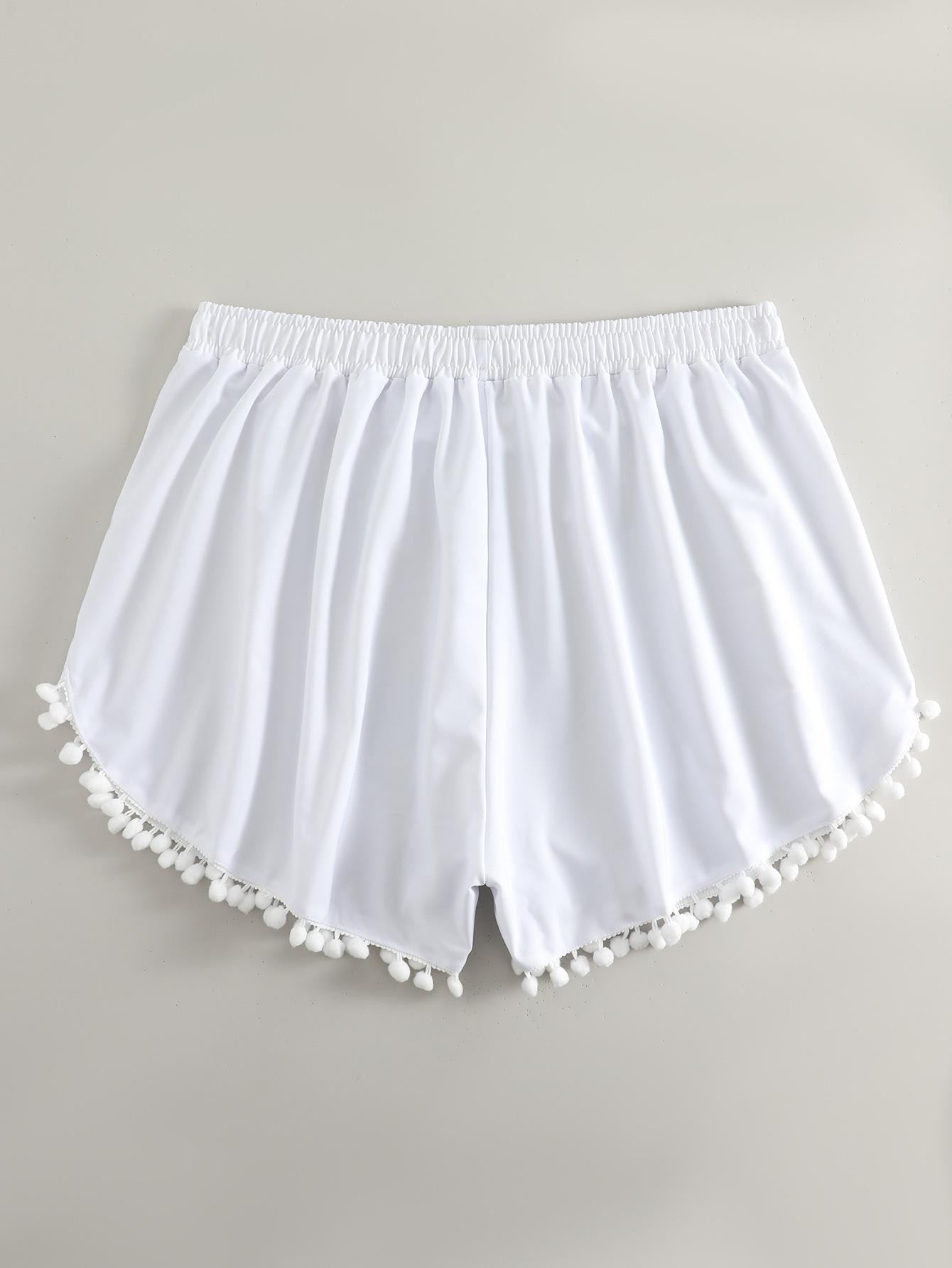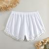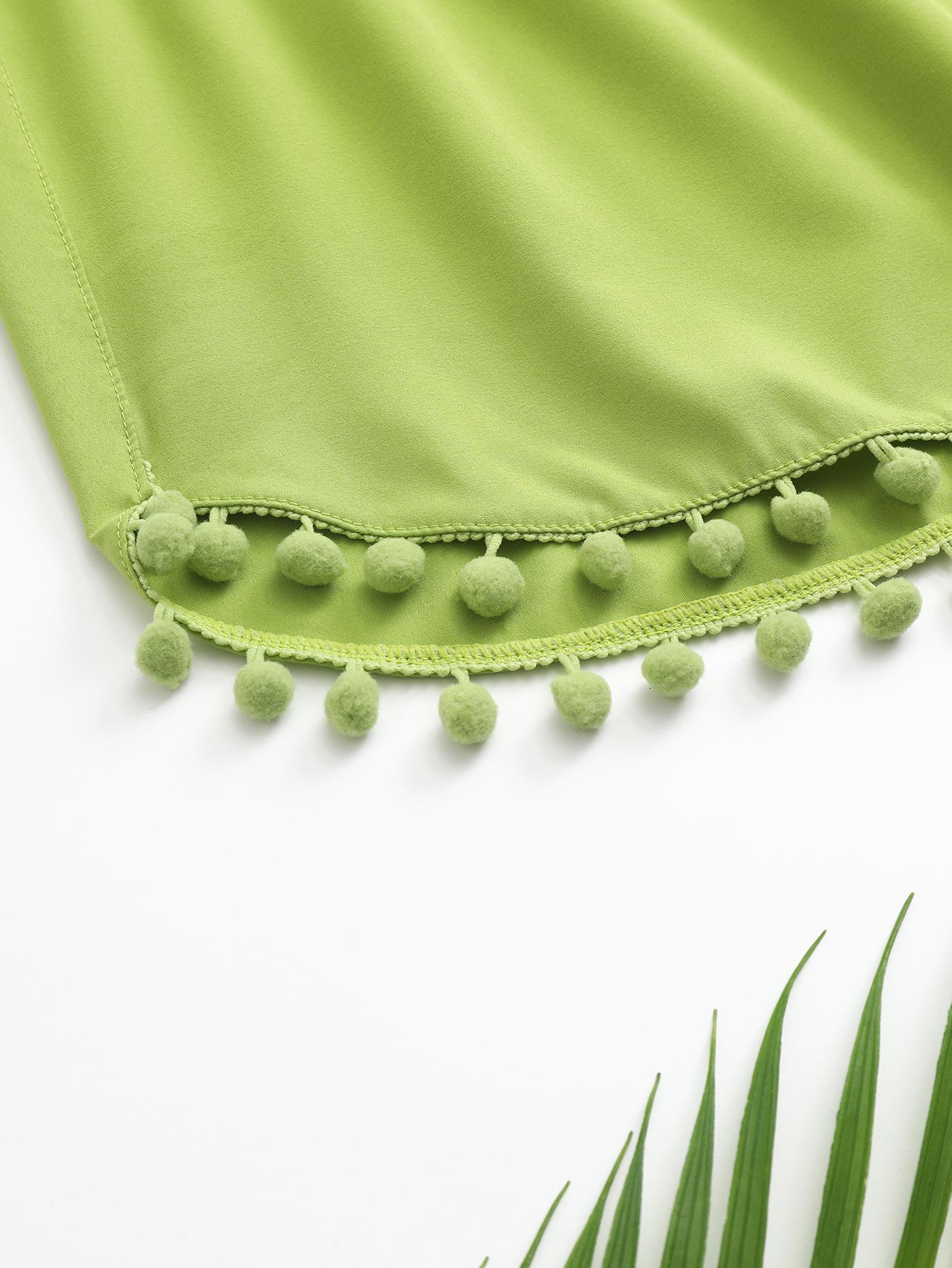 Bañador transfronterizo de color liso con cinturón alto conservador y pompón para exteriores, pantalones de playa, comercio exterior de Europa y Estados Unidos, Amazon al por mayor.