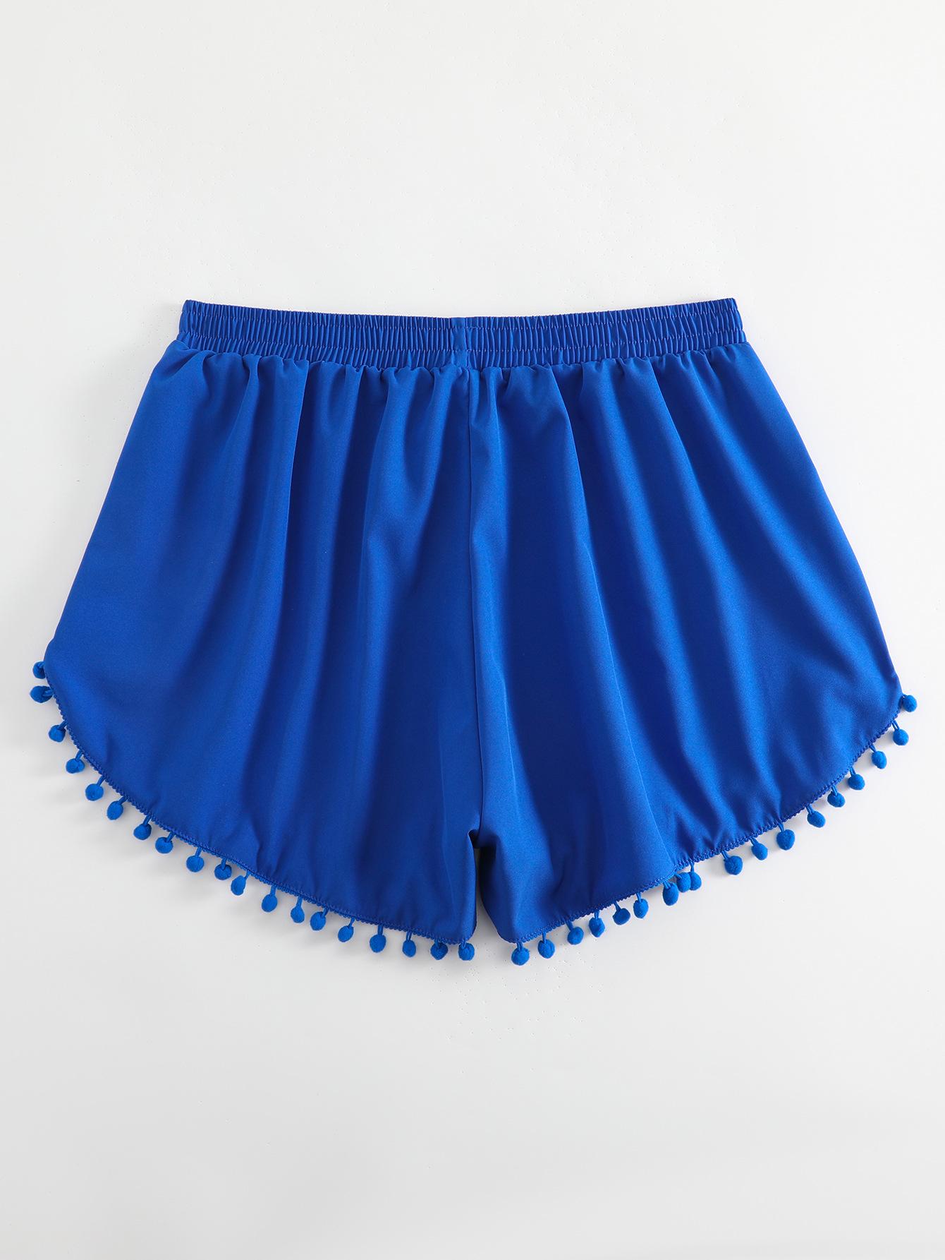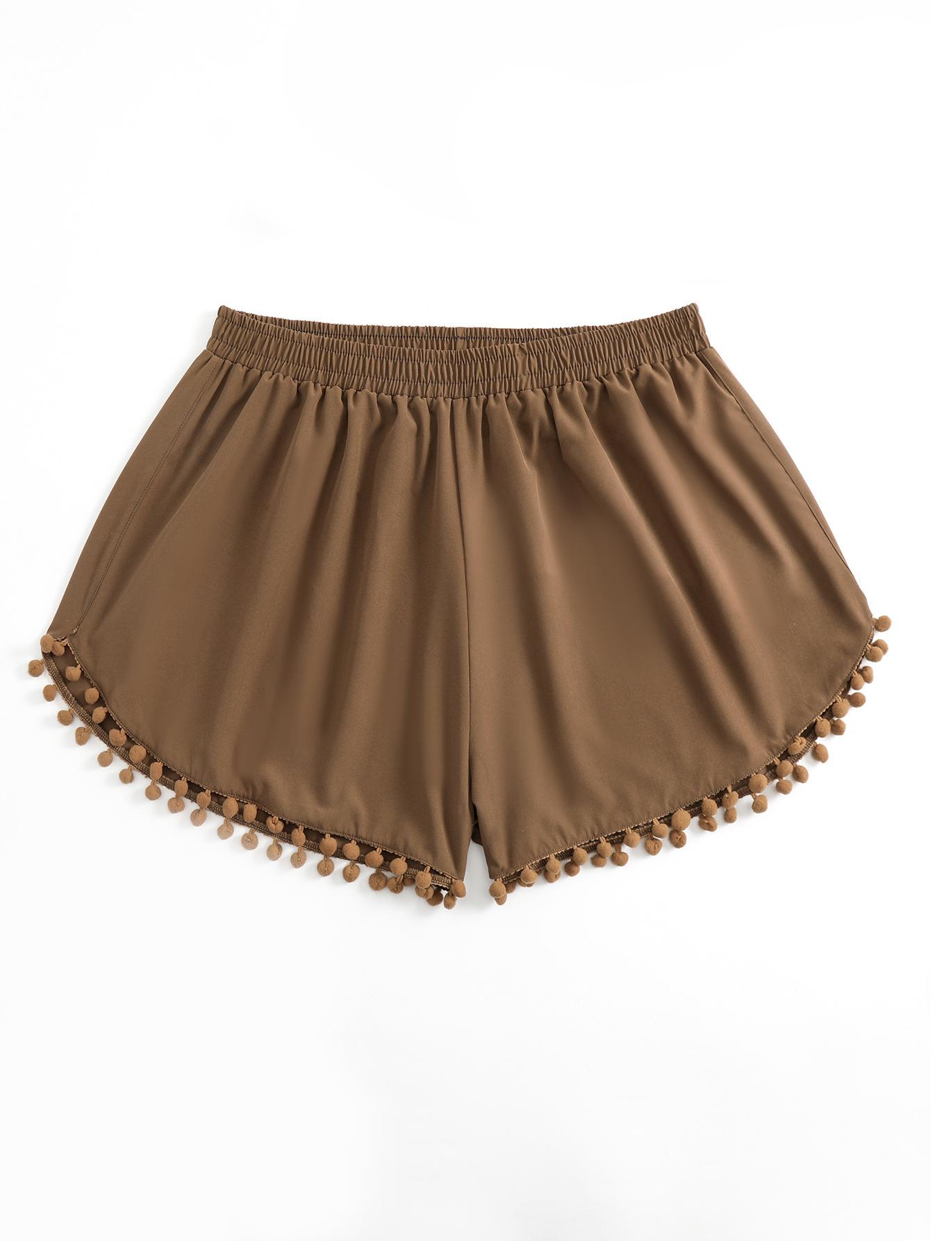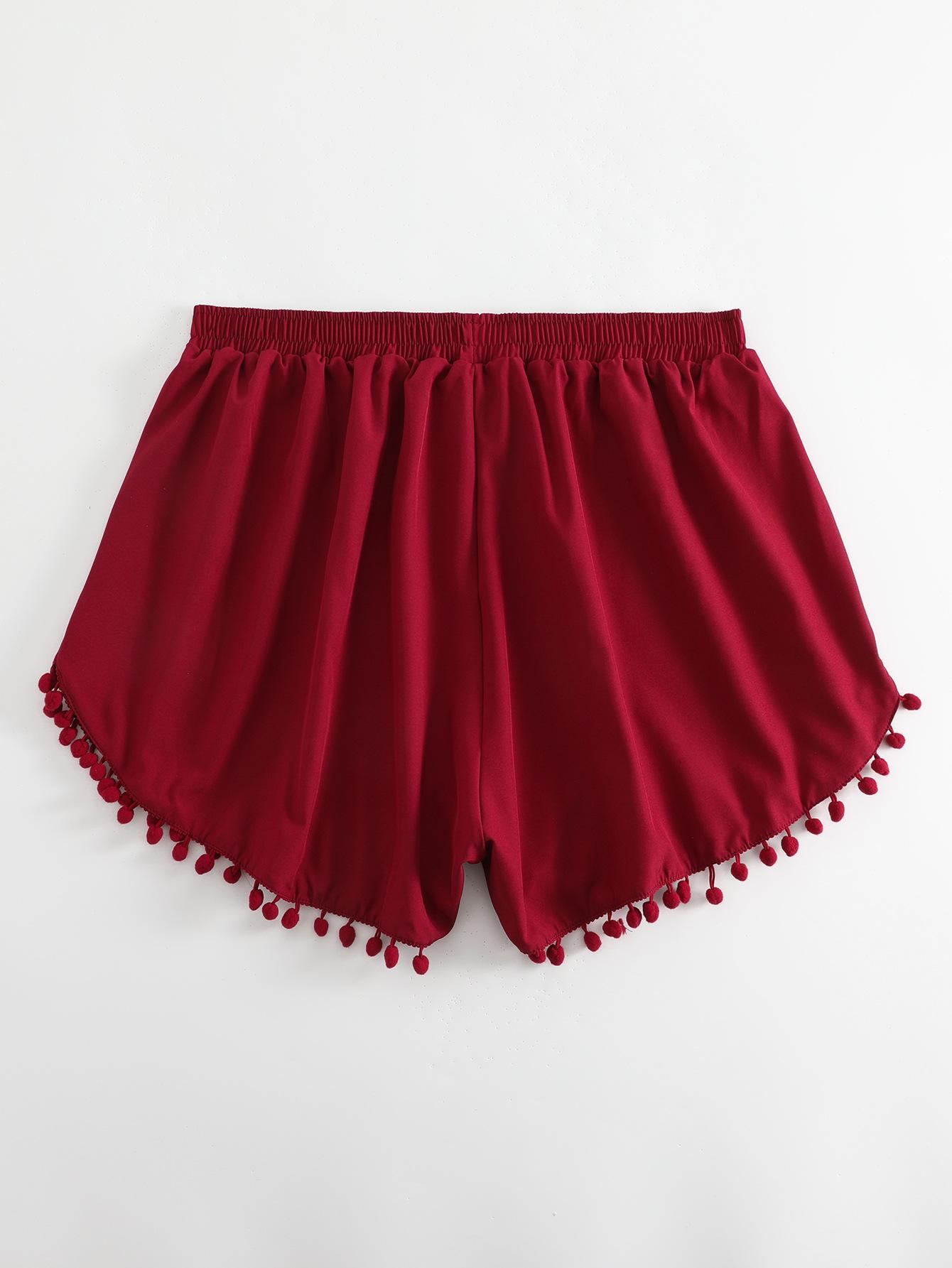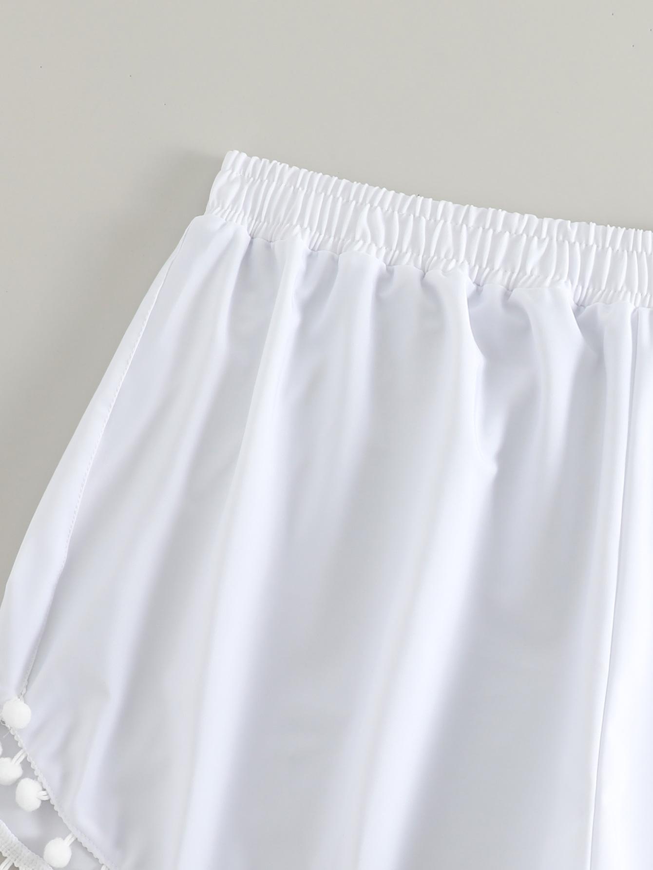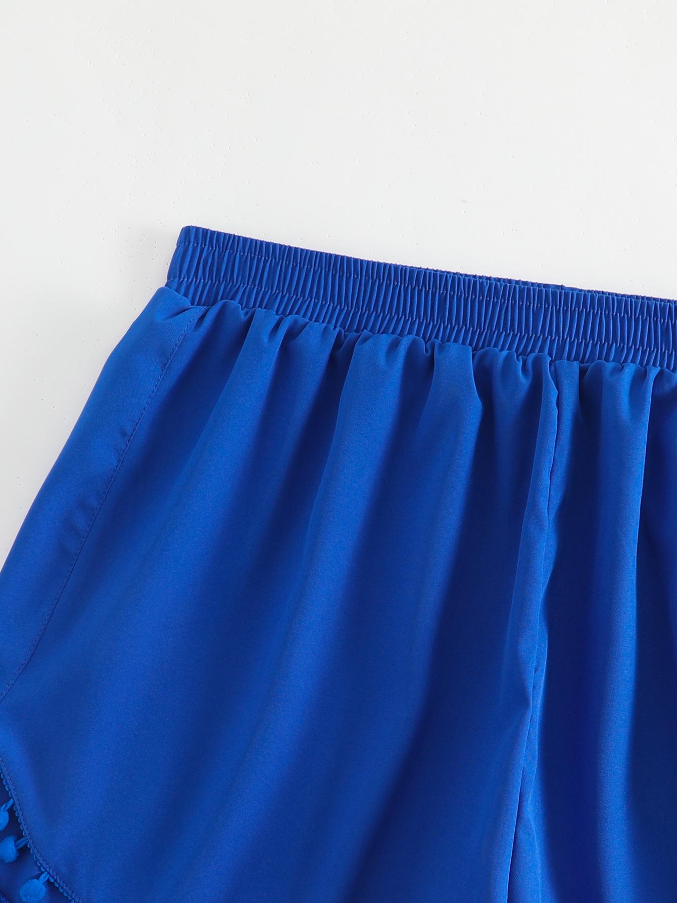 Bañador transfronterizo de color liso con cinturón alto conservador y pompón para exteriores, pantalones de playa, comercio exterior de Europa y Estados Unidos, Amazon al por mayor.