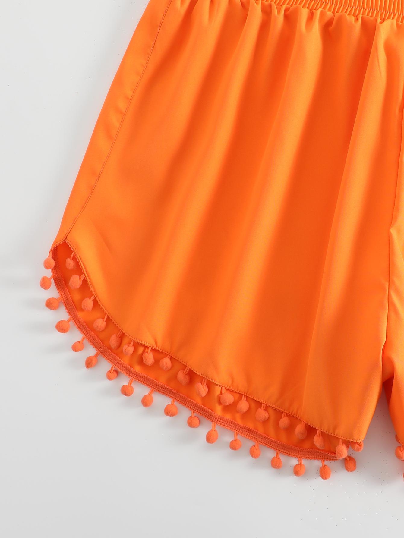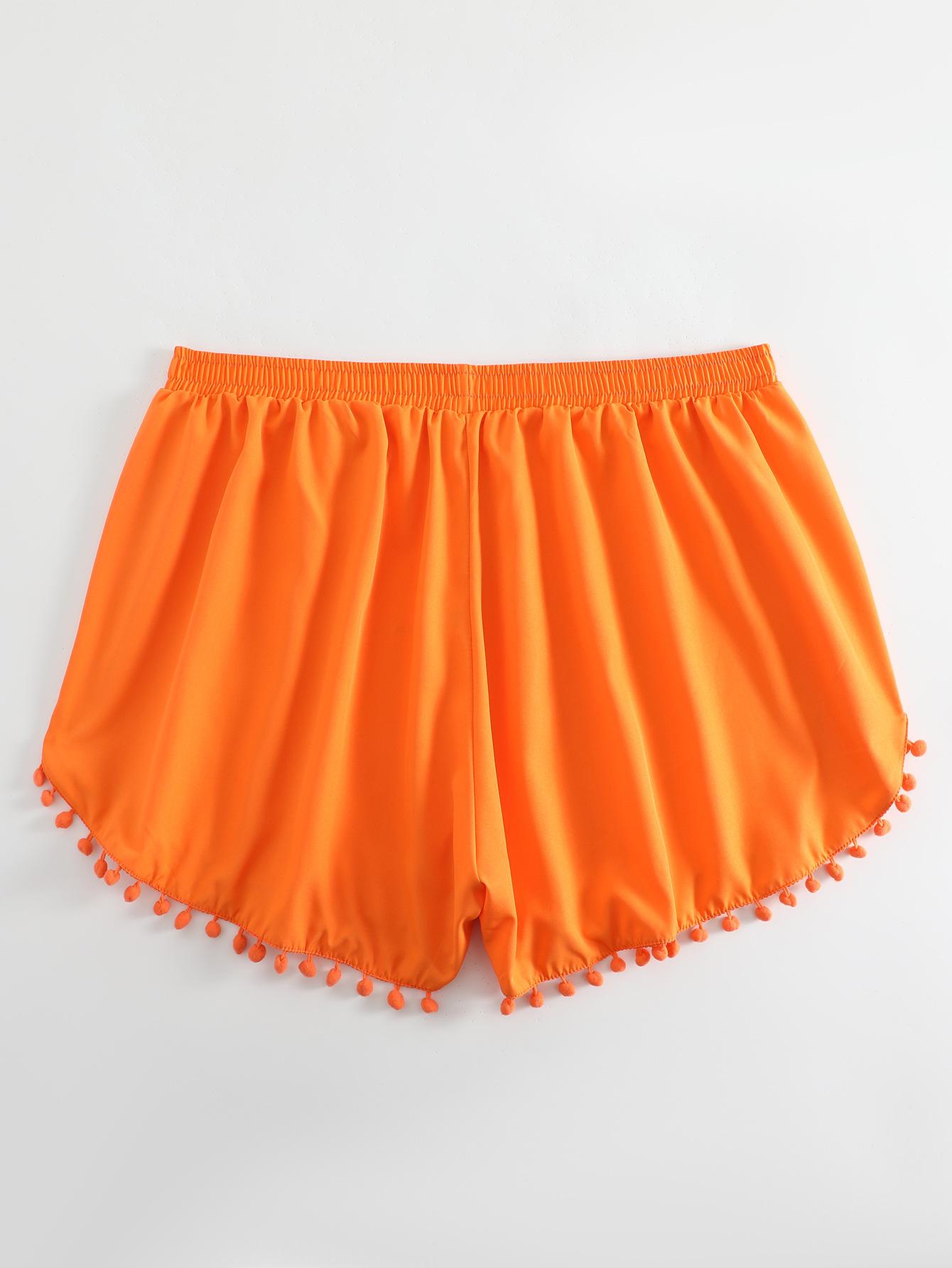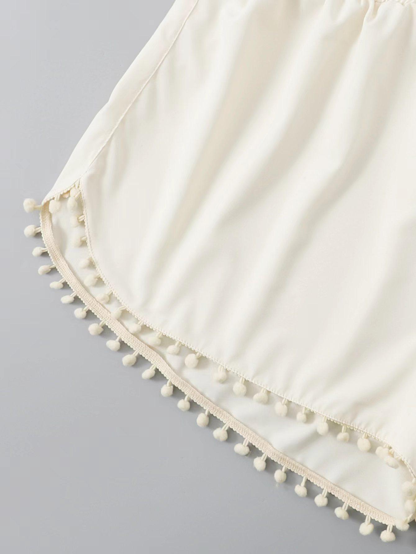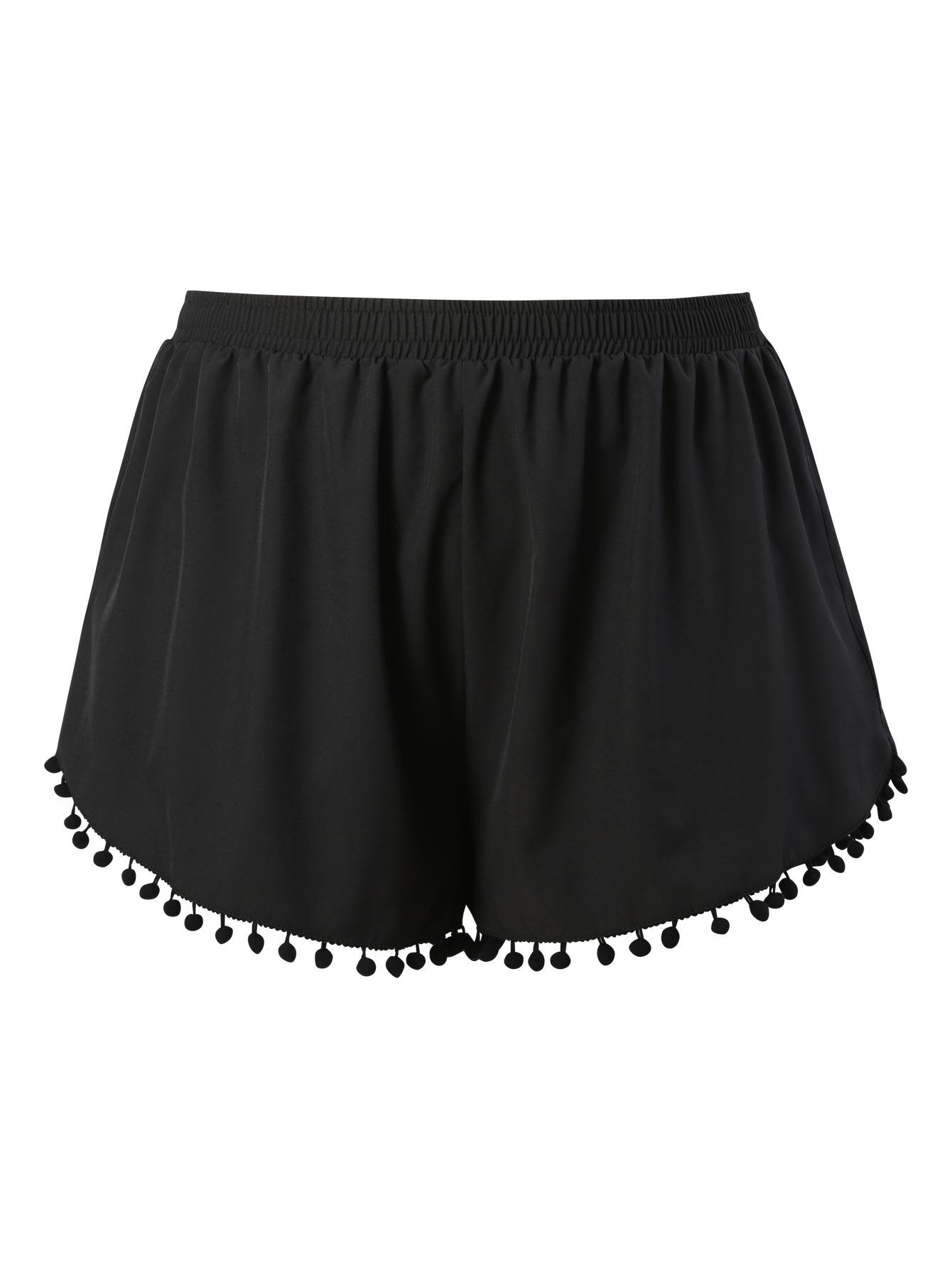 Bañador transfronterizo de color liso con cinturón alto conservador y pompón para exteriores, pantalones de playa, comercio exterior de Europa y Estados Unidos, Amazon al por mayor.