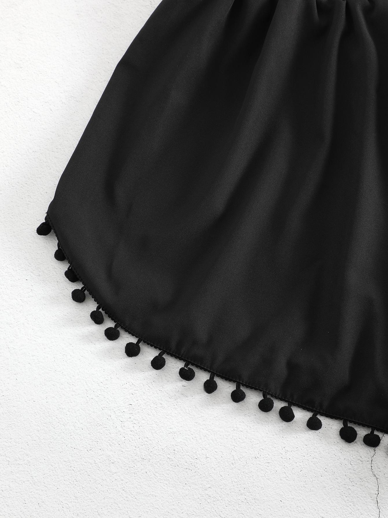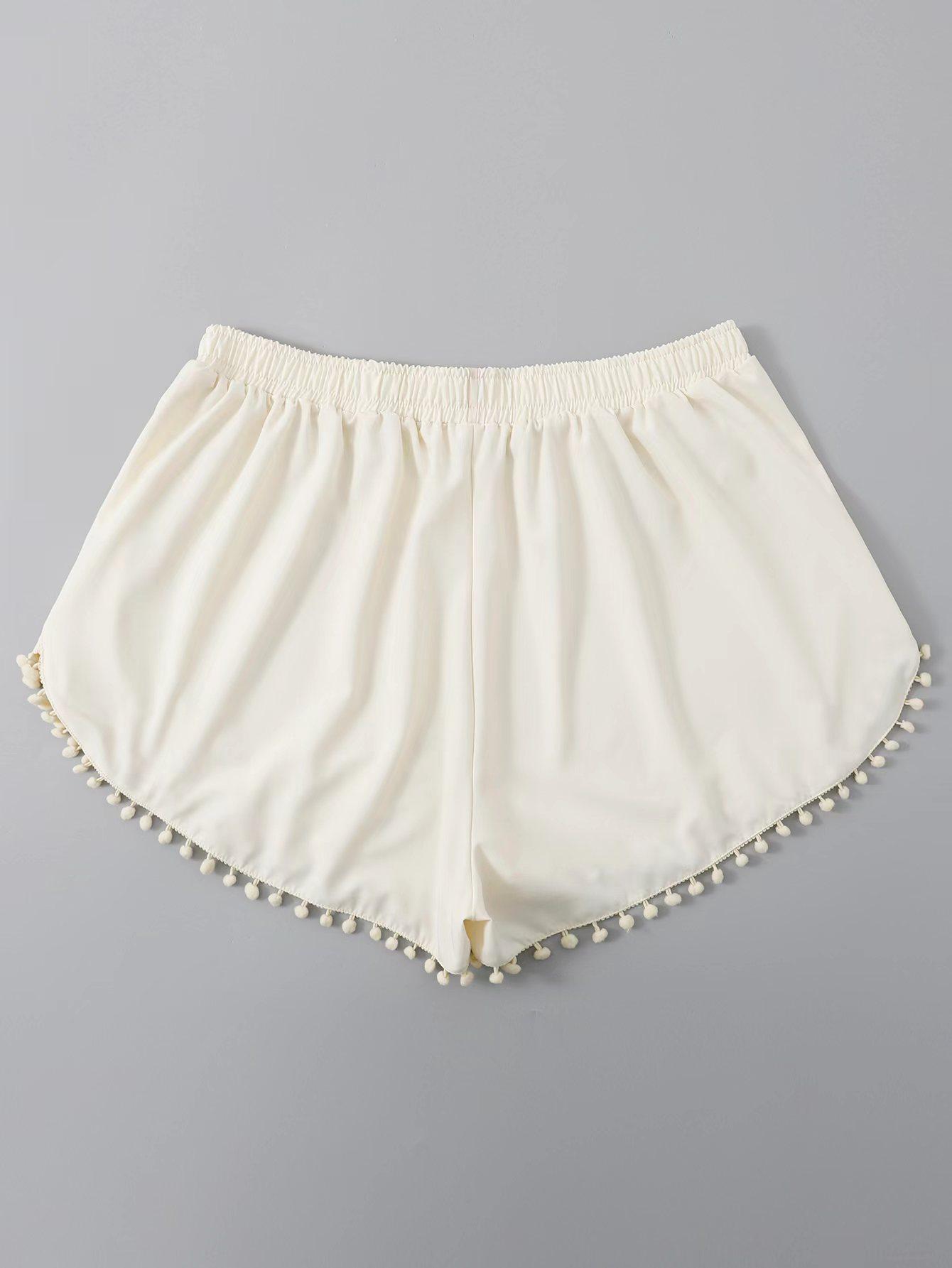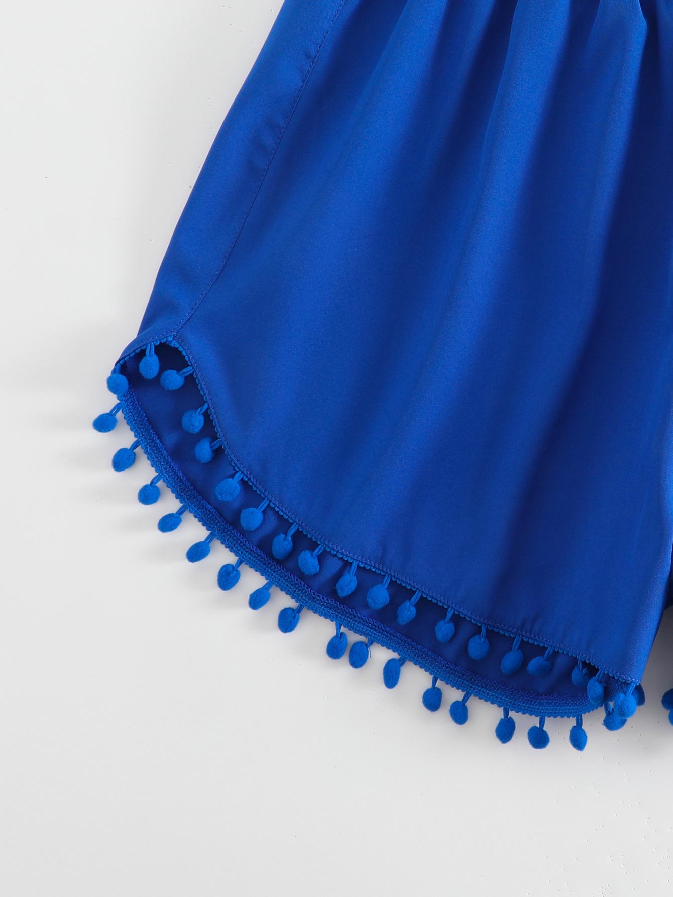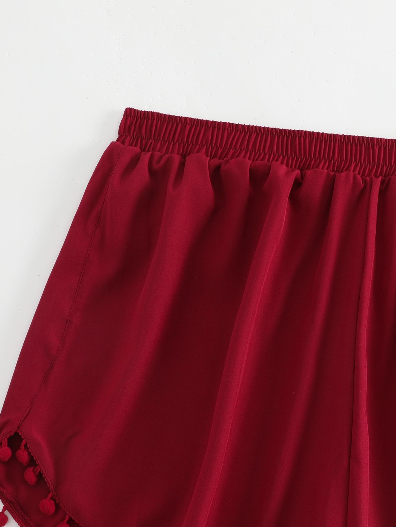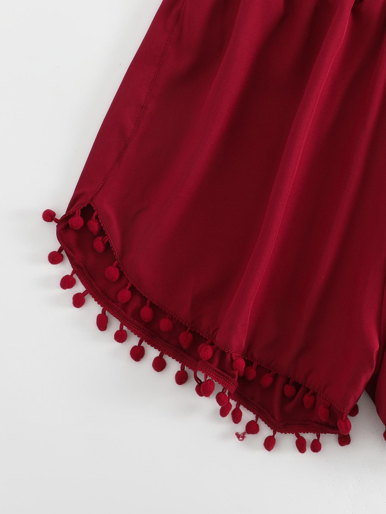 Bañador transfronterizo de color liso con cinturón alto conservador y pompón para exteriores, pantalones de playa, comercio exterior de Europa y Estados Unidos, Amazon al por mayor.