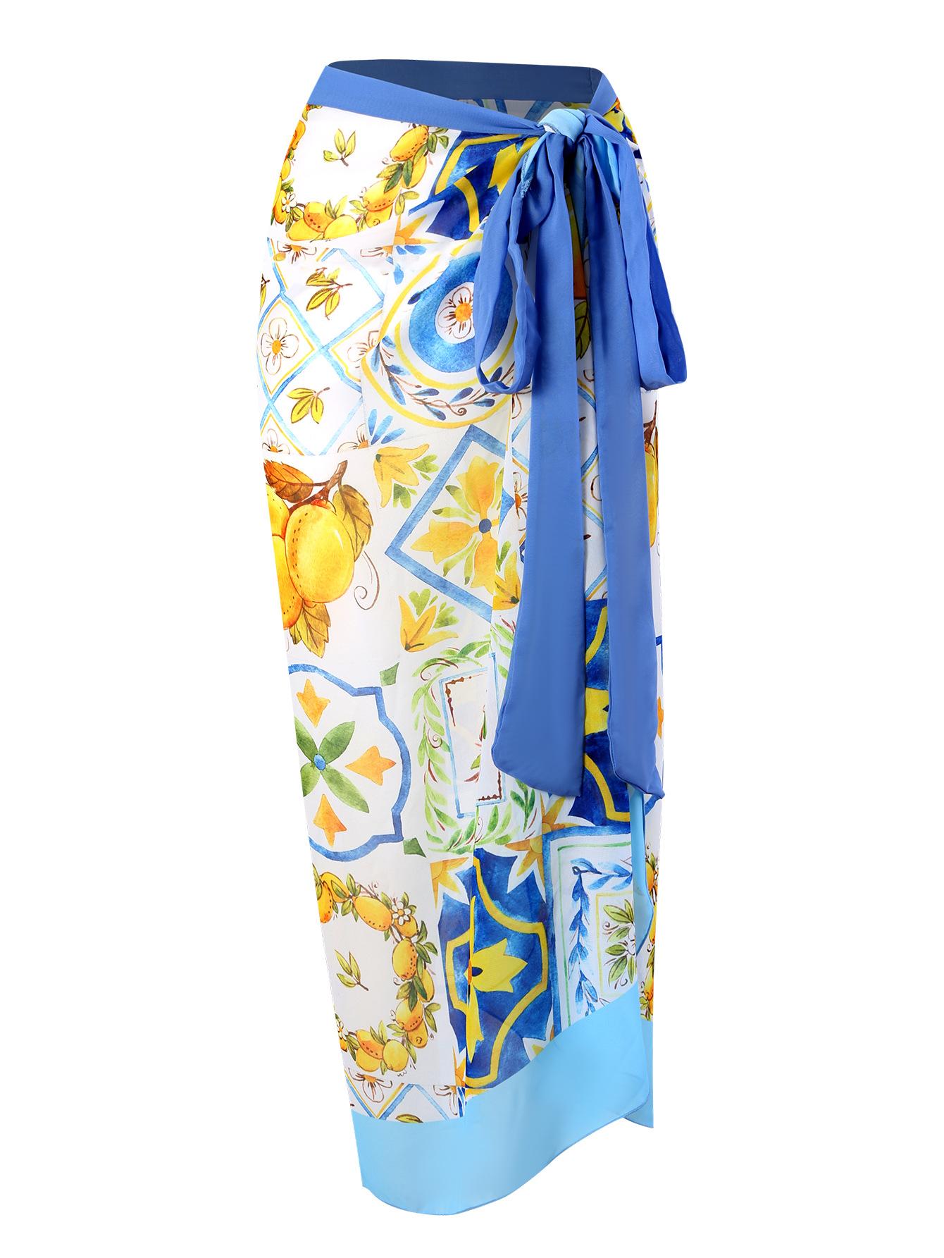 2024 comercio exterior nueva moda europea y americana gasa protector solar estampado encaje con cordones vestido blusa chal de pecho