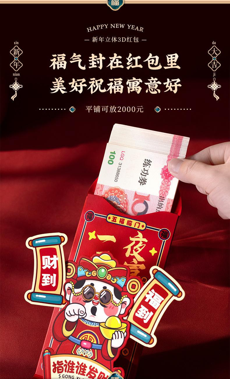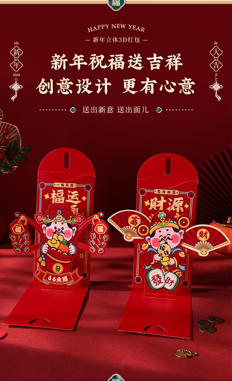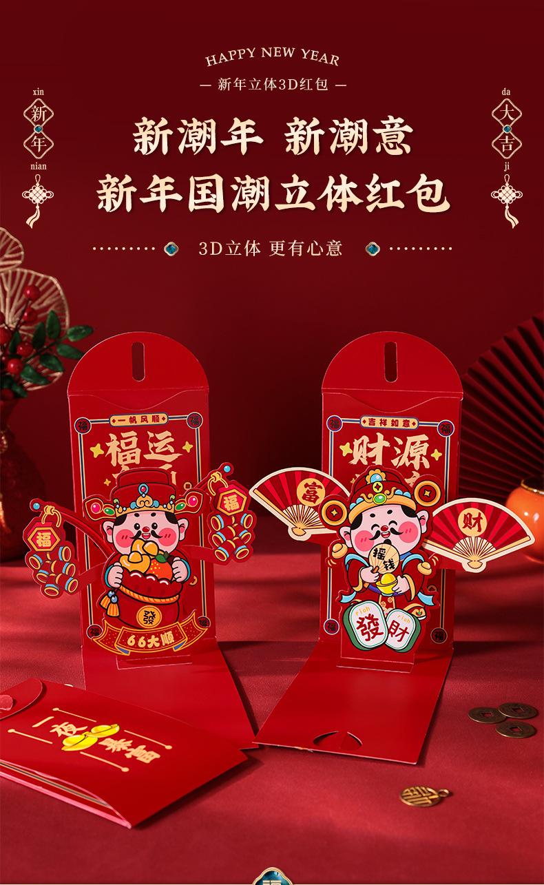 Sobres Rojos de Año Nuevo, Nuevos Paquetes Rojos Creativos Personalizados Estéreo 3D, Sobres de Dinero de Año Nuevo para Niños
