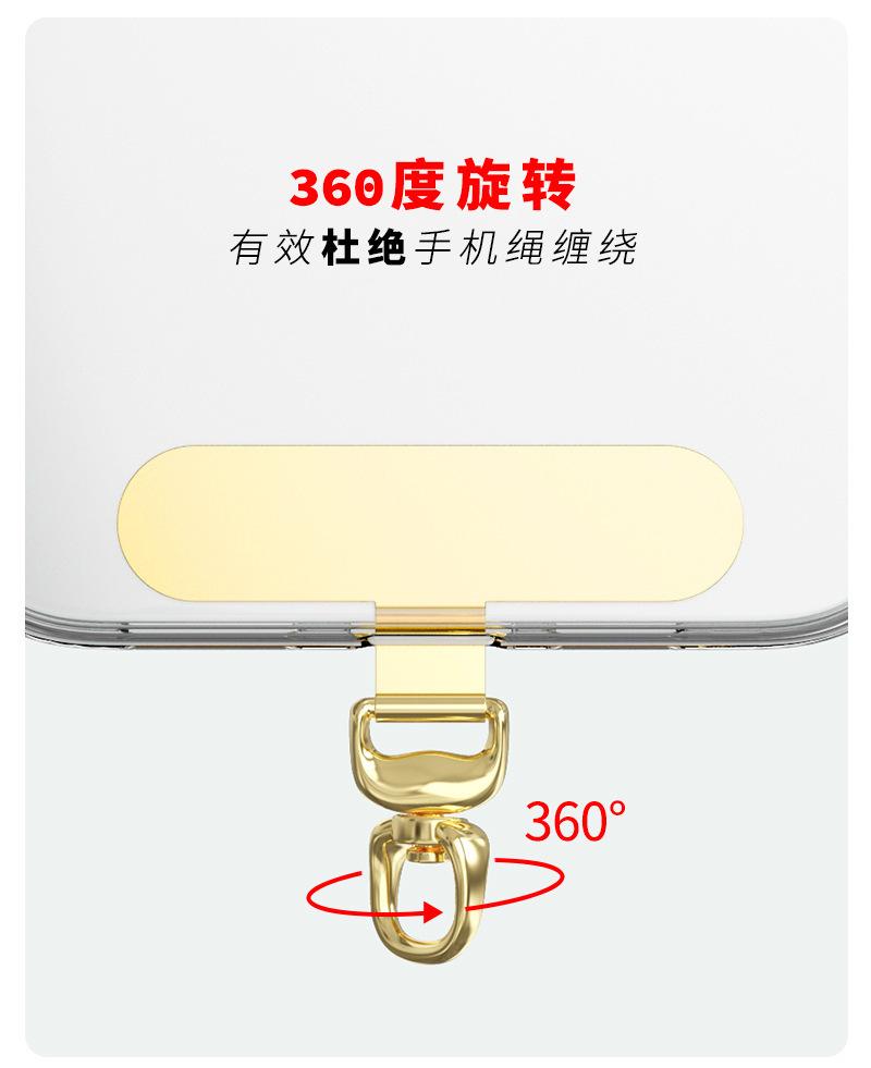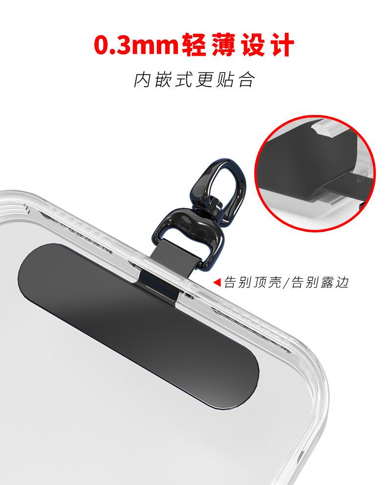 Goma para cordón de teléfono móvil, clip de metal de acero inoxidable, rotación de 360 grados, 0.3 mm ultradelgado, pieza colgante universal para funda de teléfono móvil