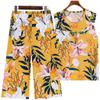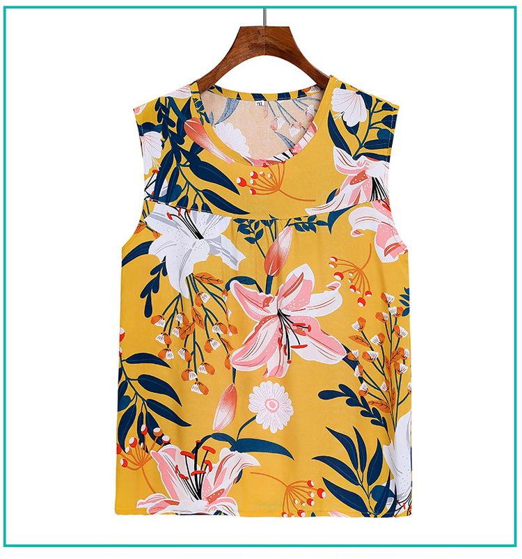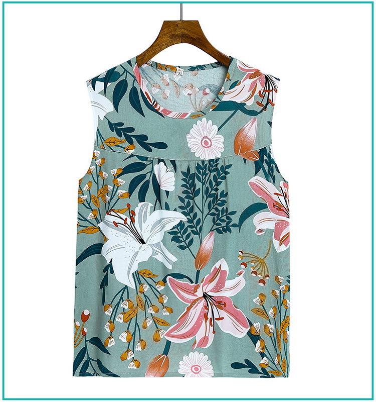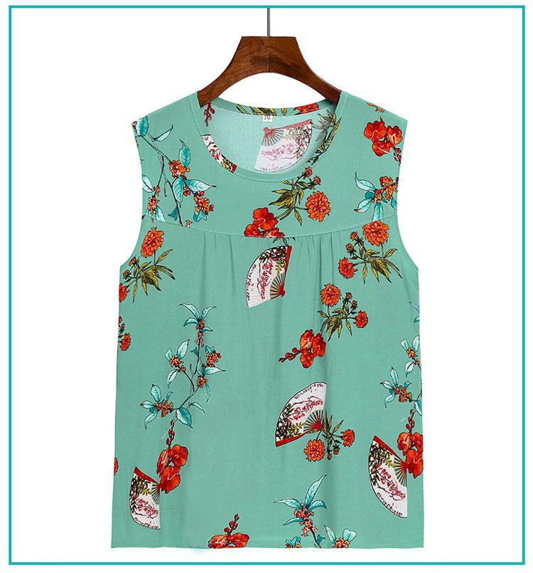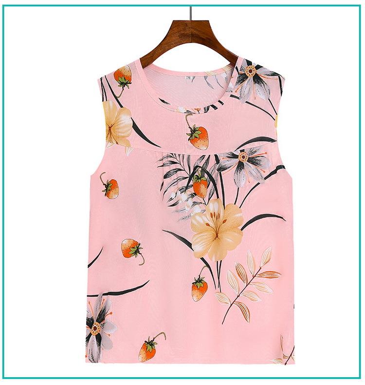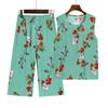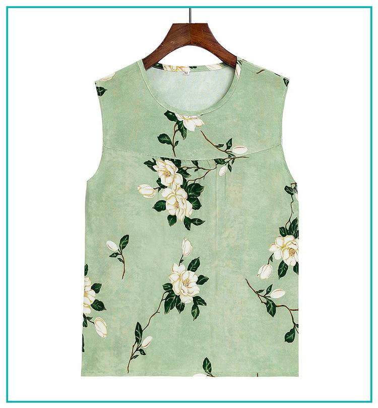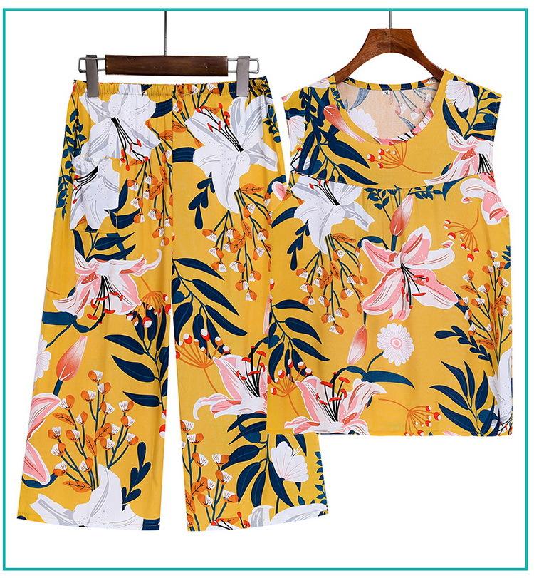 Pijama de dos piezas sin mangas de algodón y seda para mujer de verano, para madres de mediana edad y mayores, de algodón artificial, holgado y fino, para estar en casa.