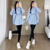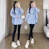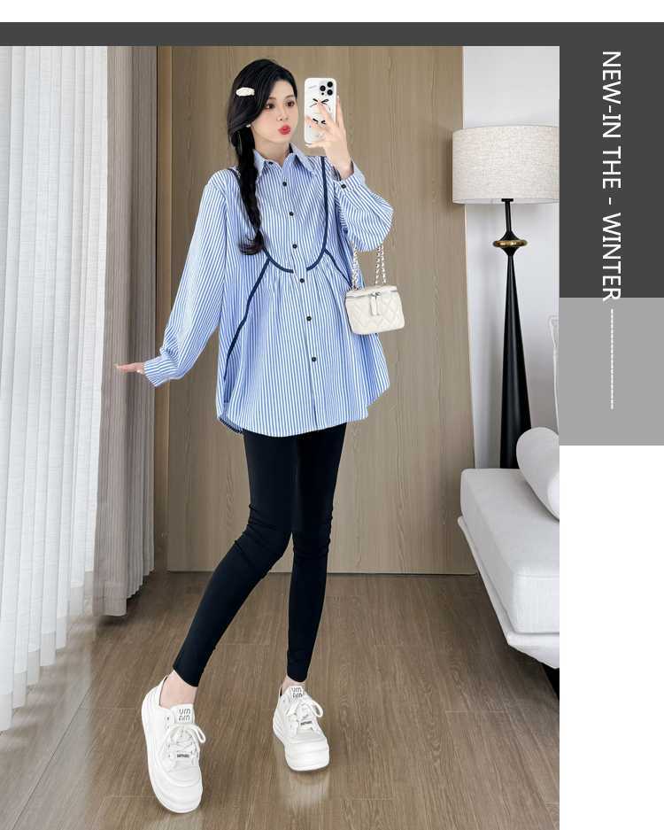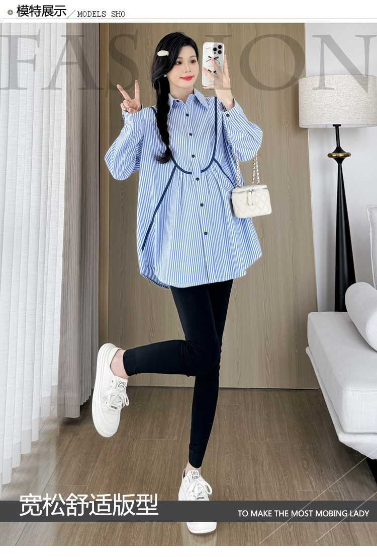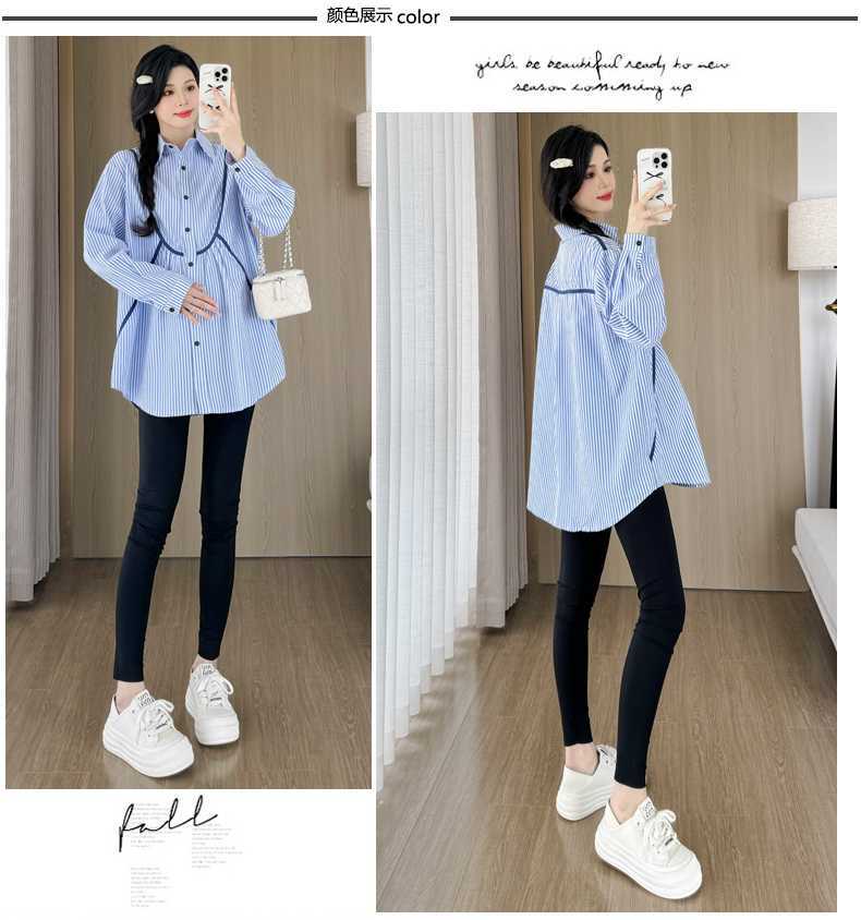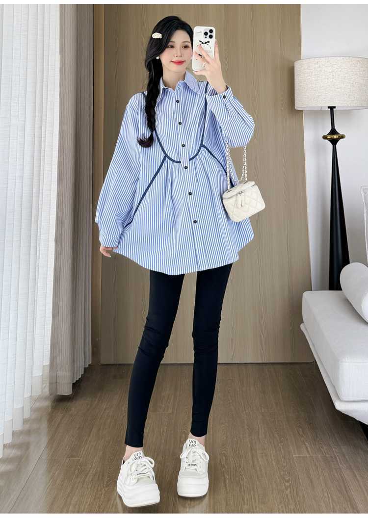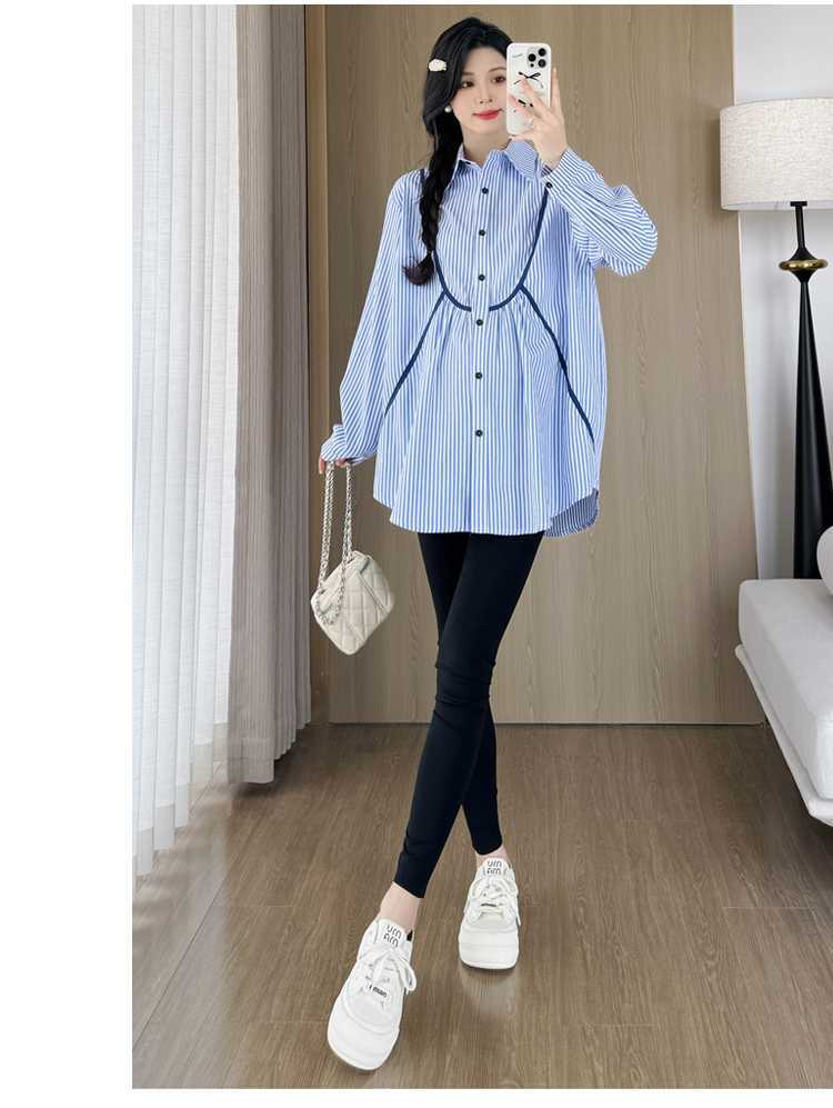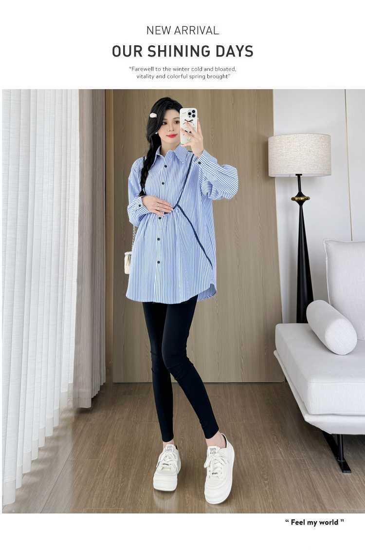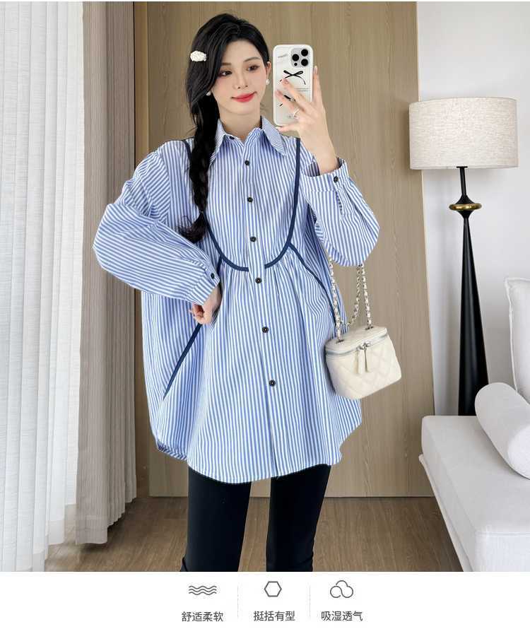 Ropa de maternidad de primavera 2025, camisa de manga larga a rayas de estilo coreano, camisa antiedad, nueva camisa sencilla con solapa para embarazadas.