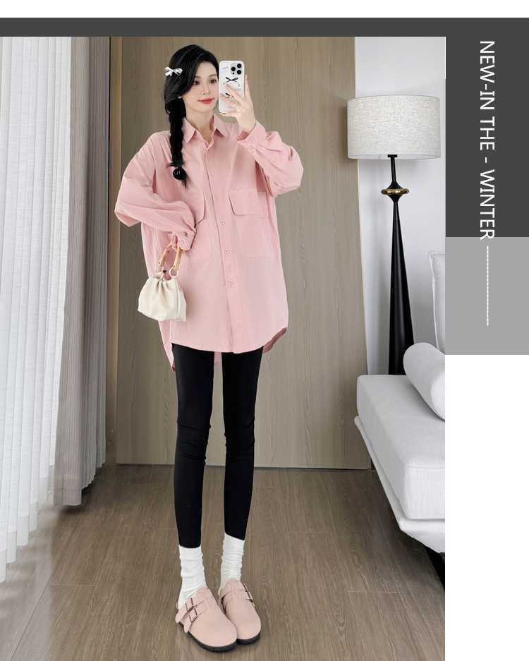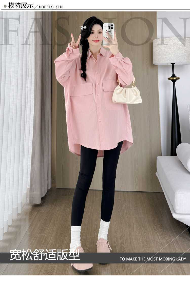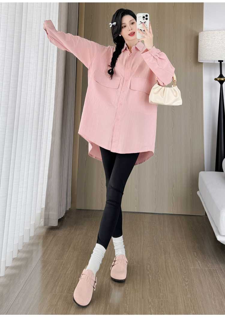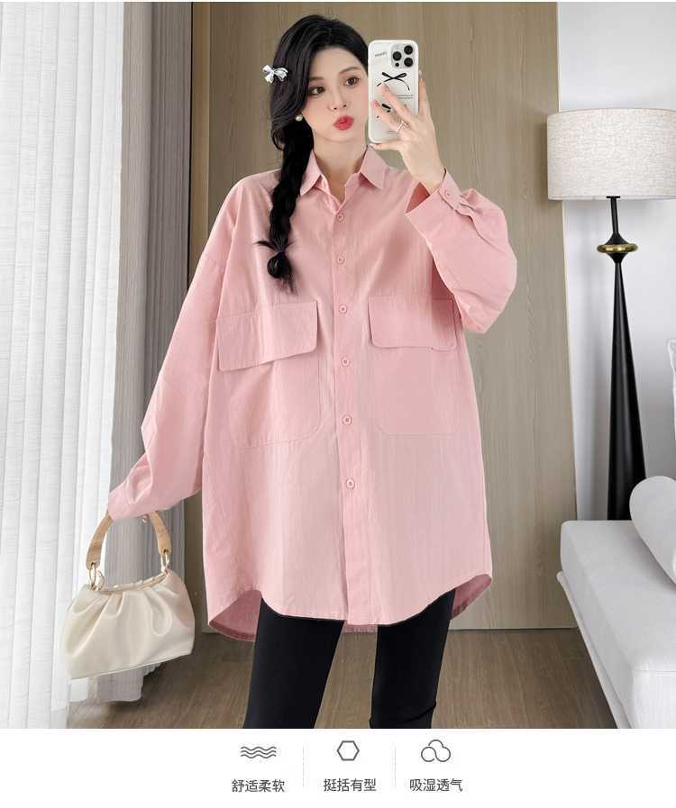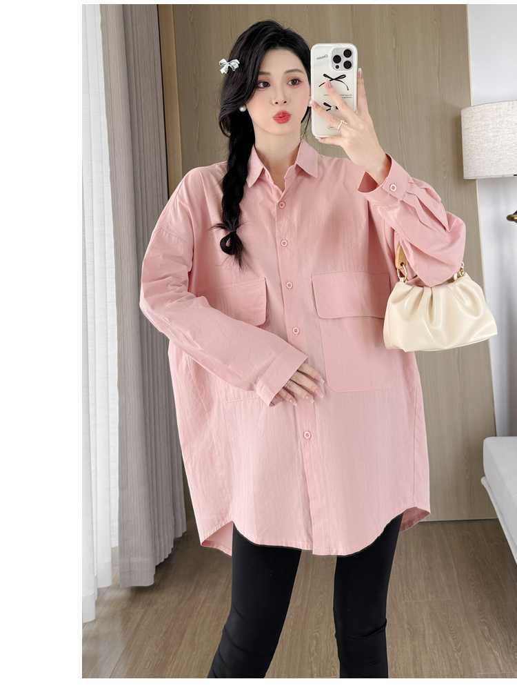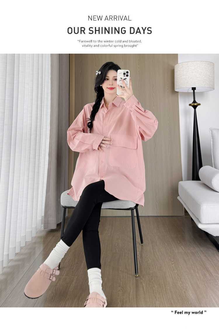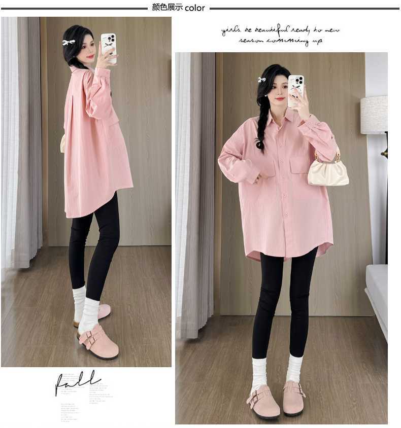 Ropa de maternidad de primavera 2025, estilo coreano, informal, sencilla, de manga larga, nueva moda, con solapa y bolsillo grande, para embarazadas.