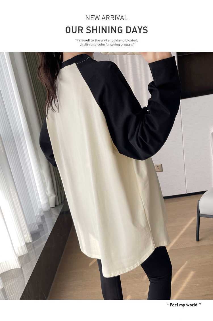 Vestido de maternidad de primavera 2025, estilo coreano, informal, con costuras, camiseta de manga larga, holgado, sencillo y moderno, para embarazadas