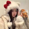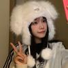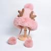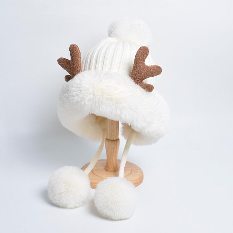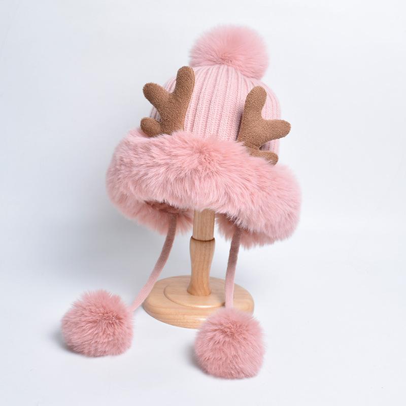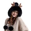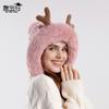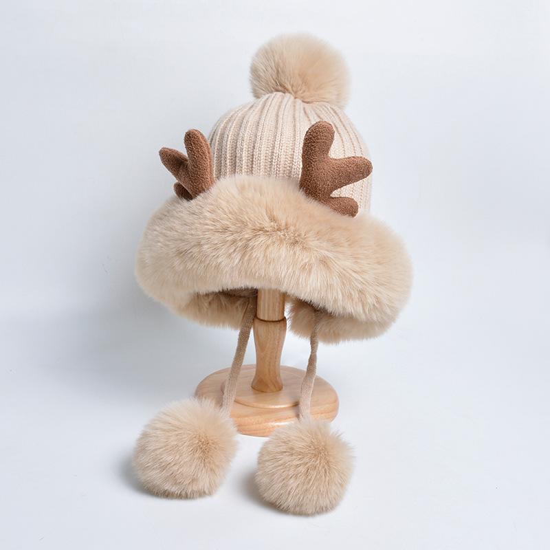 Gorro de mujer recién llegado con astas y bola de pelo, forro polar, orejeras gruesas, para montar a caballo en invierno, esquí, bonito gorro de punto navideño.