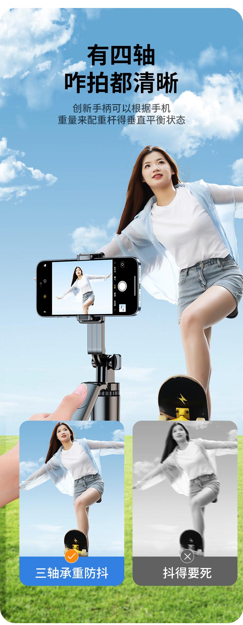 1.8m [black] four-axis anti-shake/vlog handheld tracking/stainless steel shaft/bluetooth remote control, 1.8m ...
