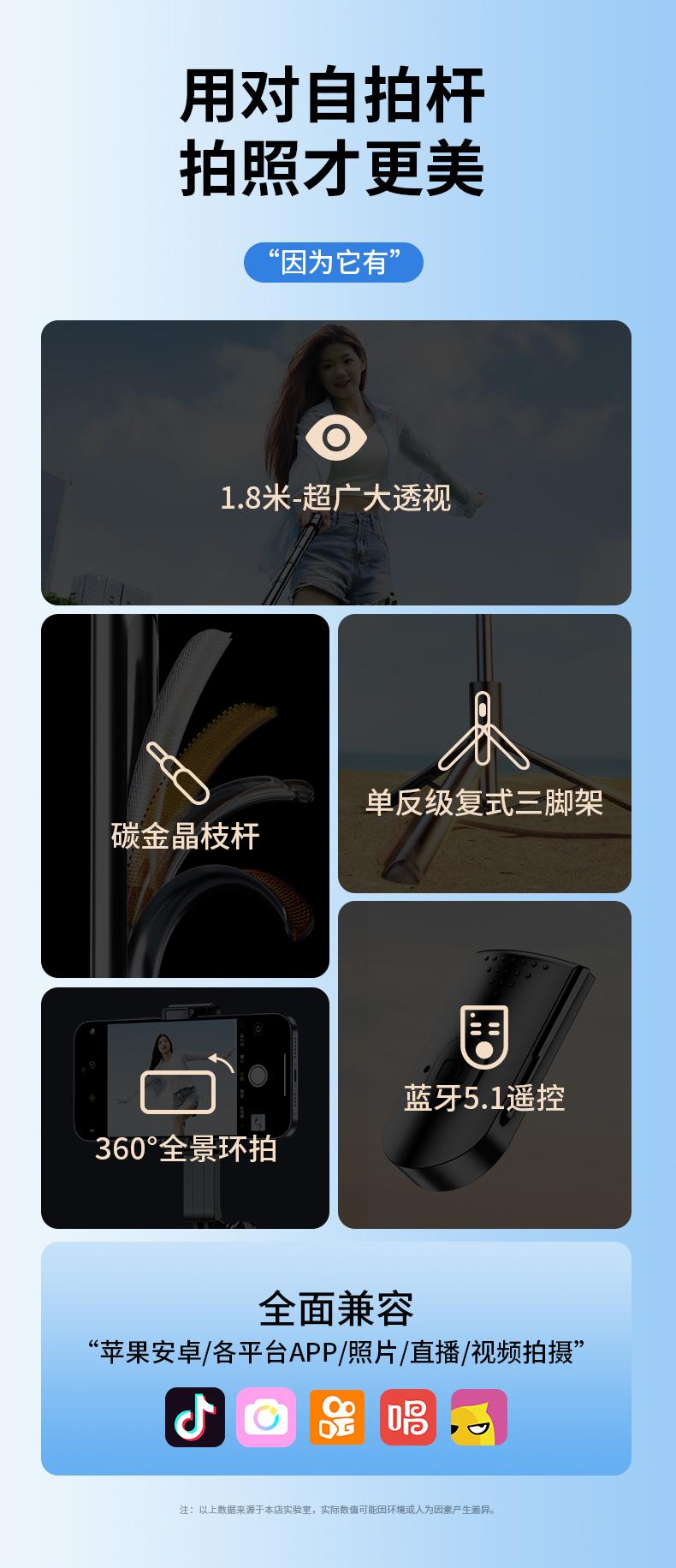 1.7m [beauty fill-in light model] keel reinforced tripod/360°Panoramic shot/bluetooth remote control