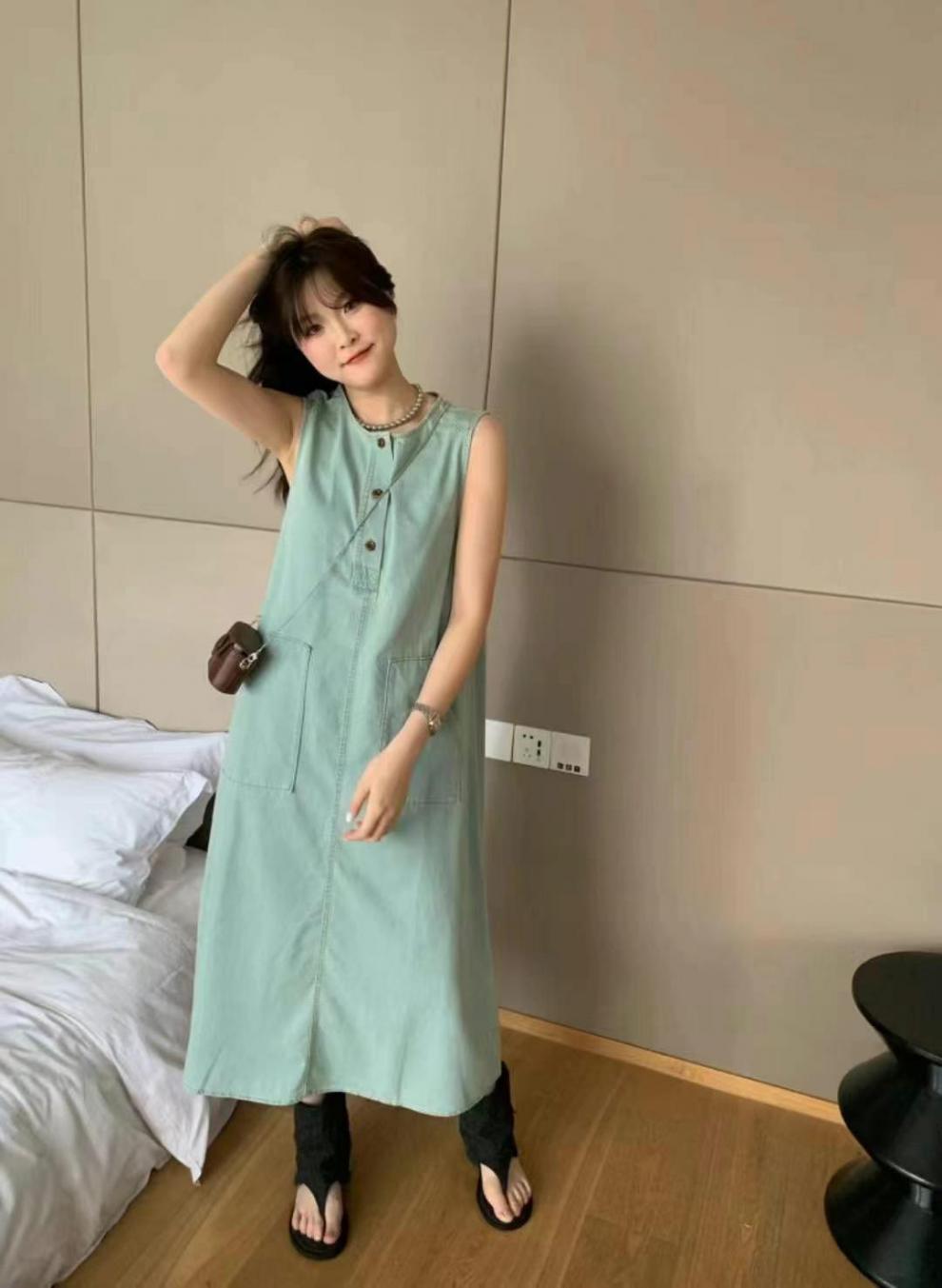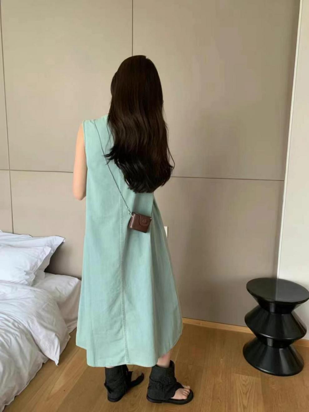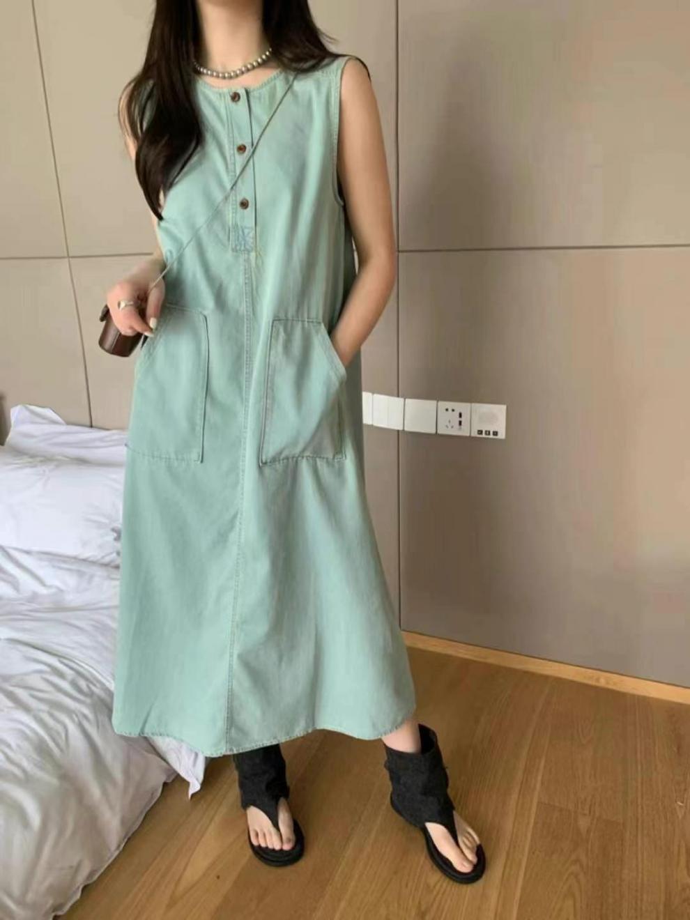 Vestido coreano sin mangas para mujer, estilo francés, holgado, de longitud media, 2024