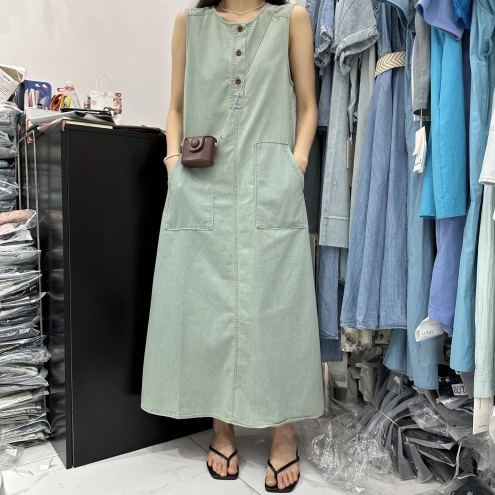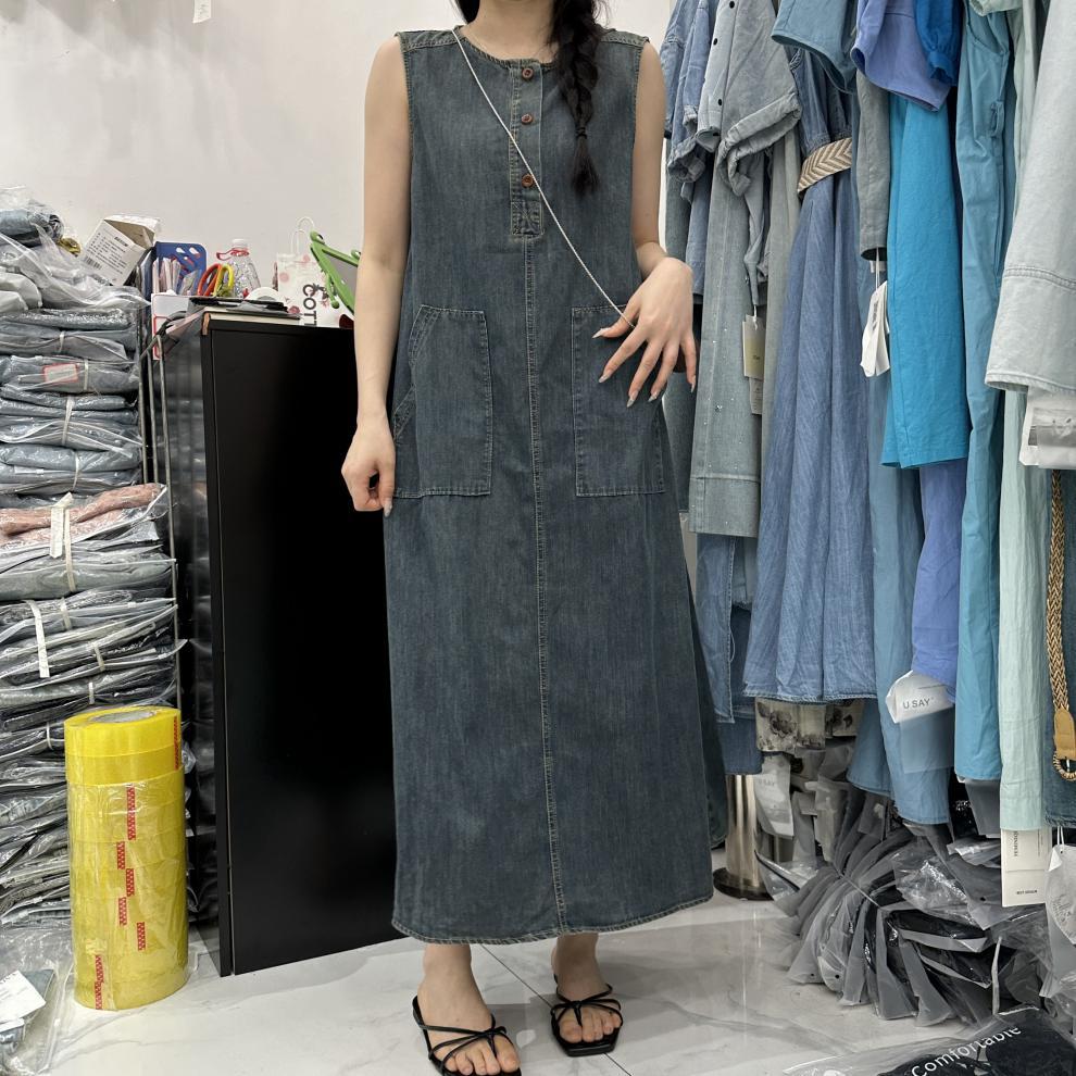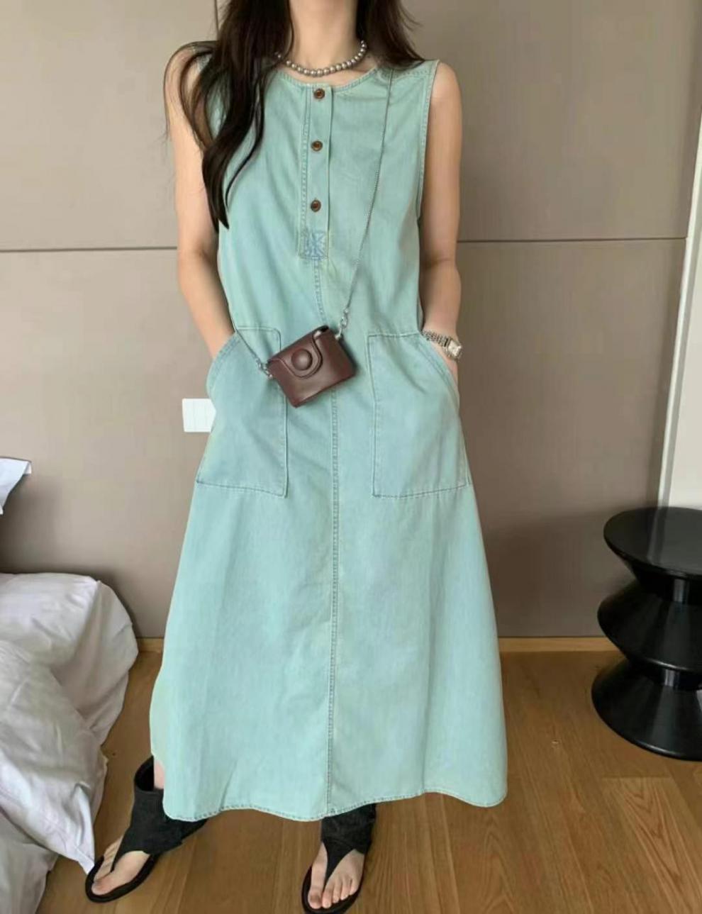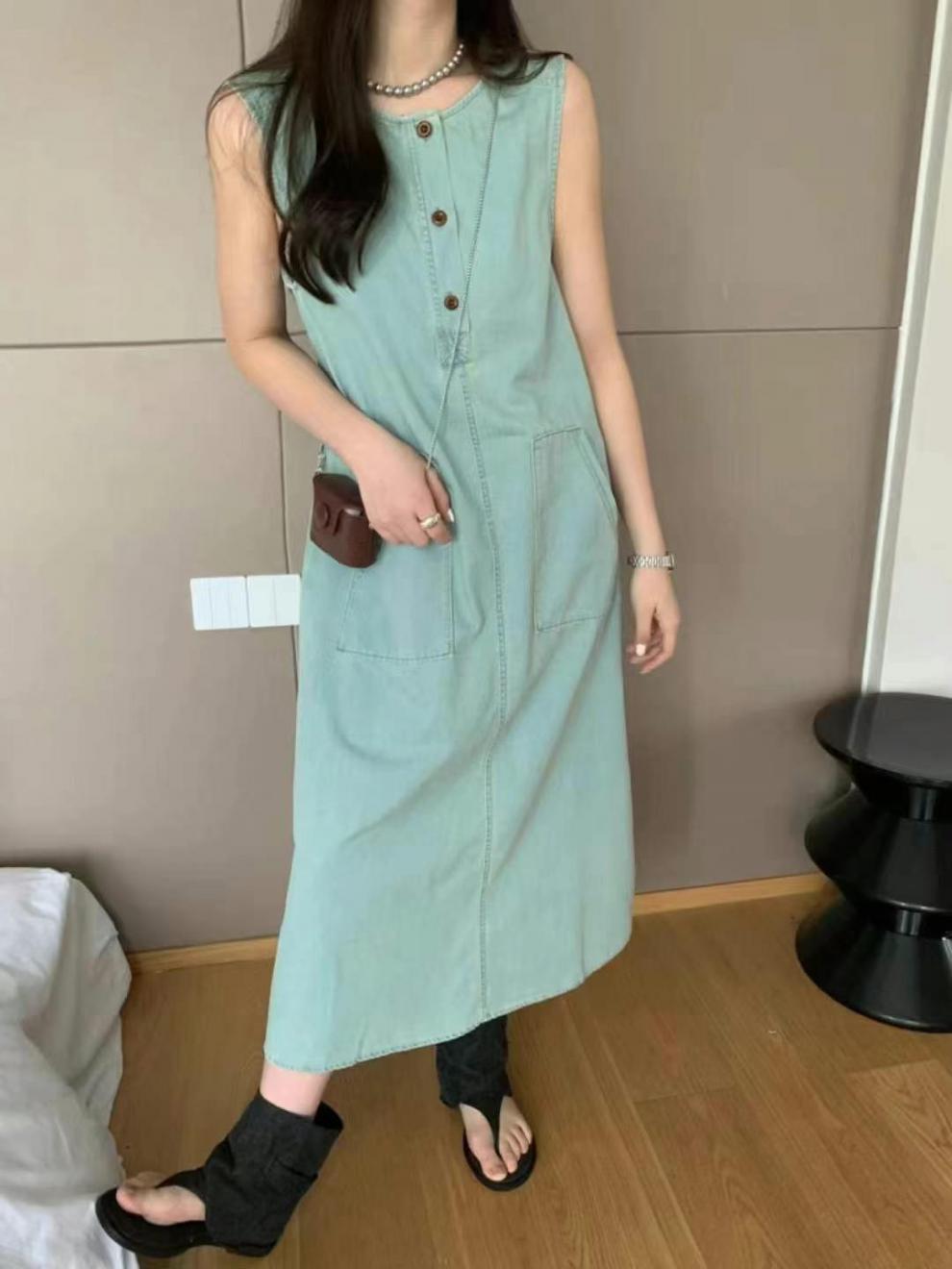 Vestido coreano sin mangas para mujer, estilo francés, holgado, de longitud media, 2024