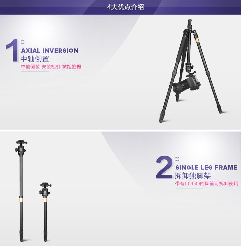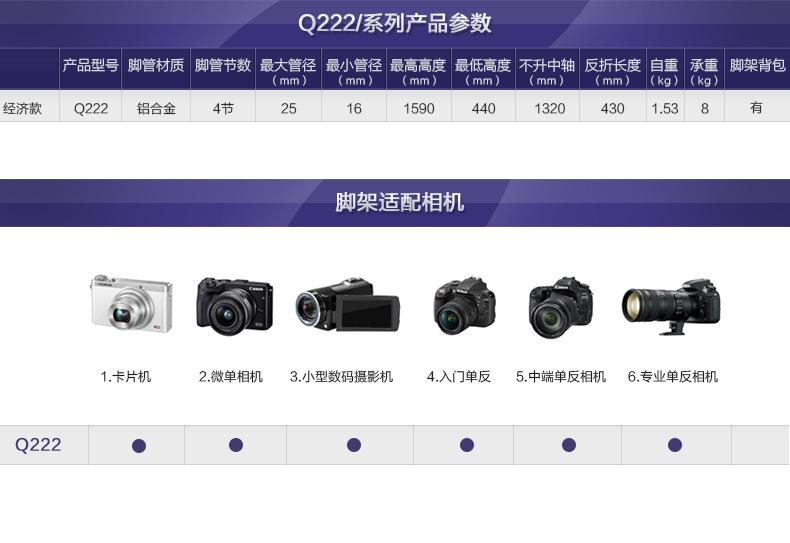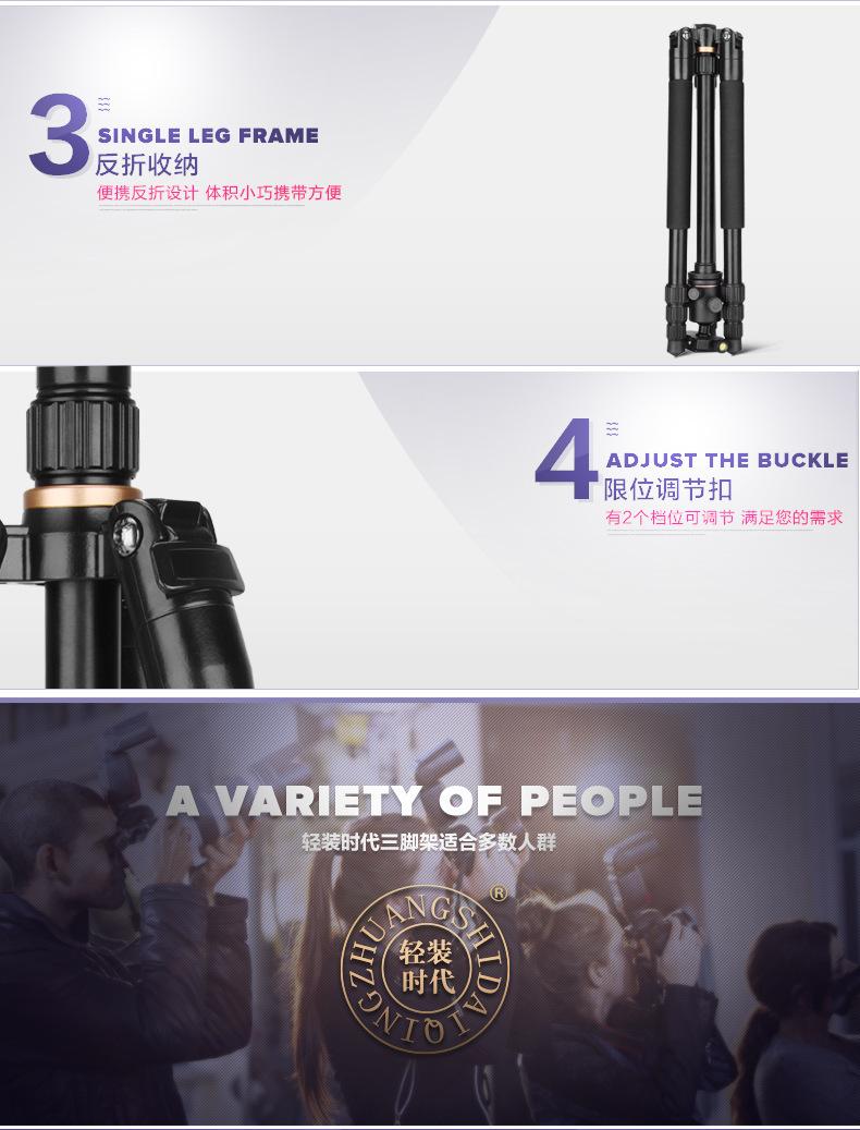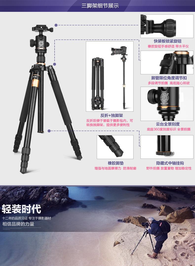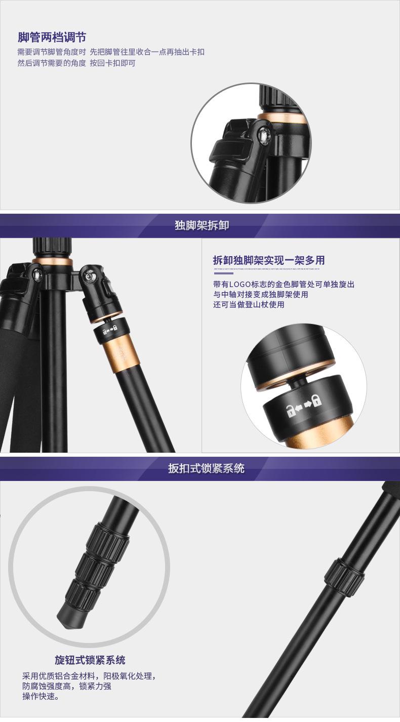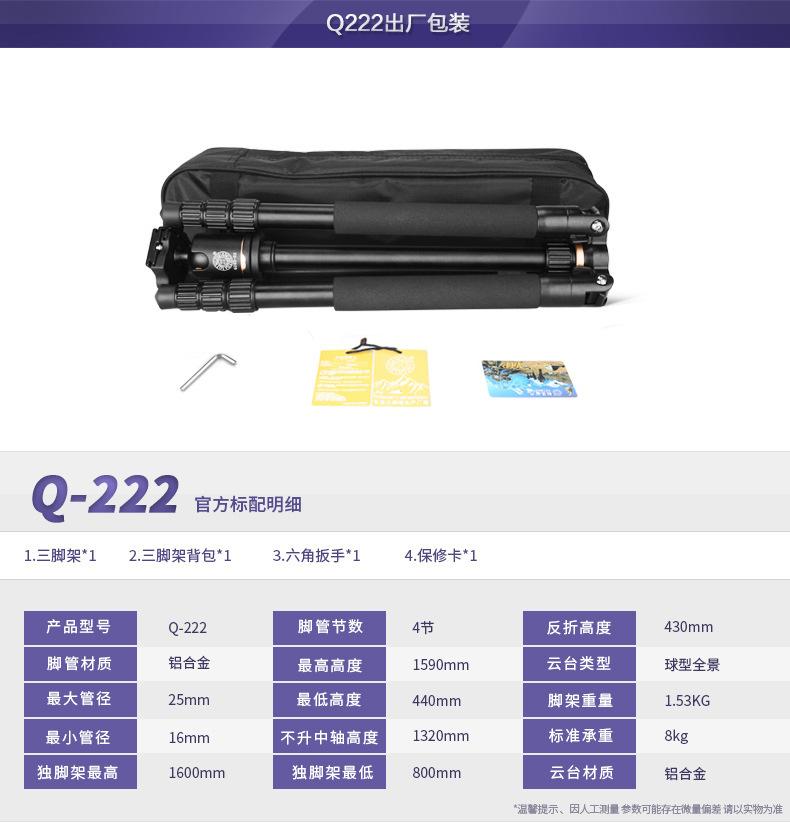 Trípode para cámara SLR portátil, desmontable, de una sola pata, de aleación de aluminio Q222, ligero y ligero.