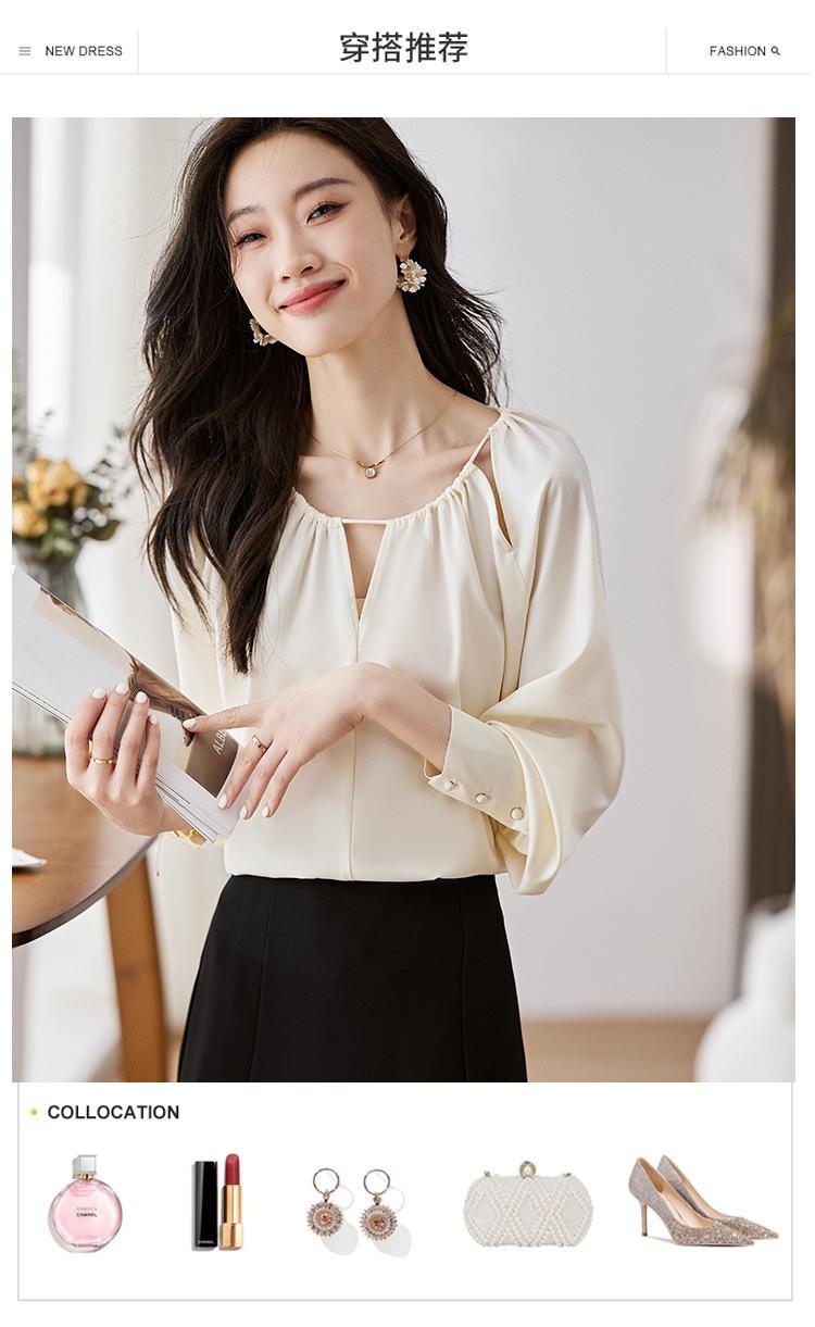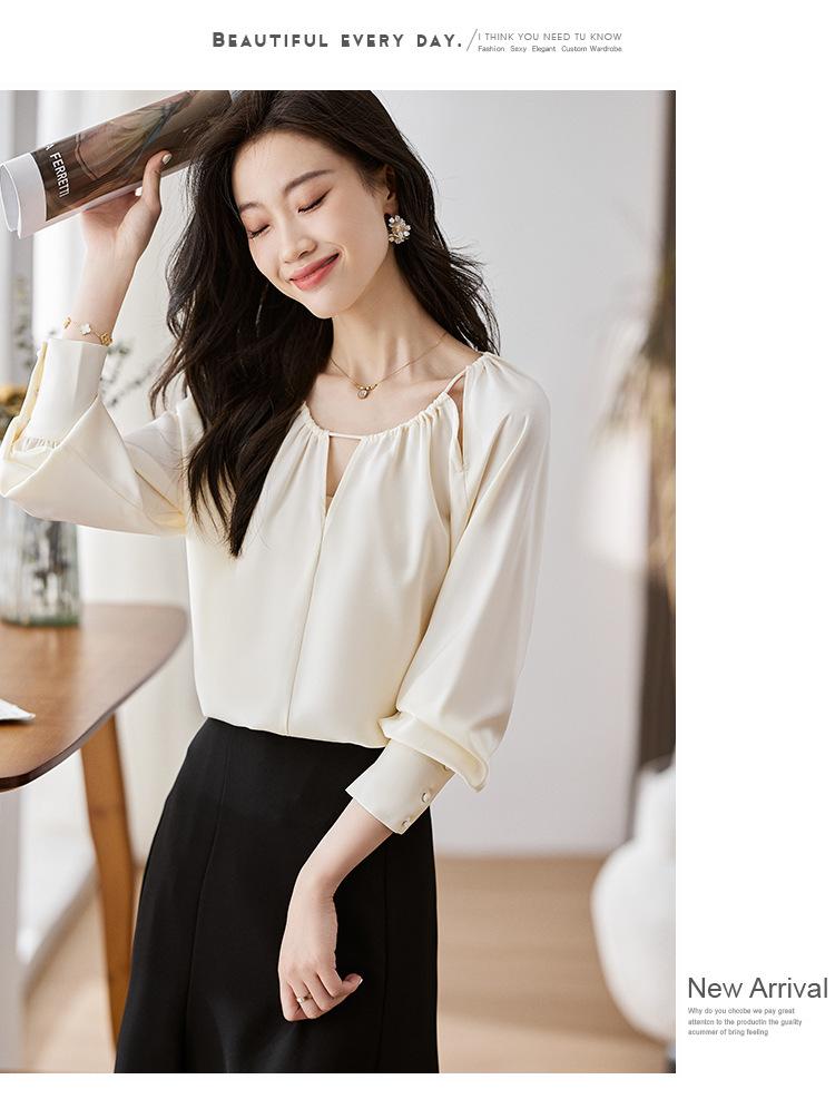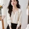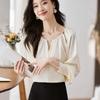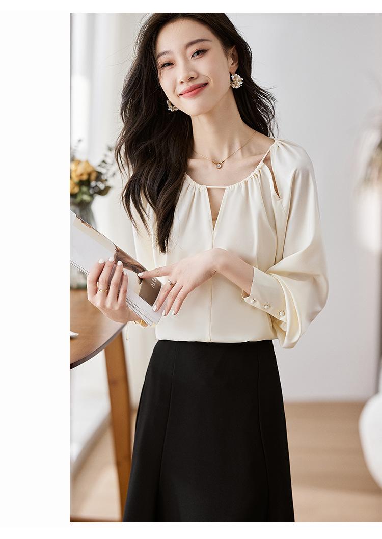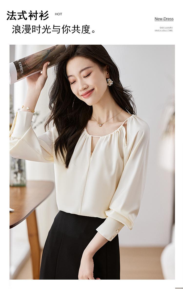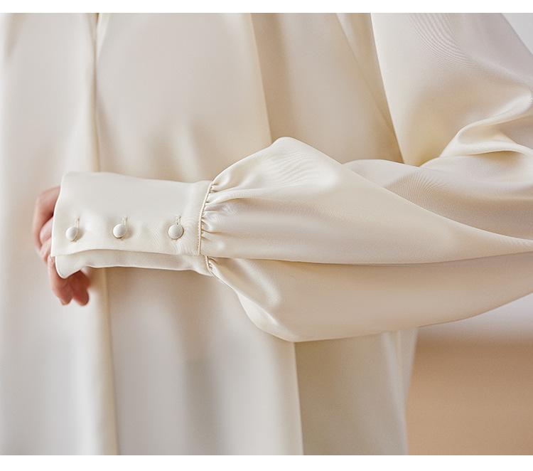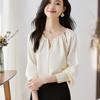 Selección estricta camisa albaricoque Ropa de primavera para mujer Camisa de satén drapeada francesa sentido del diseño nicho top adelgazante ropa de mujer