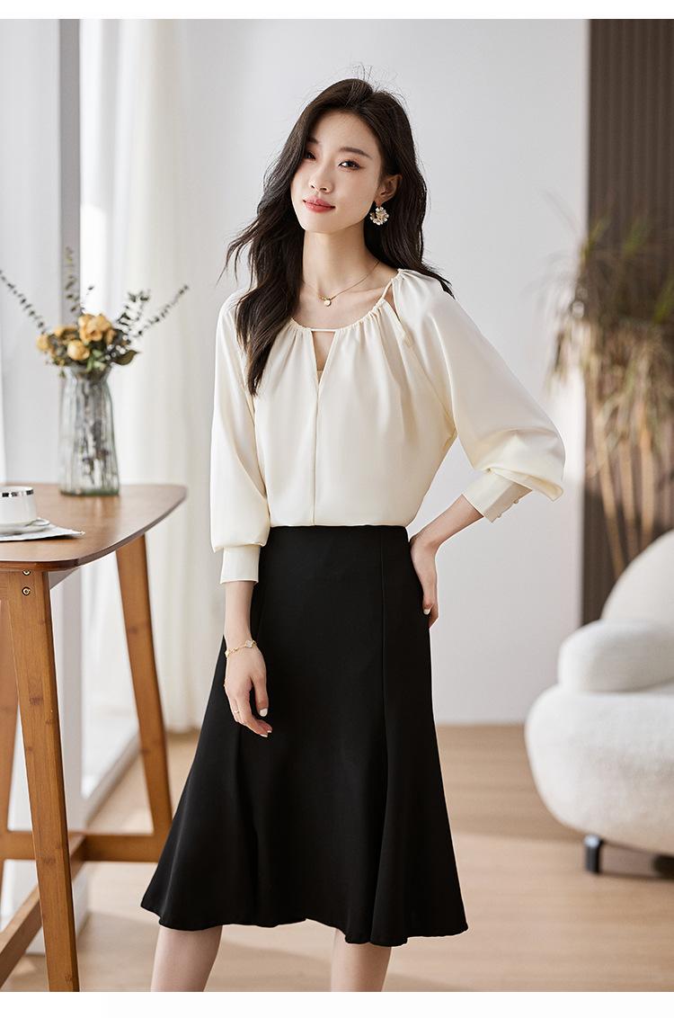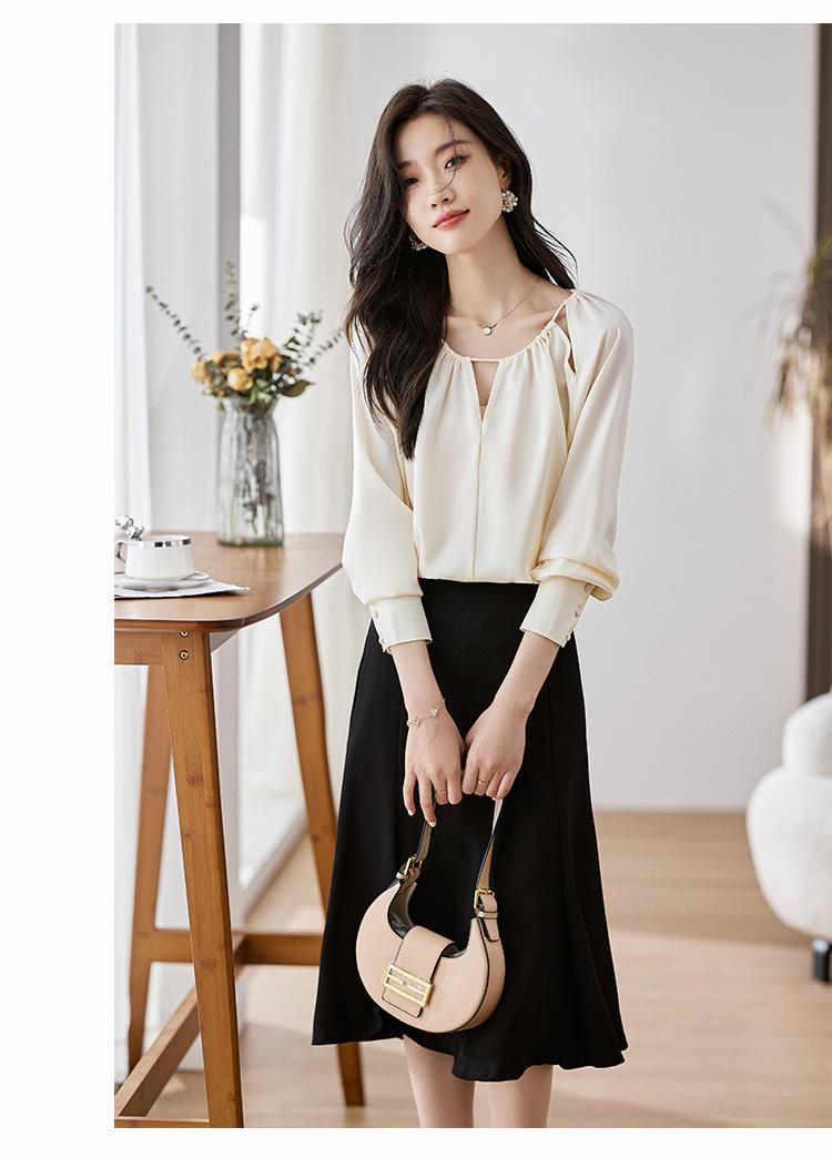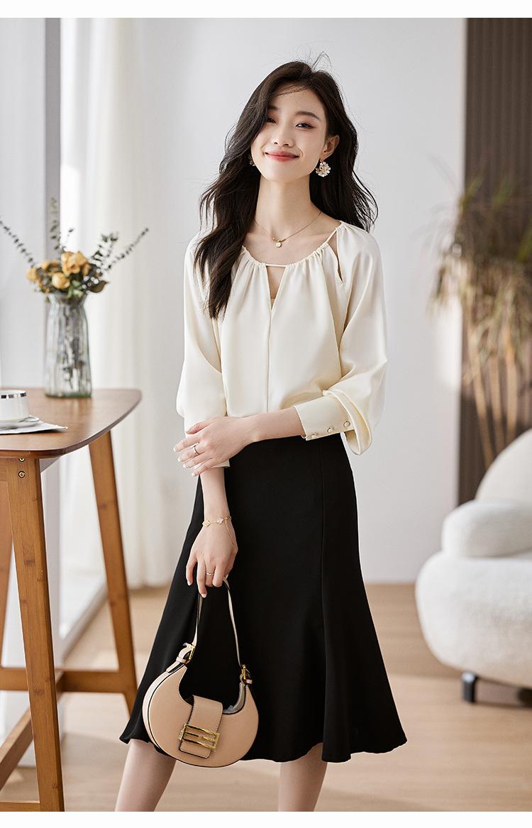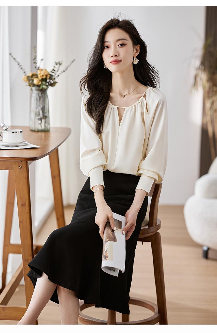 Selección estricta camisa albaricoque Ropa de primavera para mujer Camisa de satén drapeada francesa sentido del diseño nicho top adelgazante ropa de mujer
