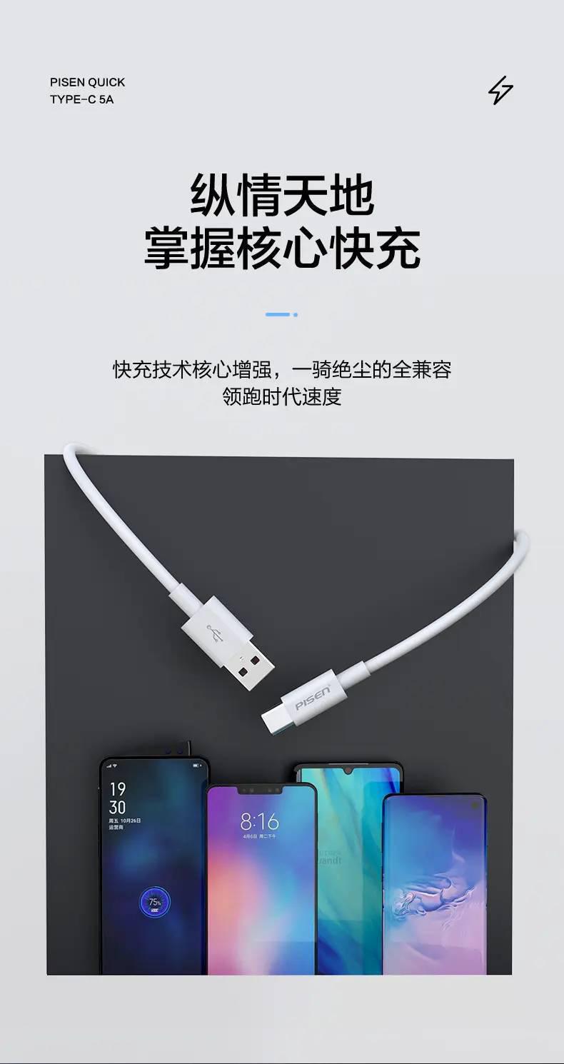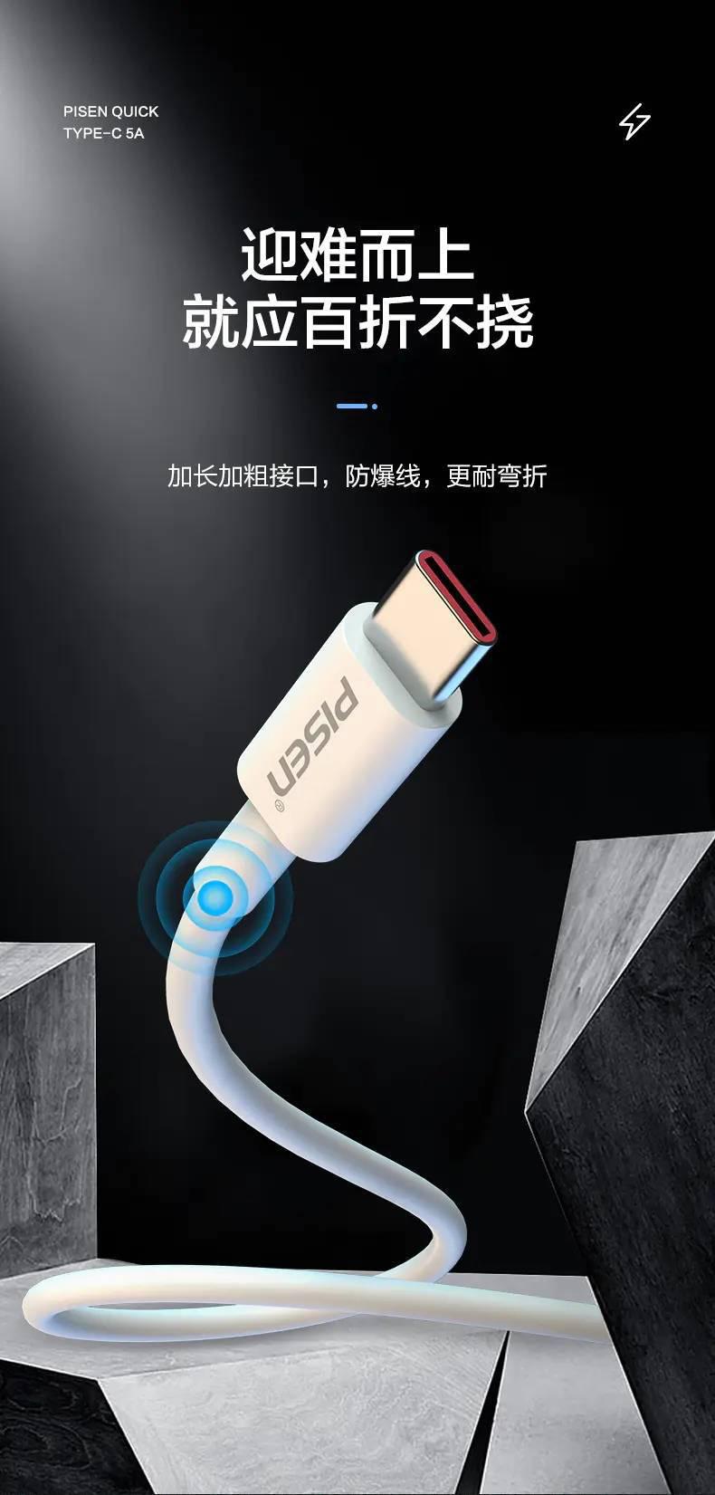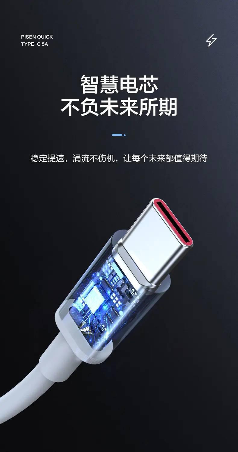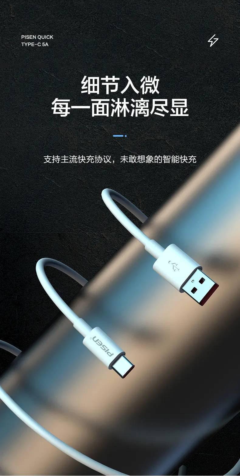Cable de datos de carga rápida Pinsheng Tipo-C 5A totalmente compatible con Huawei mate60 X5 X3 línea de carga de 1 m