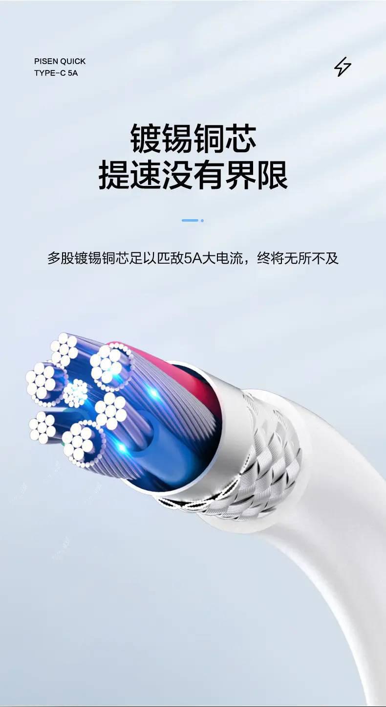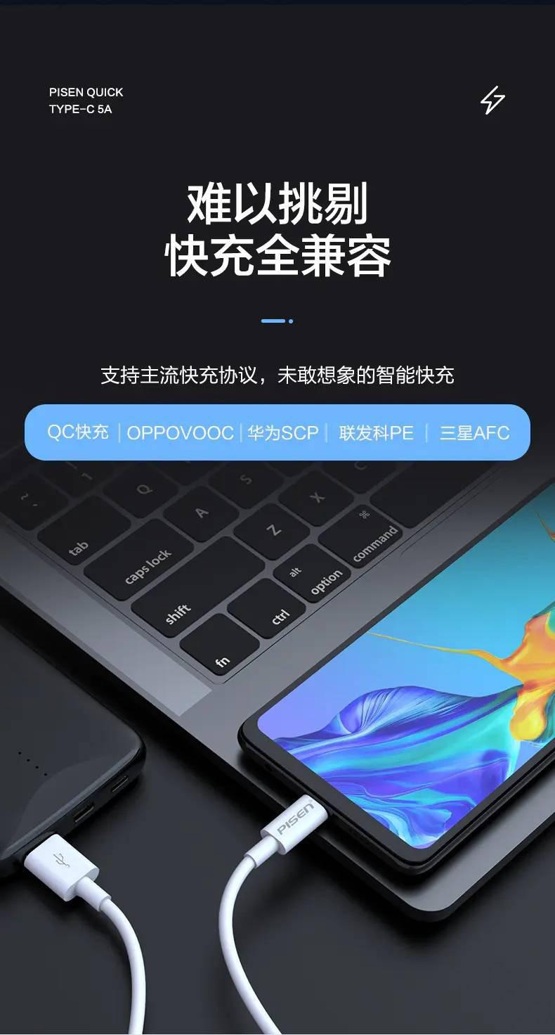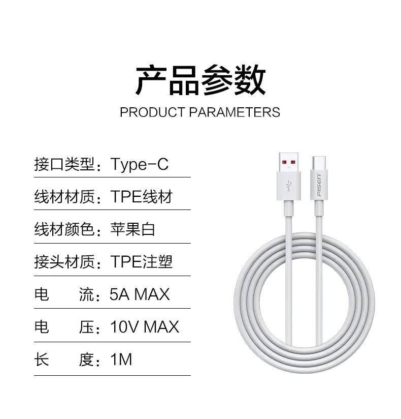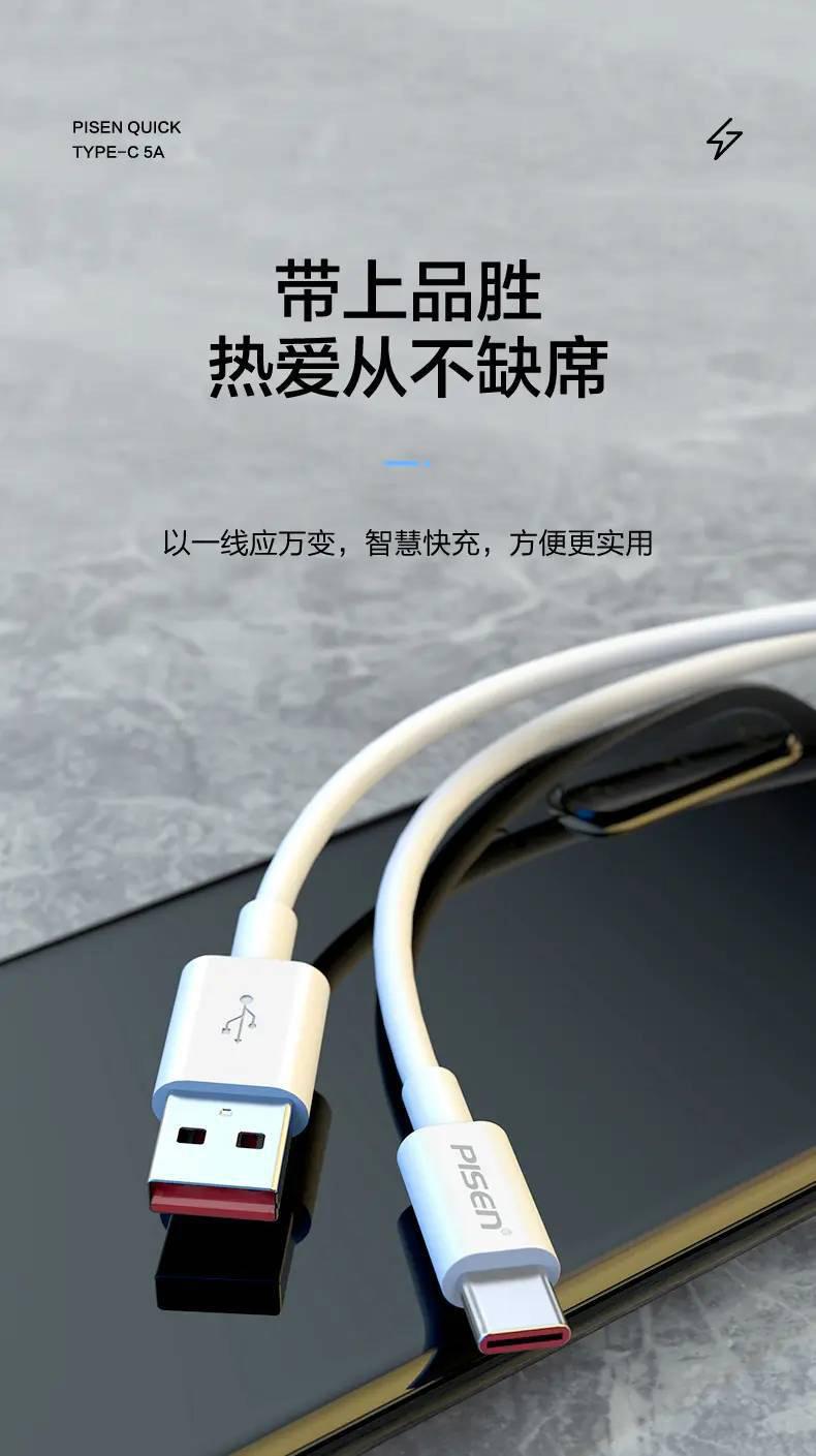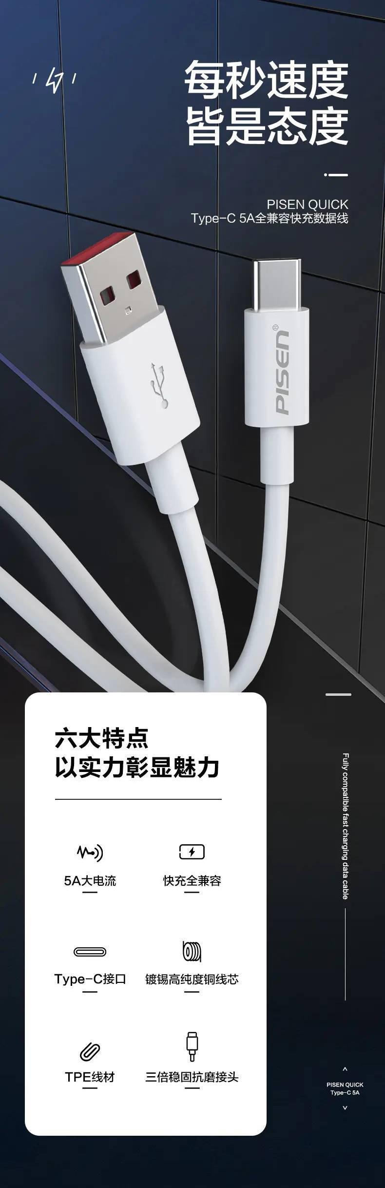 Cable de datos de carga rápida Pinsheng Tipo-C 5A totalmente compatible con Huawei mate60 X5 X3 línea de carga de 1 m