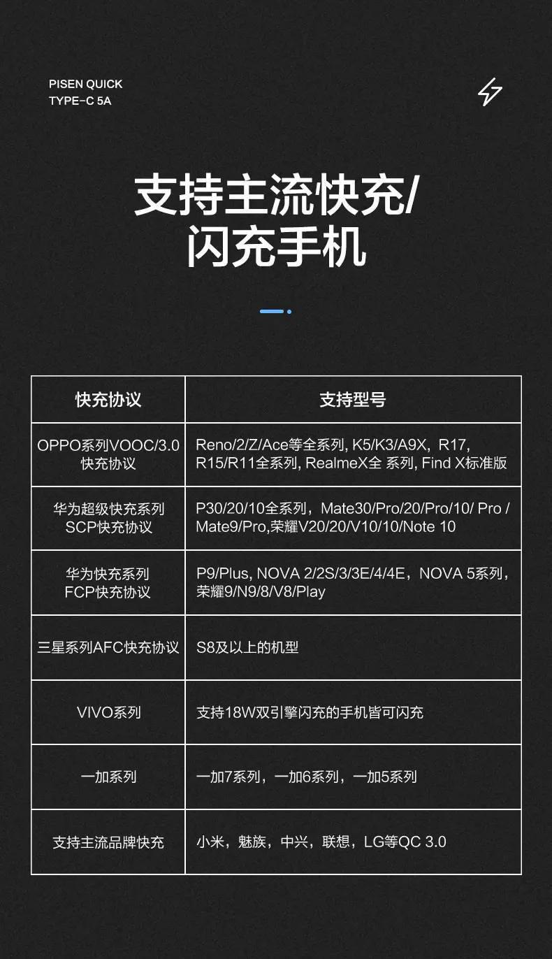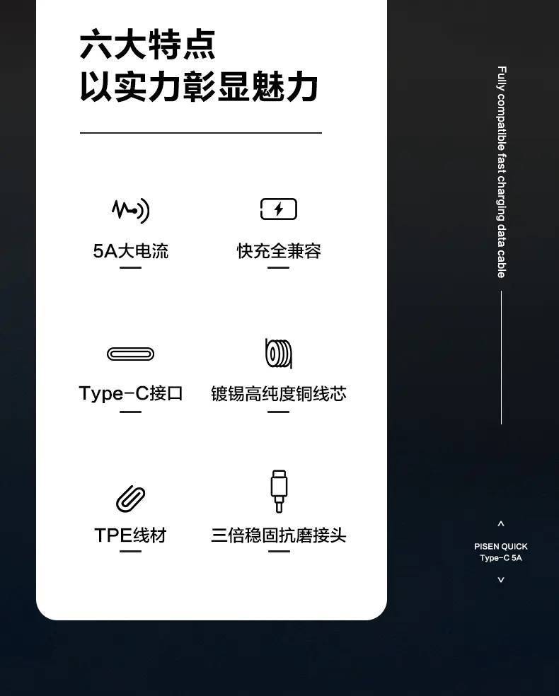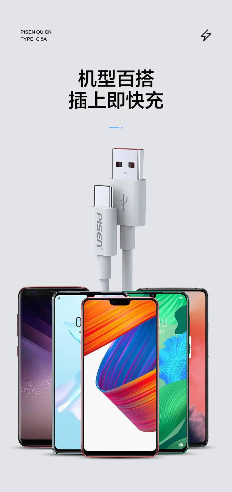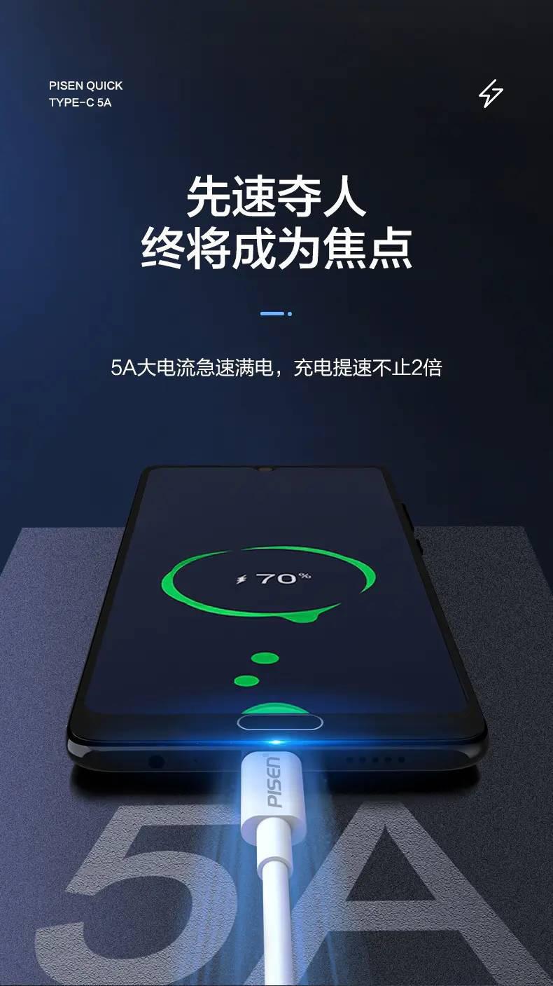 Cable de datos de carga rápida Pinsheng Tipo-C 5A totalmente compatible con Huawei mate60 X5 X3 línea de carga de 1 m