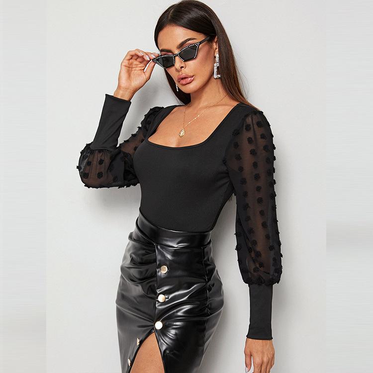 Comercio exterior transfronterizo Ropa de mujer europea y americana 2024 Amazon Moda Cuello cuadrado Color sólido Sexy Slim Manga larga Mono ajustado