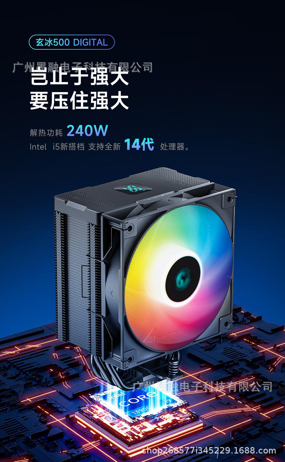 Kyushu Fengshen AG500 Edición con Pantalla Digital Radiador para CPU de Computadora Luz Sincronizada ARGB Control de Temperatura PWM Temperatura Visual