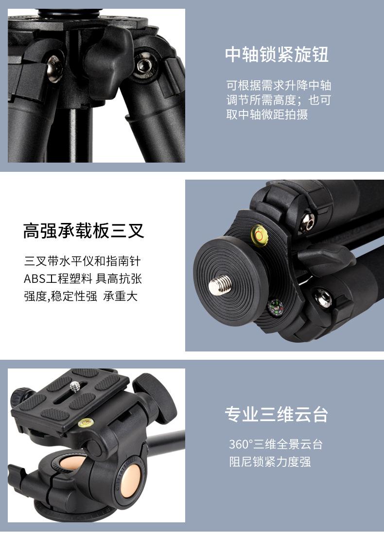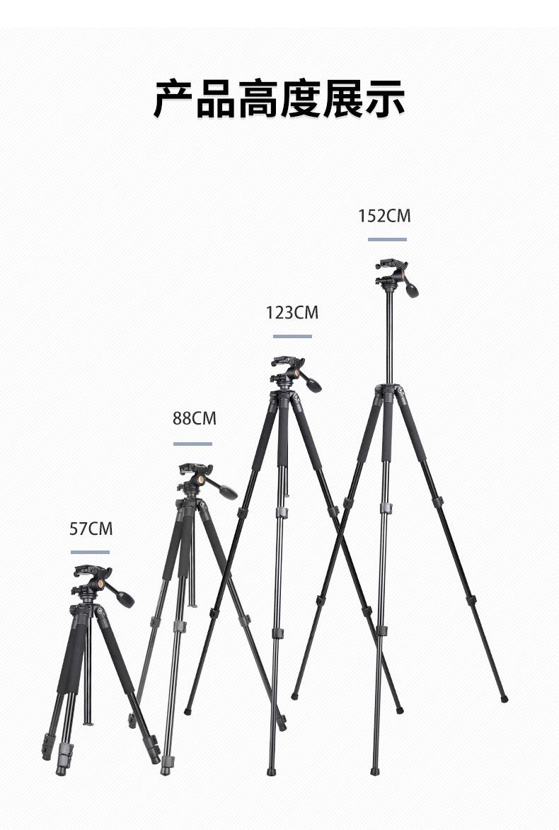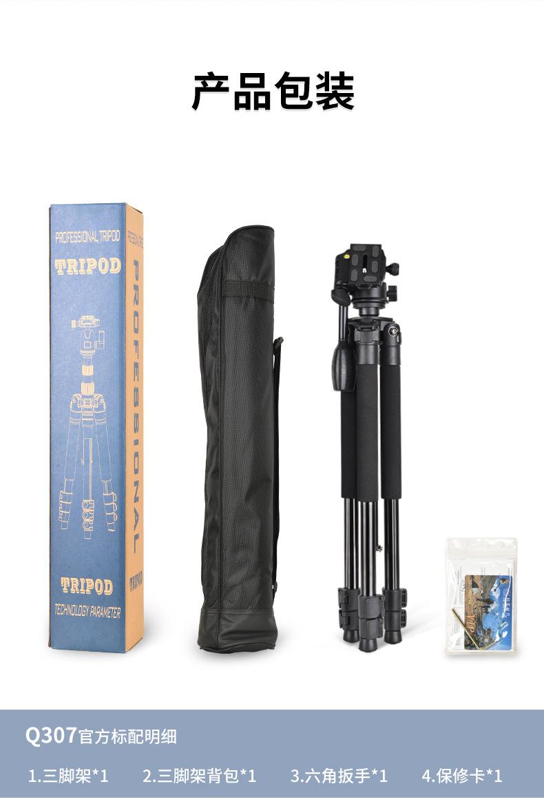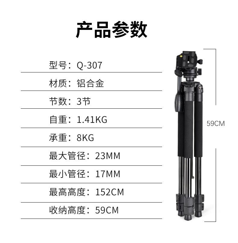 Trípode de Cámara de Aleación de Aluminio Ligero Era Q307 Fotografía Video Dslr Soporte de Trípode con Cabezal Panorámico/Inclinable Tridimensional