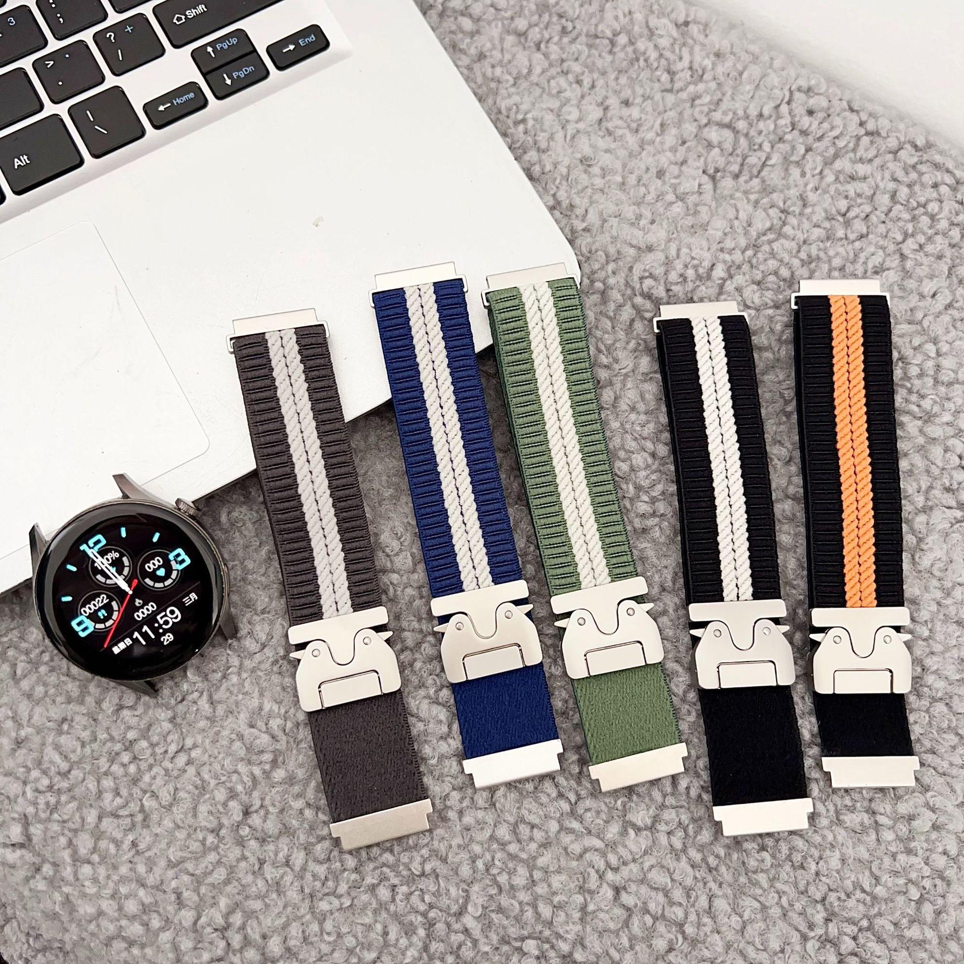 Hebilla Paracaídas Nylon Trenzado Rayado Mecha Viento Para Samsung Watch 22mm Huawei WATCH GT5432