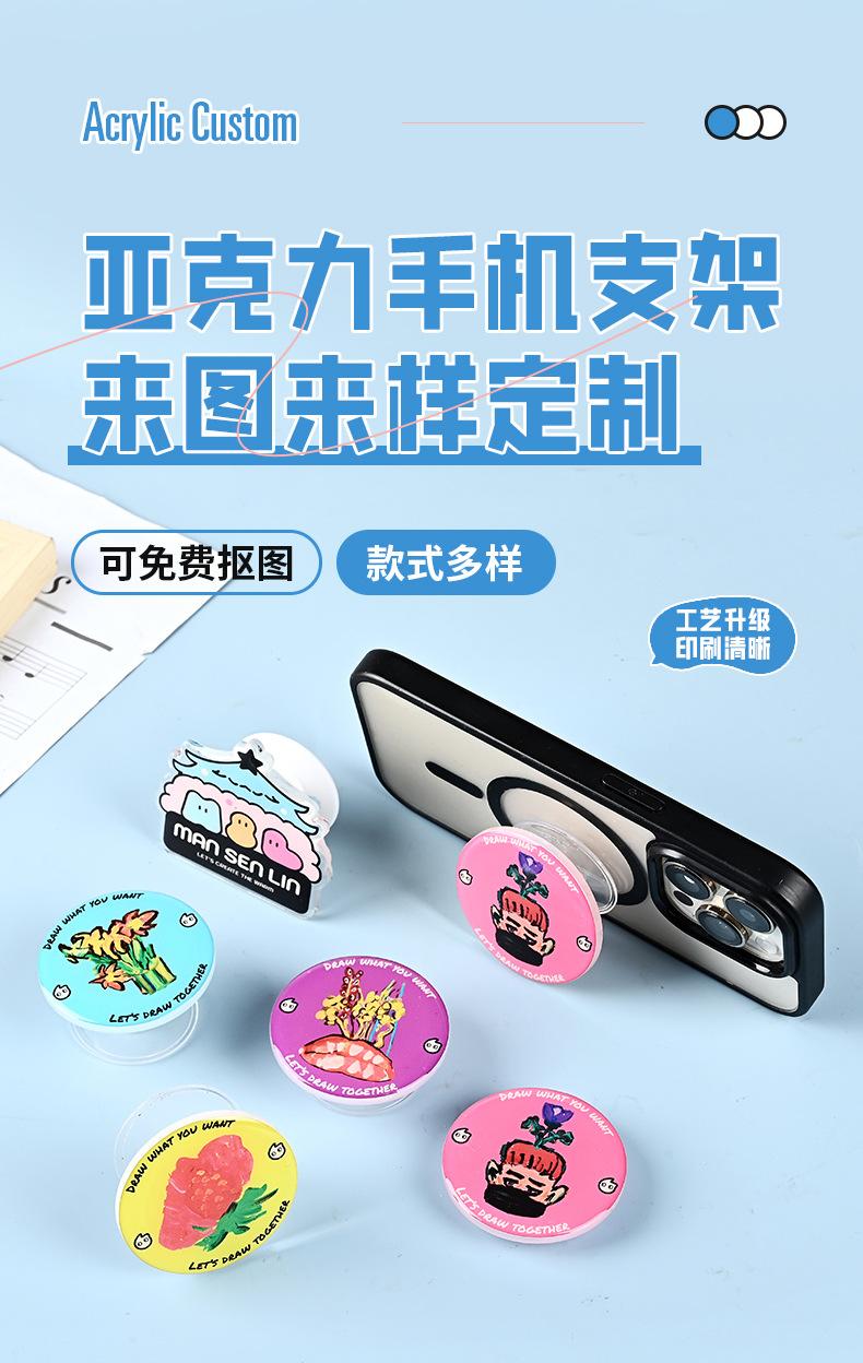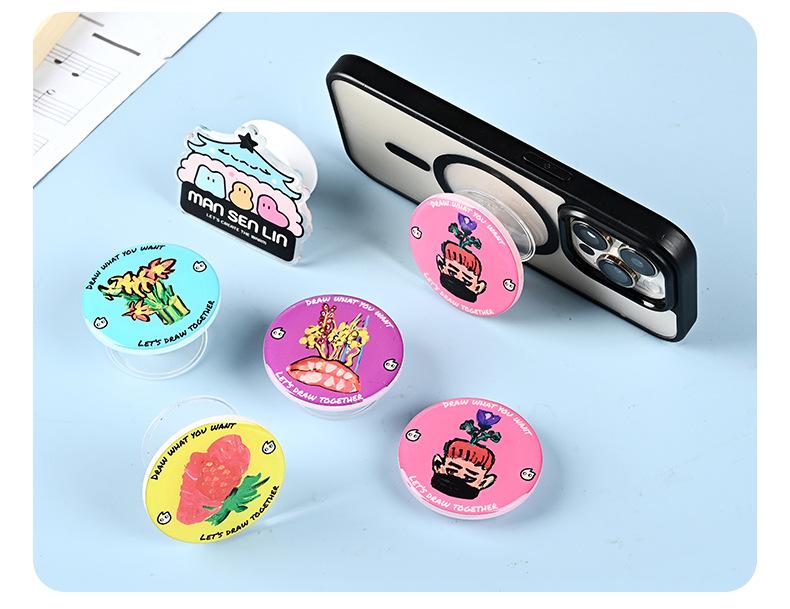 Soporte de airbag para teléfono móvil acrílico de dibujos animados con forma especial, logotipo personalizado, pegamento de gota, perezoso, retráctil, de escritorio, magnético
