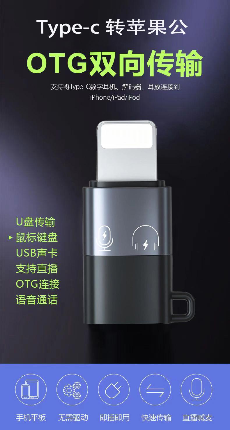 Type-c female to apple buckle (supports voice, calls, charging, headphones)