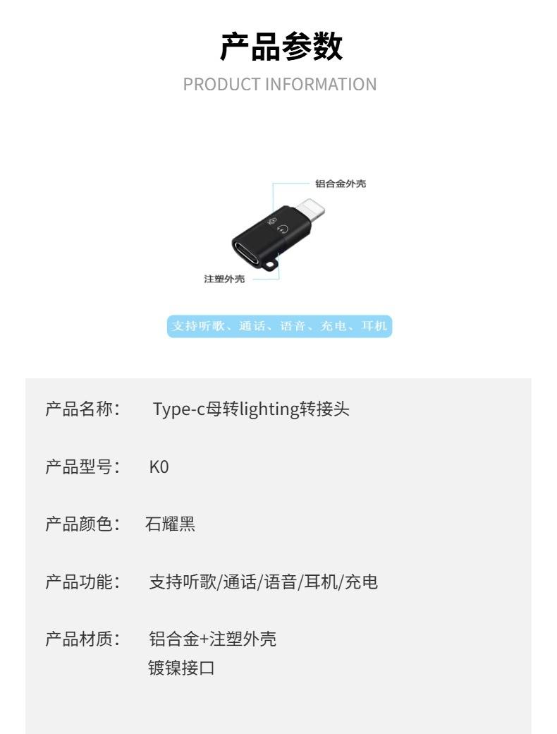 Type-c female to apple buckle (supports voice, calls, charging, headphones), Apple female to type-c buckle