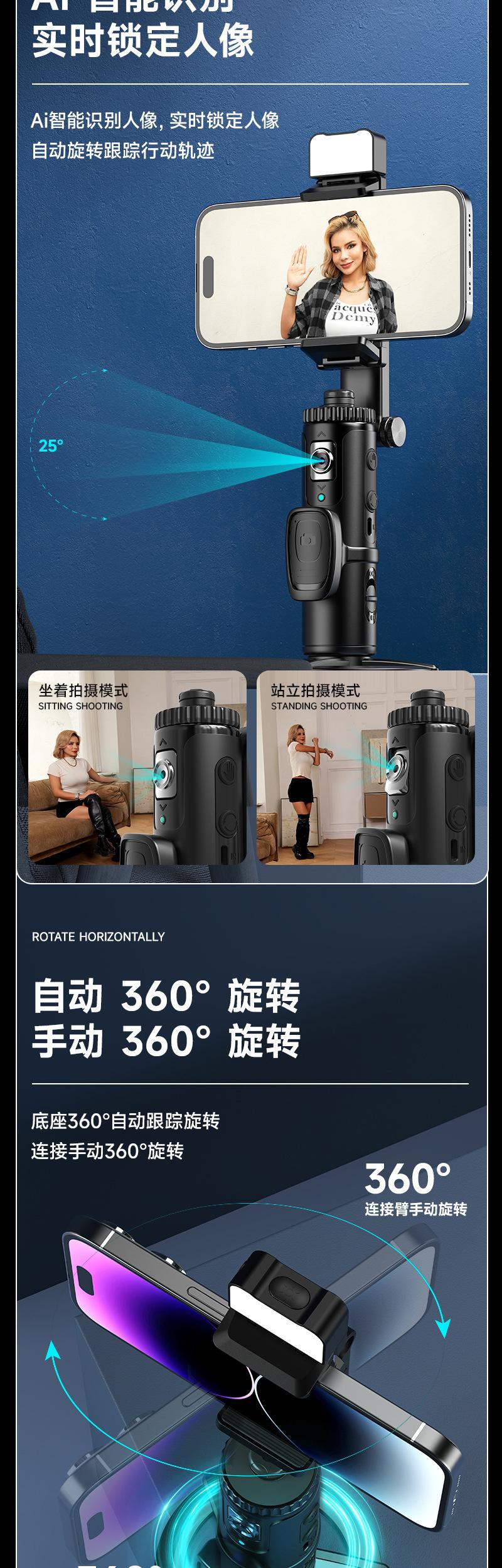 Teléfono móvil de escritorio A300 apilado con seguimiento Yuntai Shake Voice Live Lock con reconocimiento facial por IA y soporte de seguimiento 360