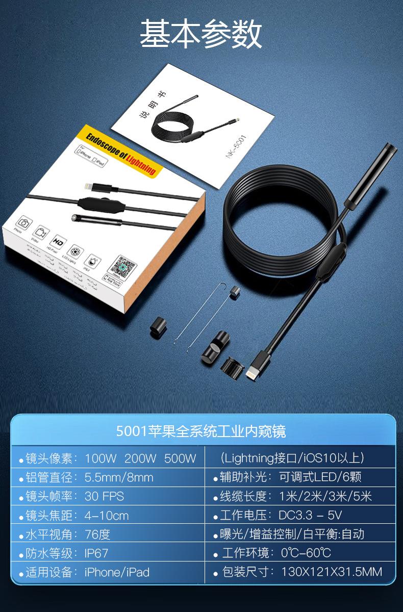 Endoscopio industrial Apple de alta definición IP67 Cámara de conexión directa para teléfono móvil Apple Enchufe directo para teléfono móvil Endoscopio de 2 millones