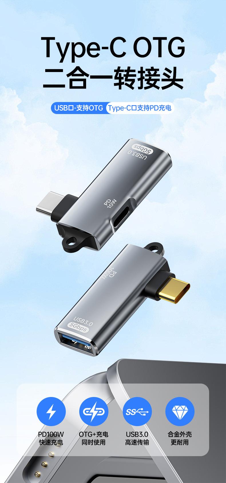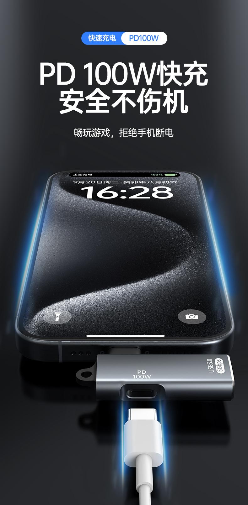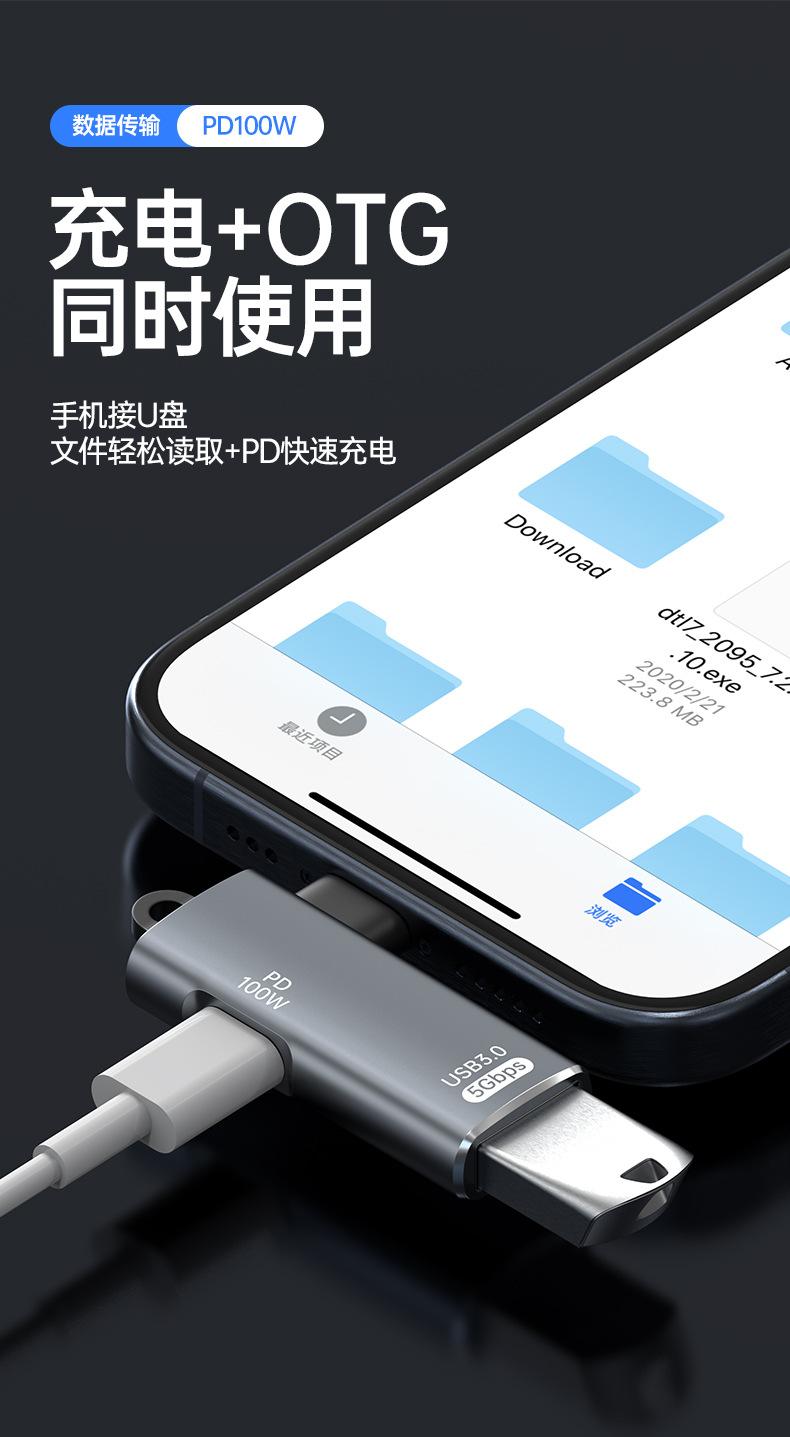 Adaptador USB tipo C 3.1 OTG con transmisión PD de 100 W, carga rápida para iPhone 15 Pro y ordenador.