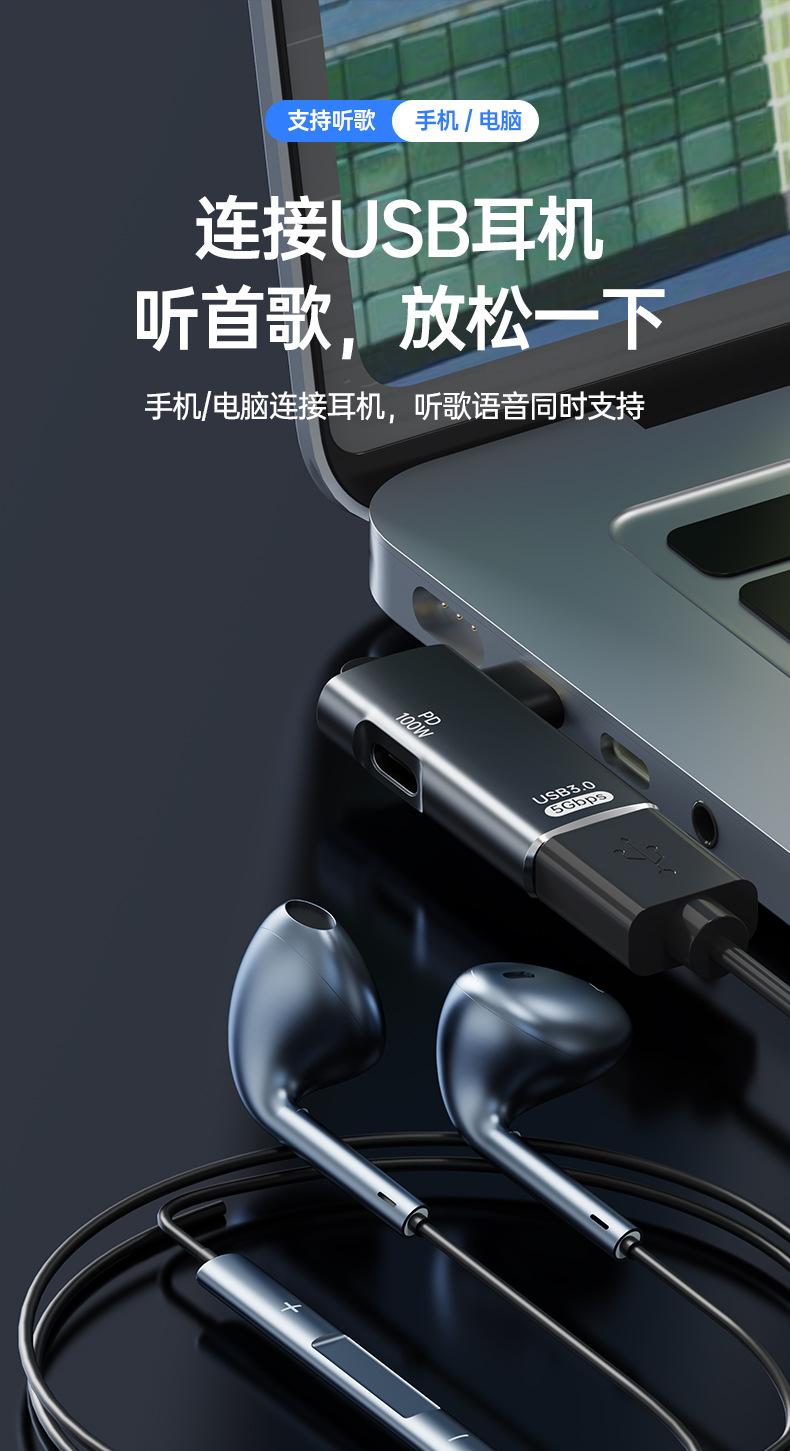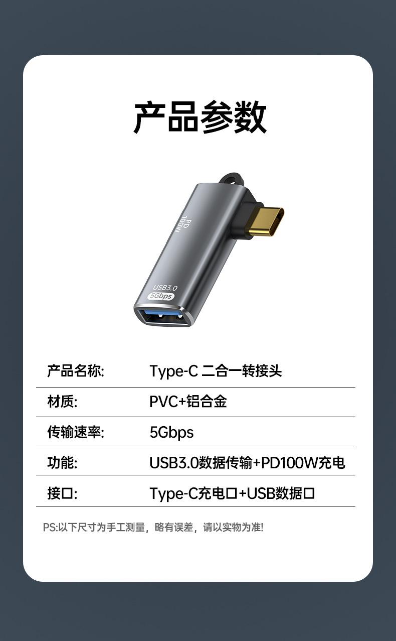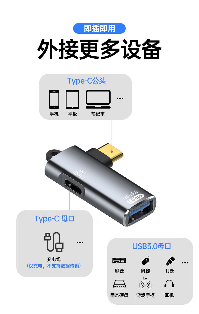 Adaptador USB tipo C 3.1 OTG con transmisión PD de 100 W, carga rápida para iPhone 15 Pro y ordenador.