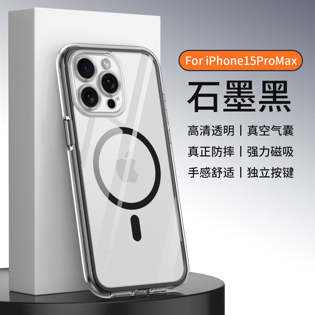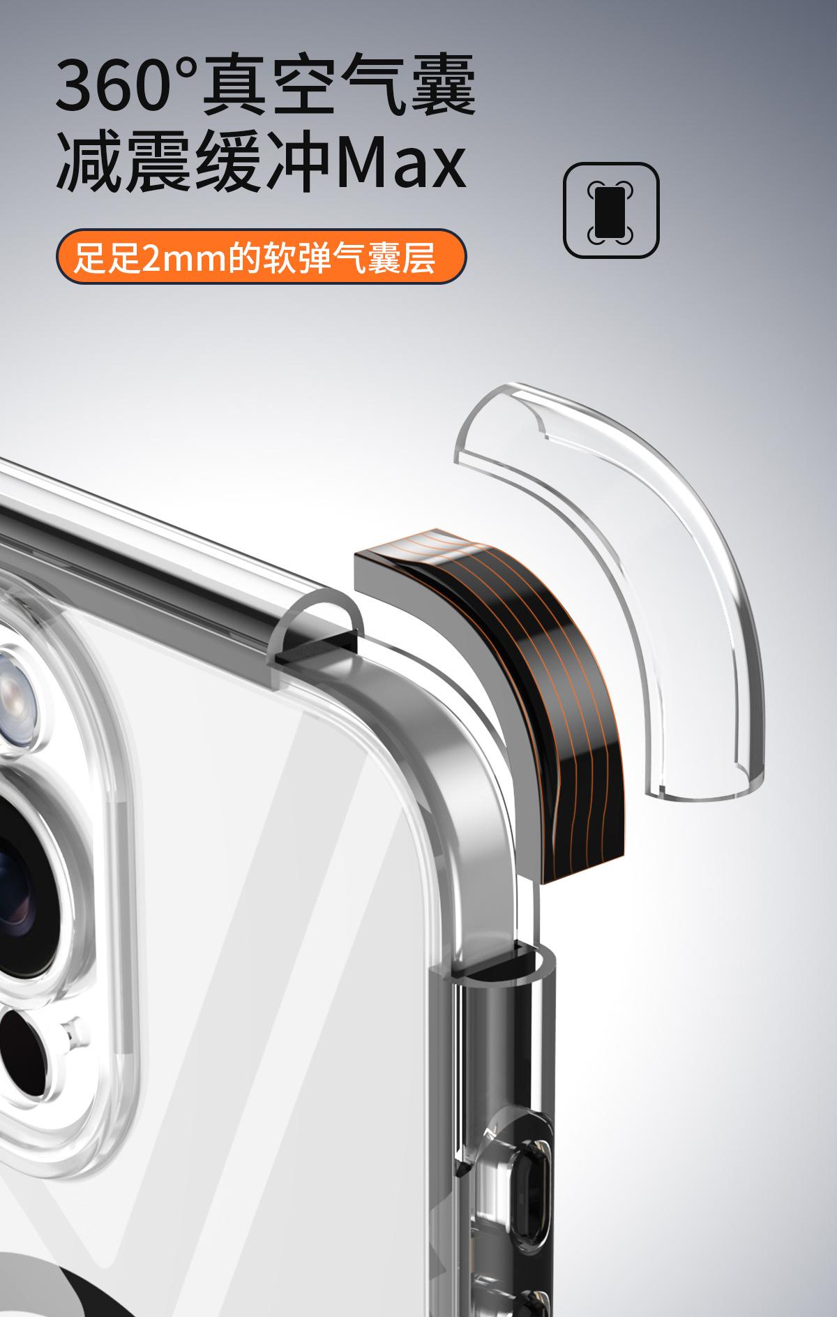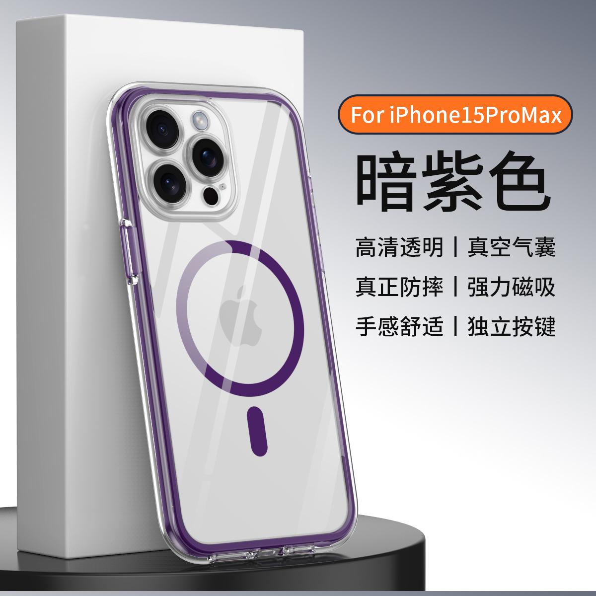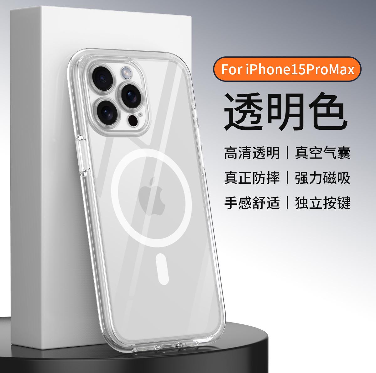 Funda para teléfono móvil con airbag envuelta al vacío para iPhone 15/14 Pro Max, cubierta protectora transparente magnética anticaídas y anticolisión