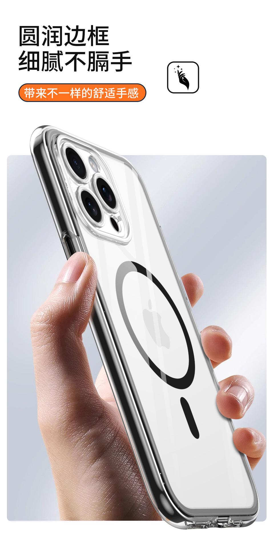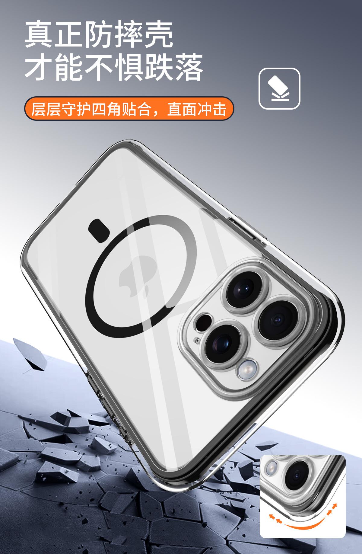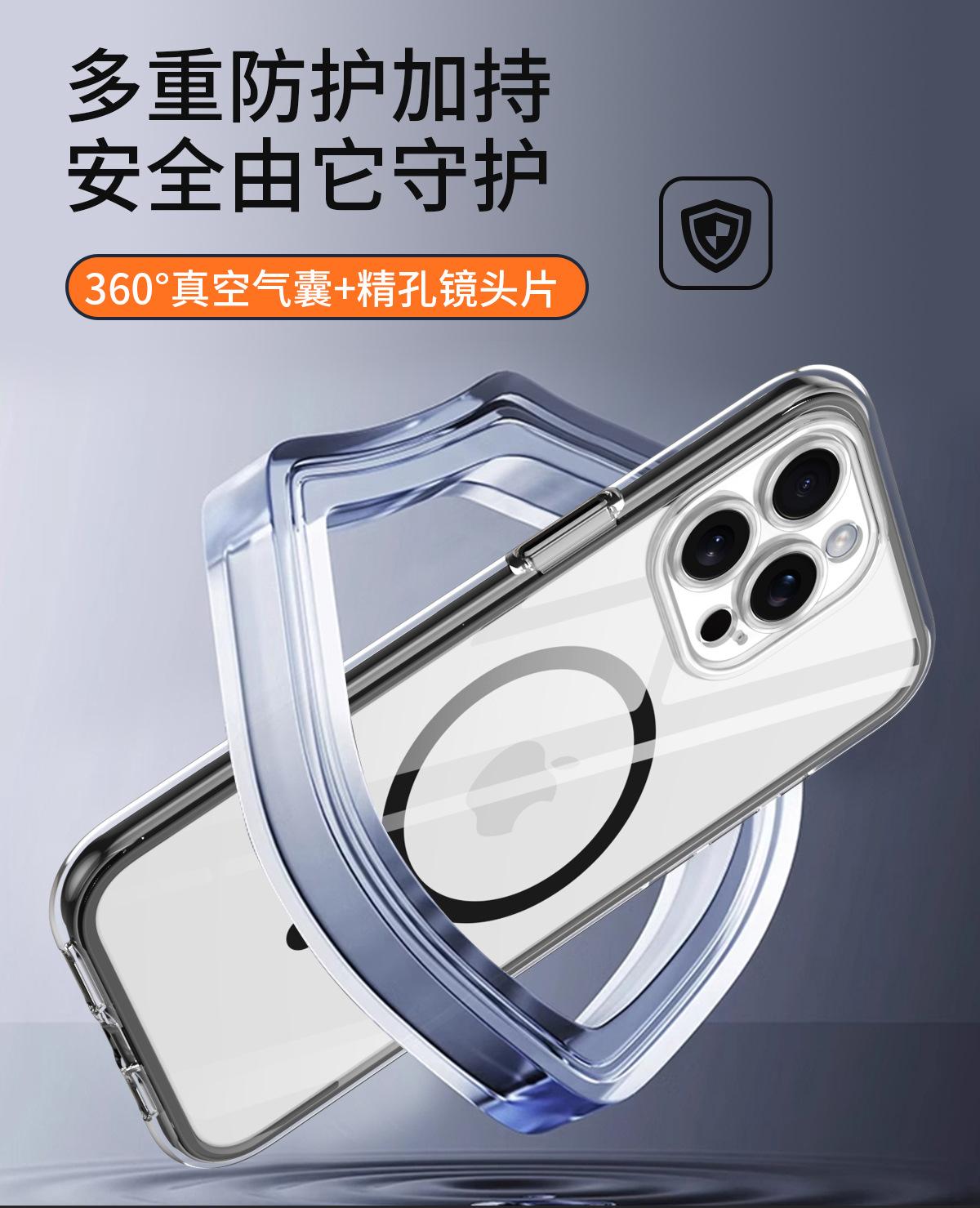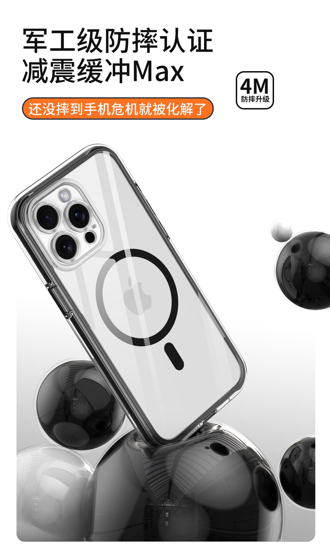 Funda para teléfono móvil con airbag envuelta al vacío para iPhone 15/14 Pro Max, cubierta protectora transparente magnética anticaídas y anticolisión