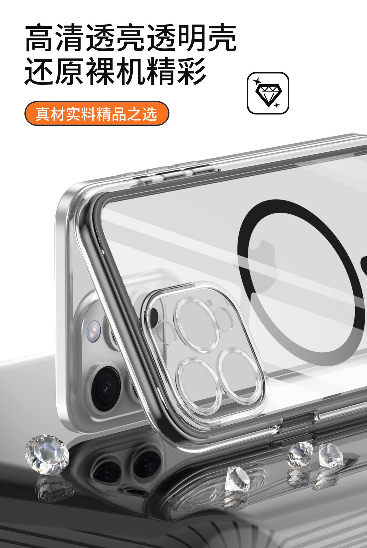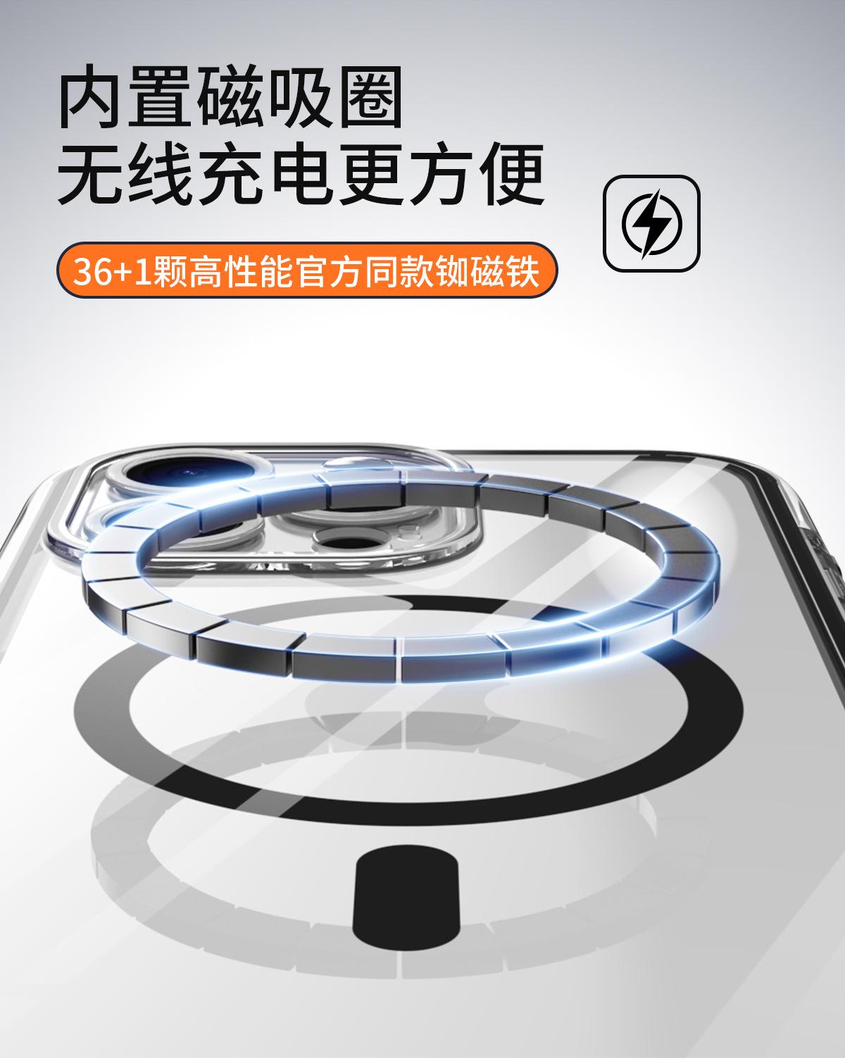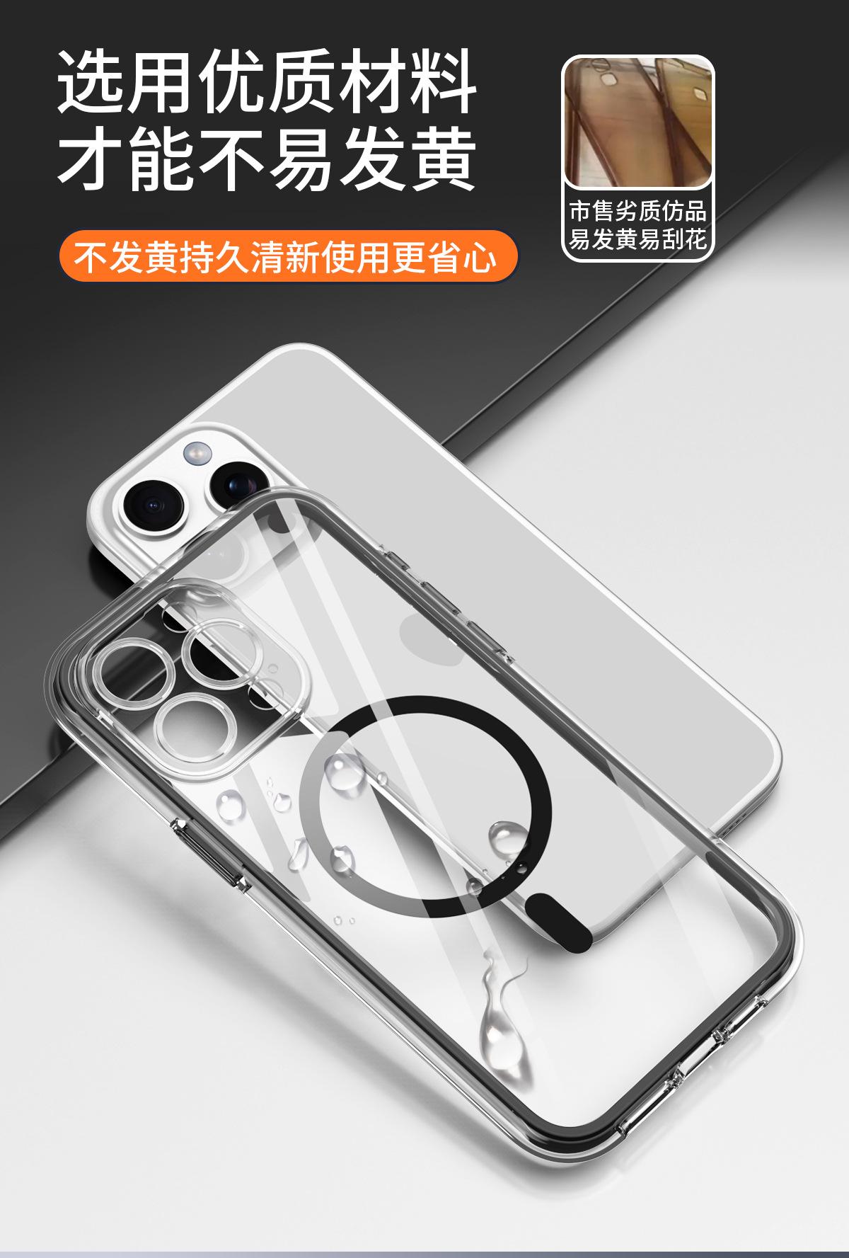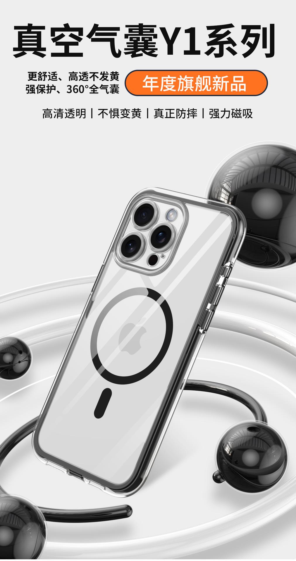Funda para teléfono móvil con airbag envuelta al vacío para iPhone 15/14 Pro Max, cubierta protectora transparente magnética anticaídas y anticolisión