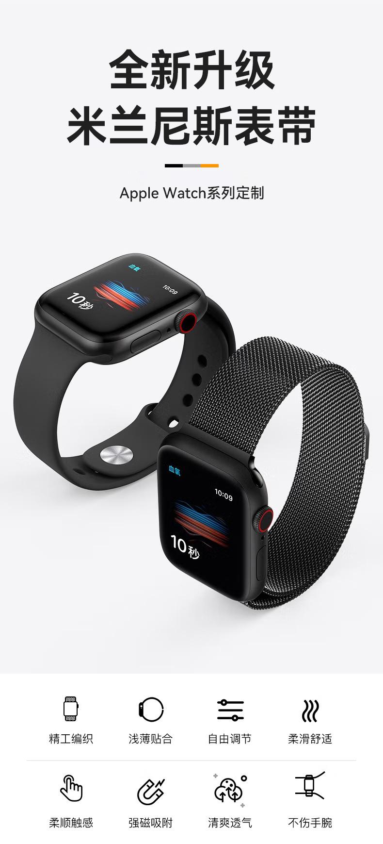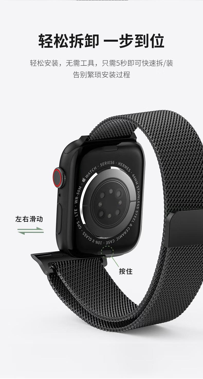 Adecuado para Apple resistente al agua a prueba de sudor correa magnética única metal magnético de acero inoxidable Milán Bonita correa iwatch