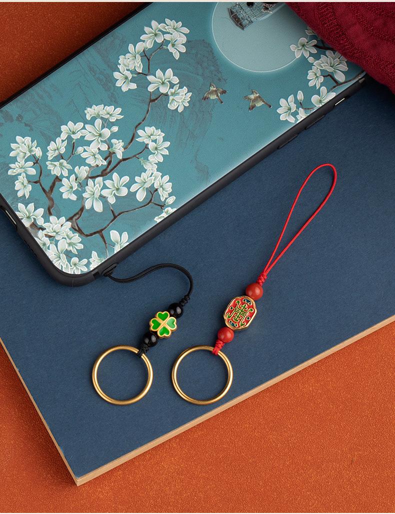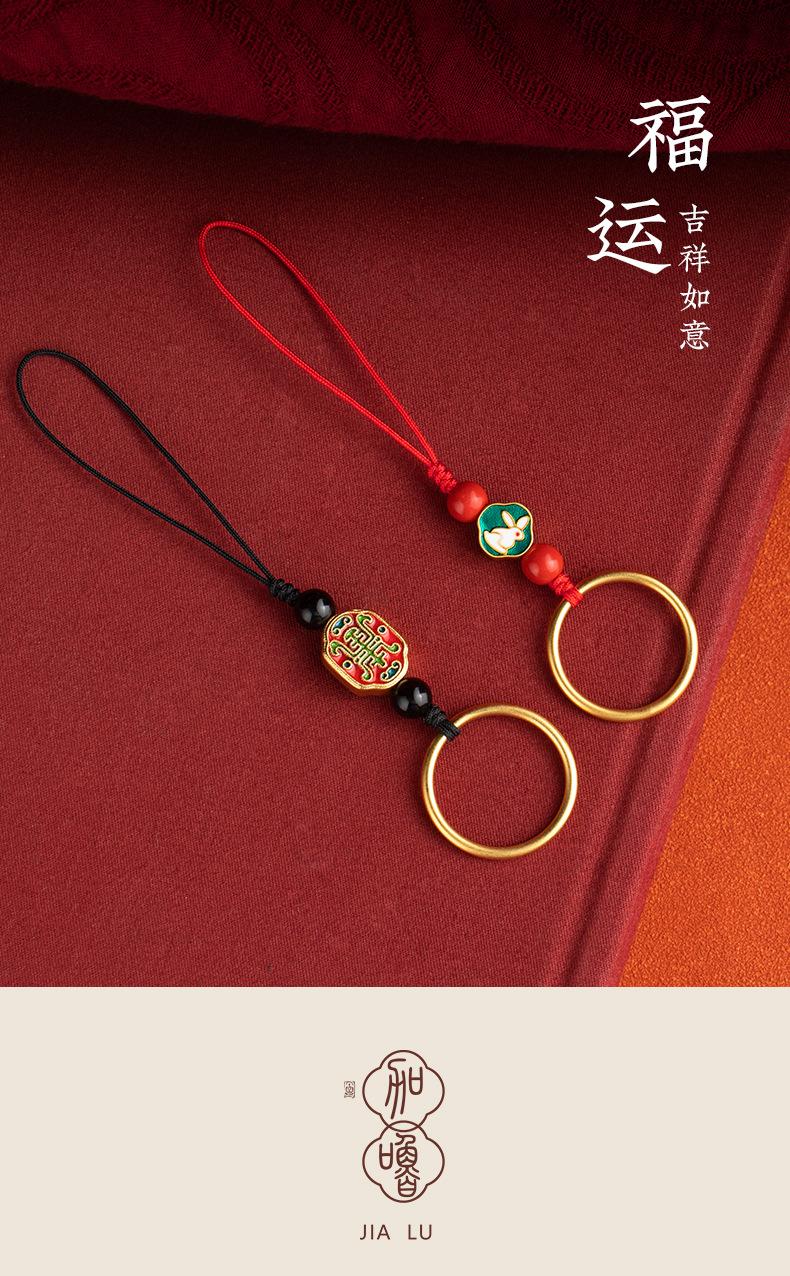 Anillo de oro y arena de latón con hebilla para teléfono móvil, colgante pequeño de cuerda para hombres y mujeres, bonito colgante, cadena para teléfono móvil de celebridades de Internet, joyería de la suerte